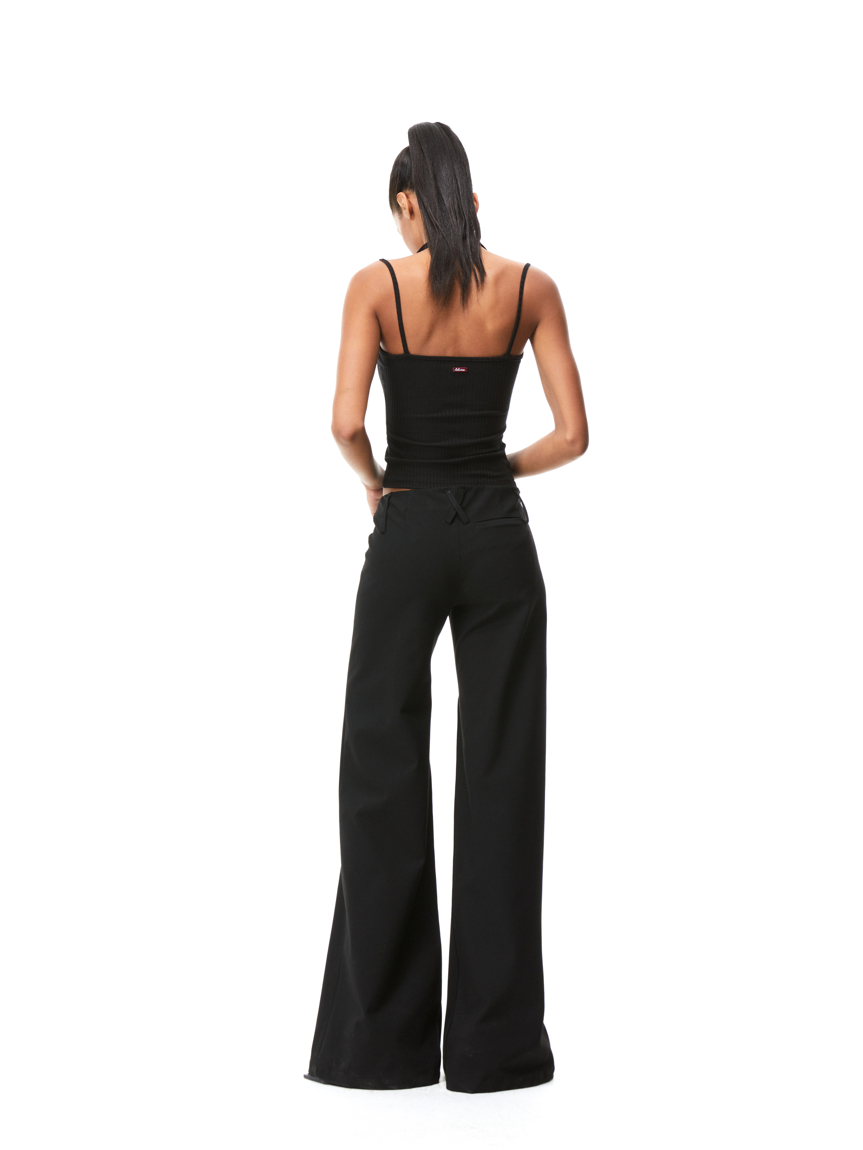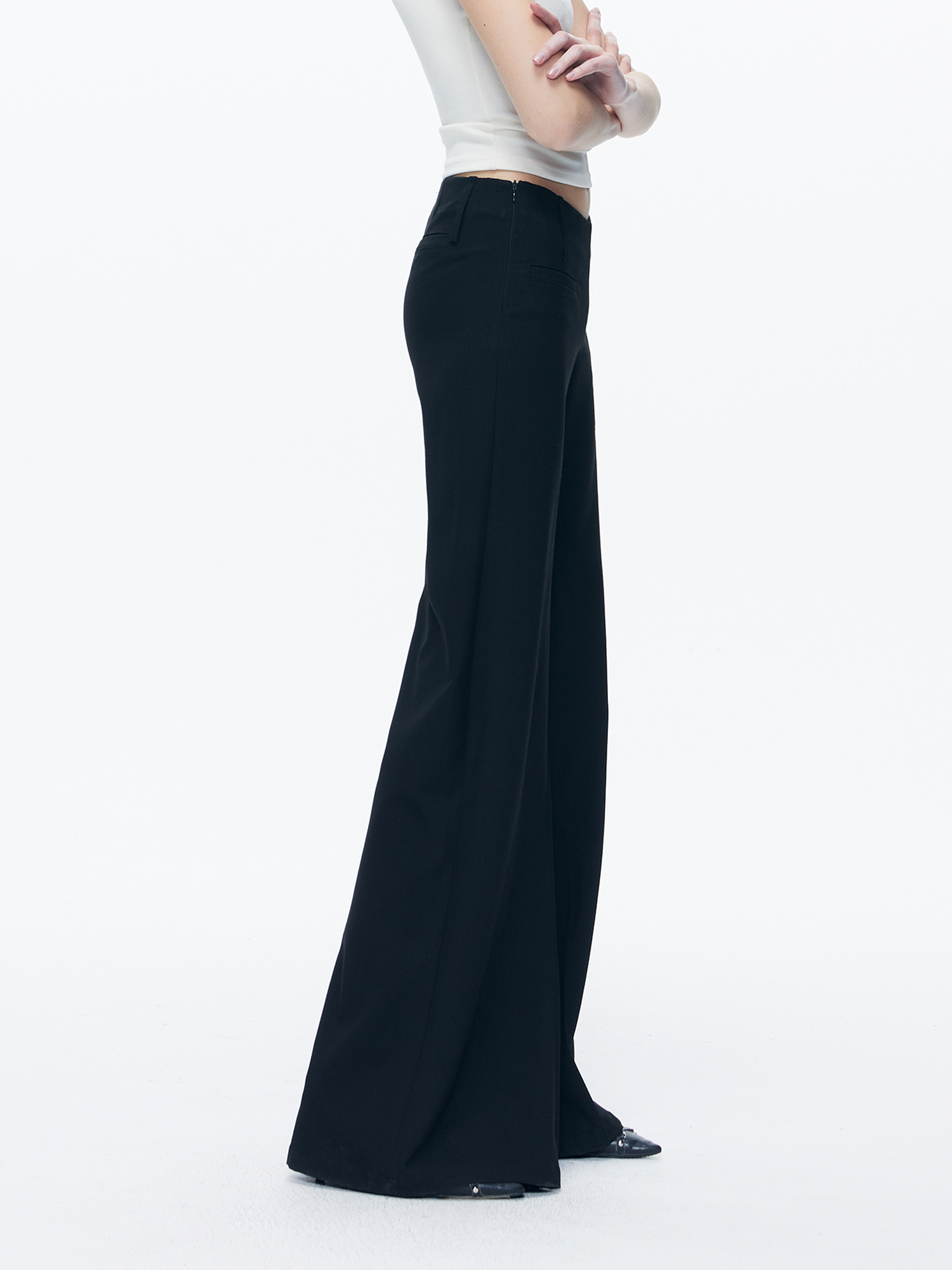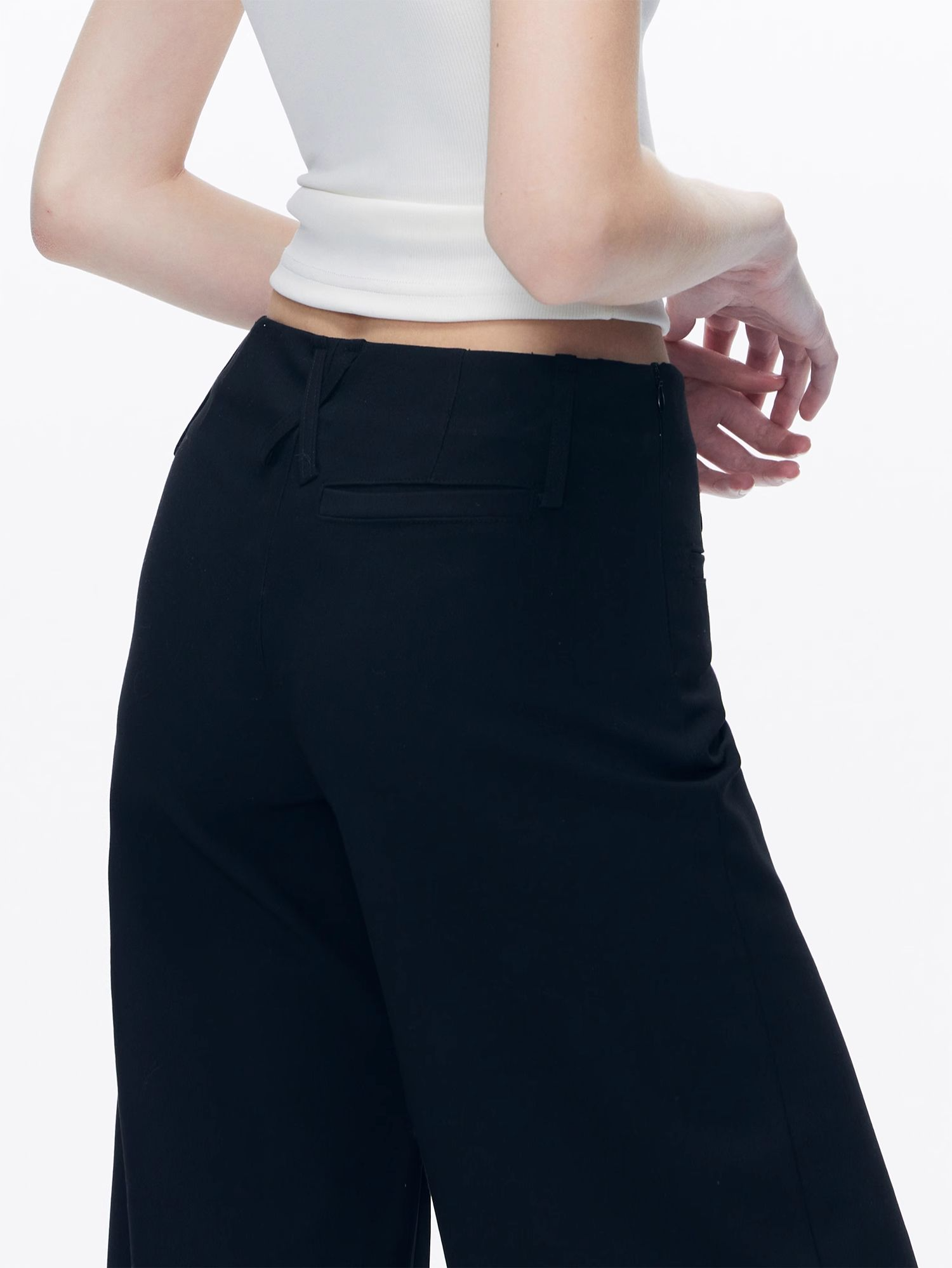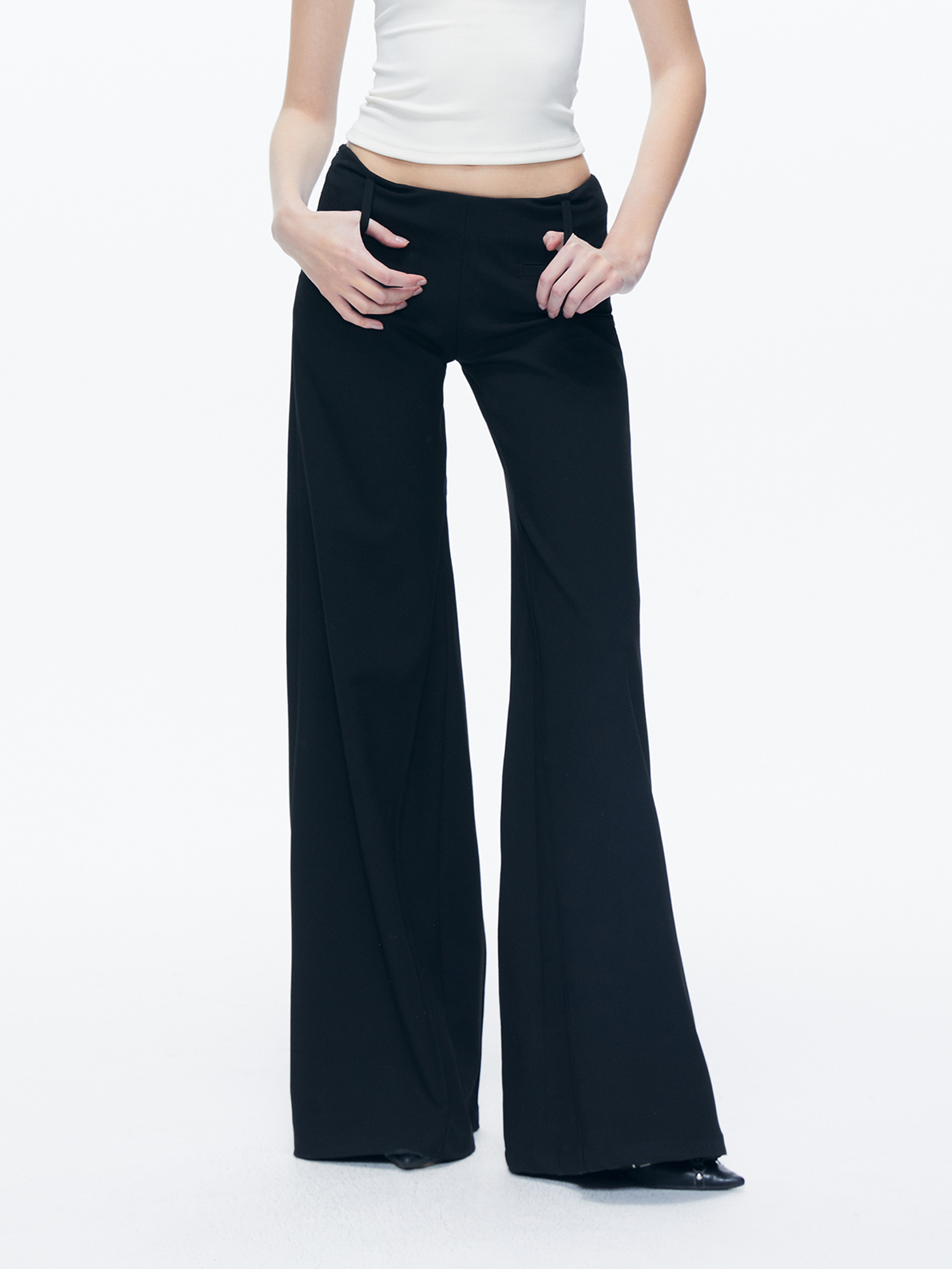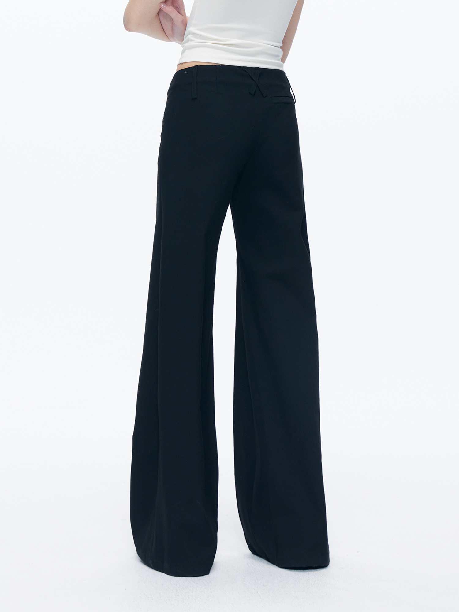 Kvkv Black Low-Waist Slim-Fit V-Shaped Trousers American Style Retro Casual Slimming Wide-Leg Flared Long Pants for Women