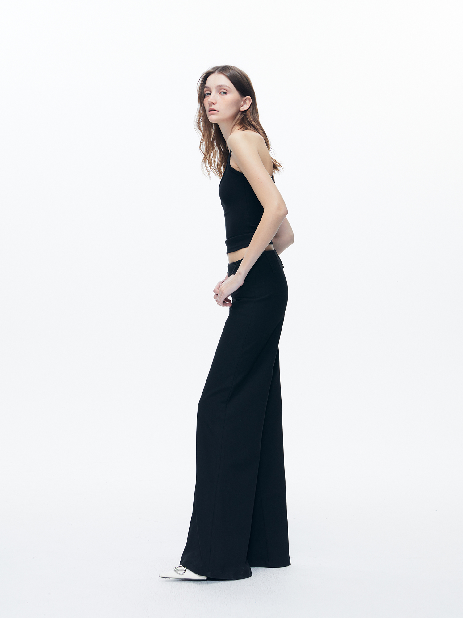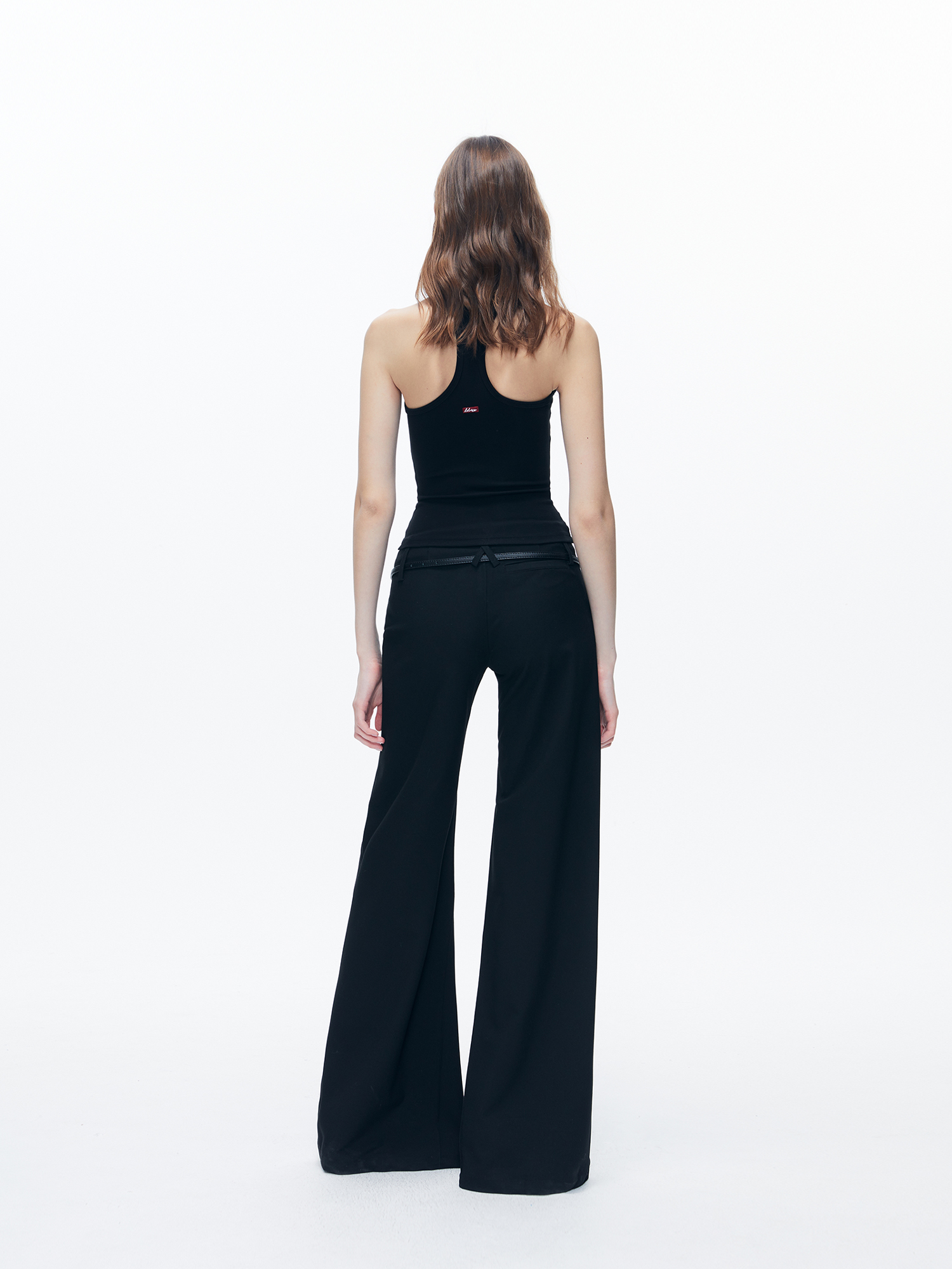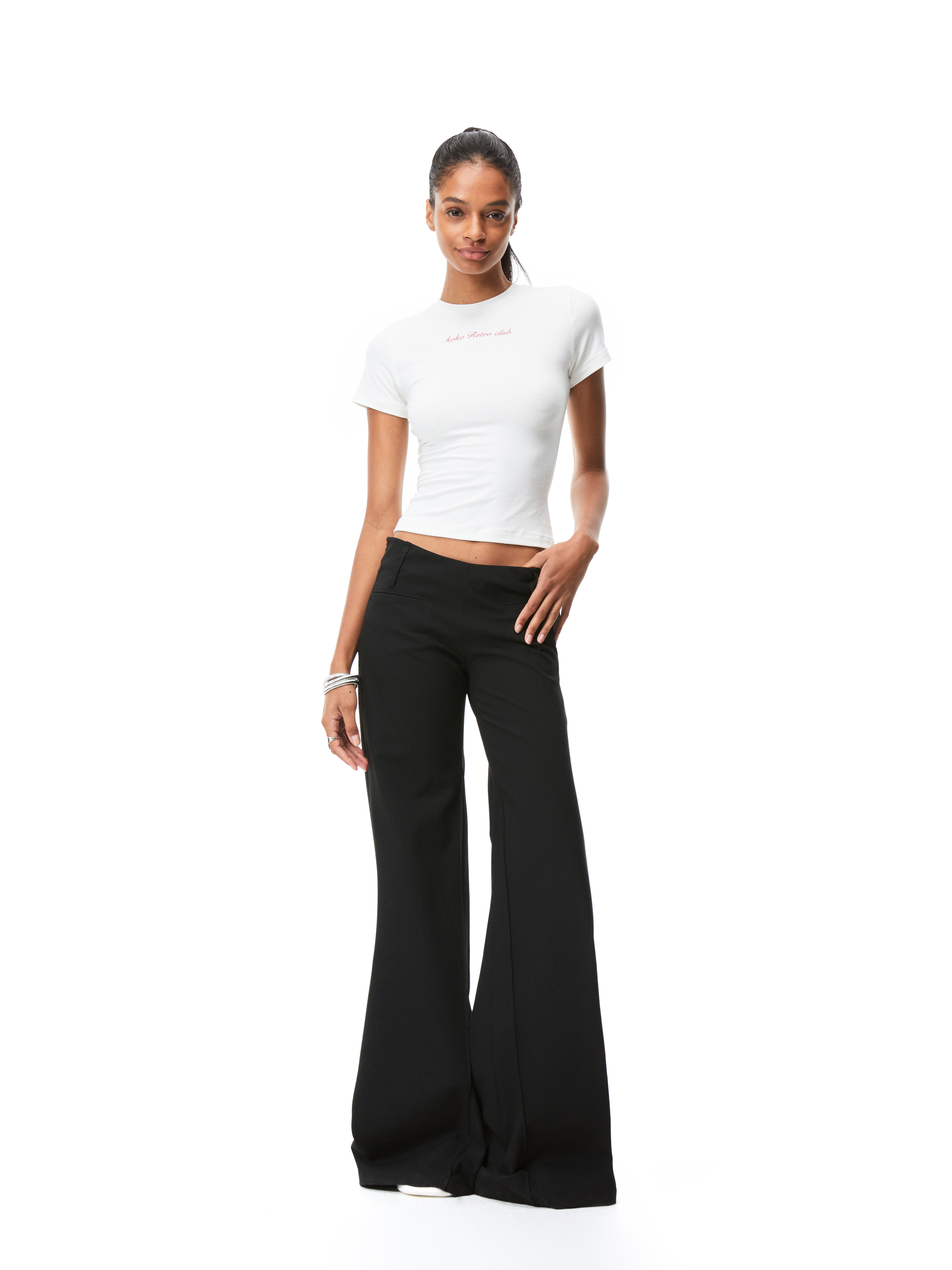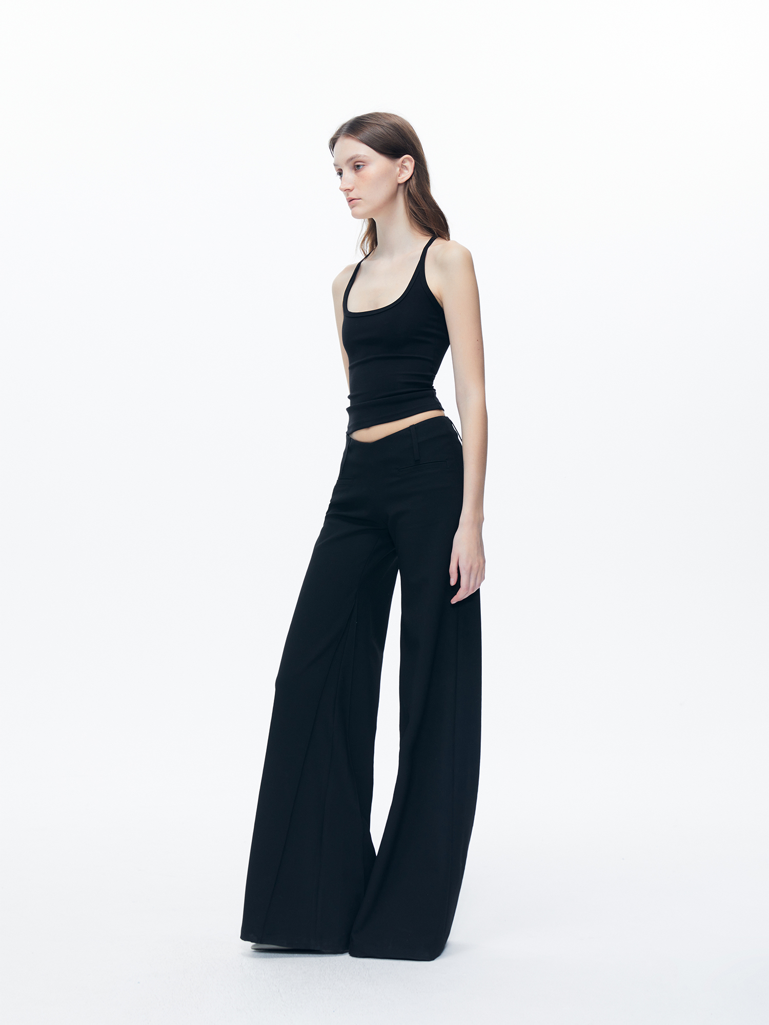 Kvkv Black Low-Waist Slim-Fit V-Shaped Trousers American Style Retro Casual Slimming Wide-Leg Flared Long Pants for Women