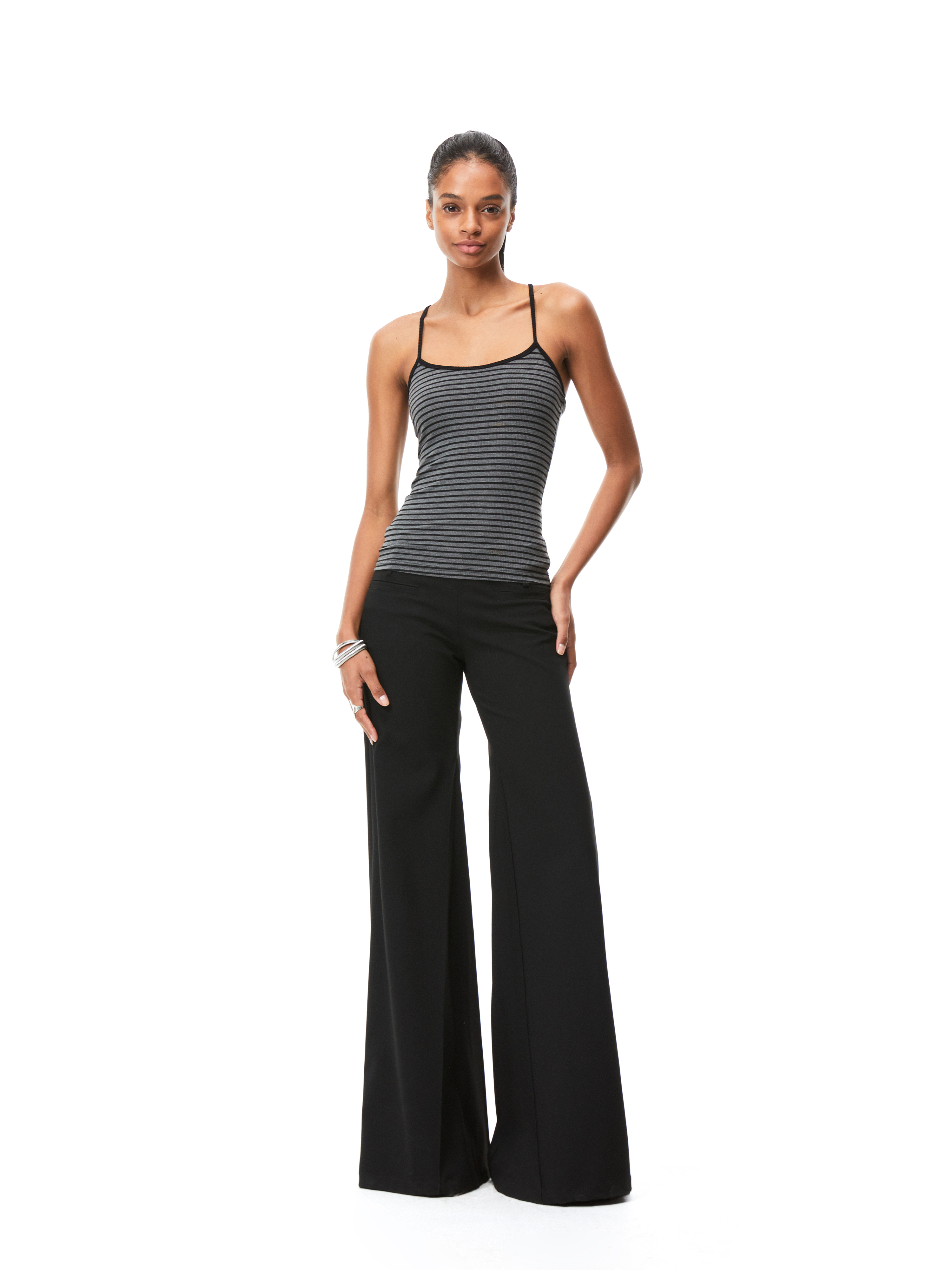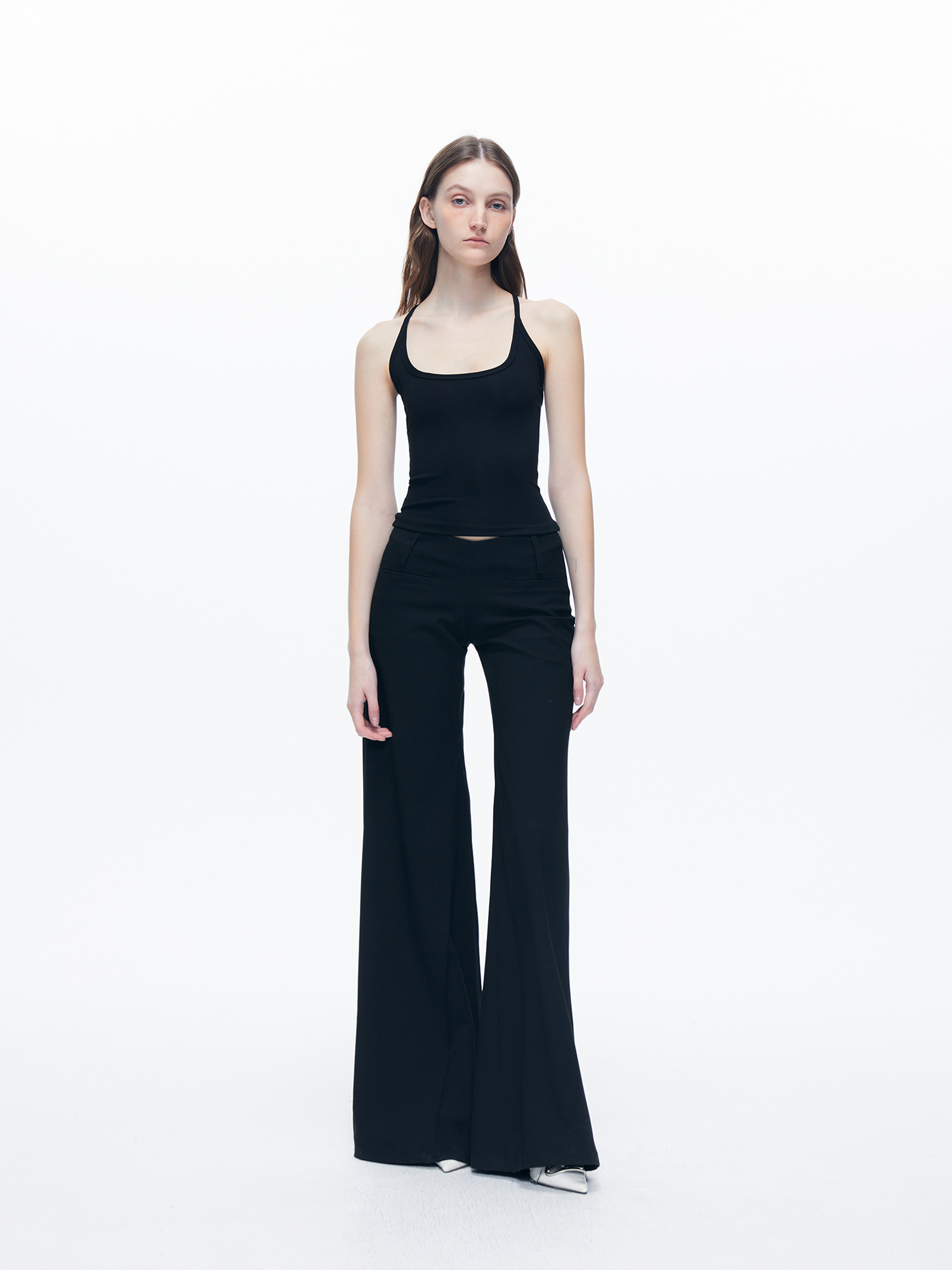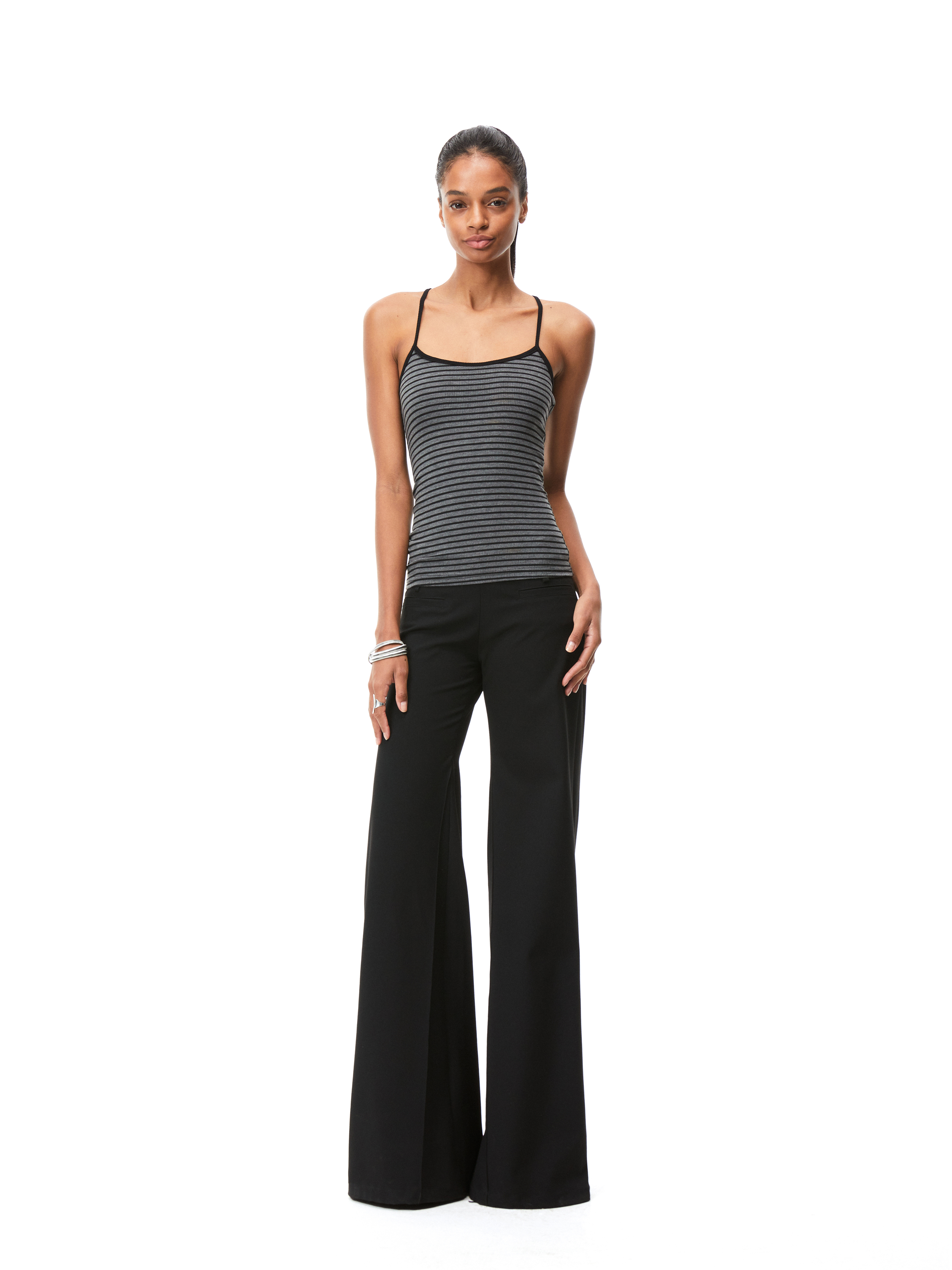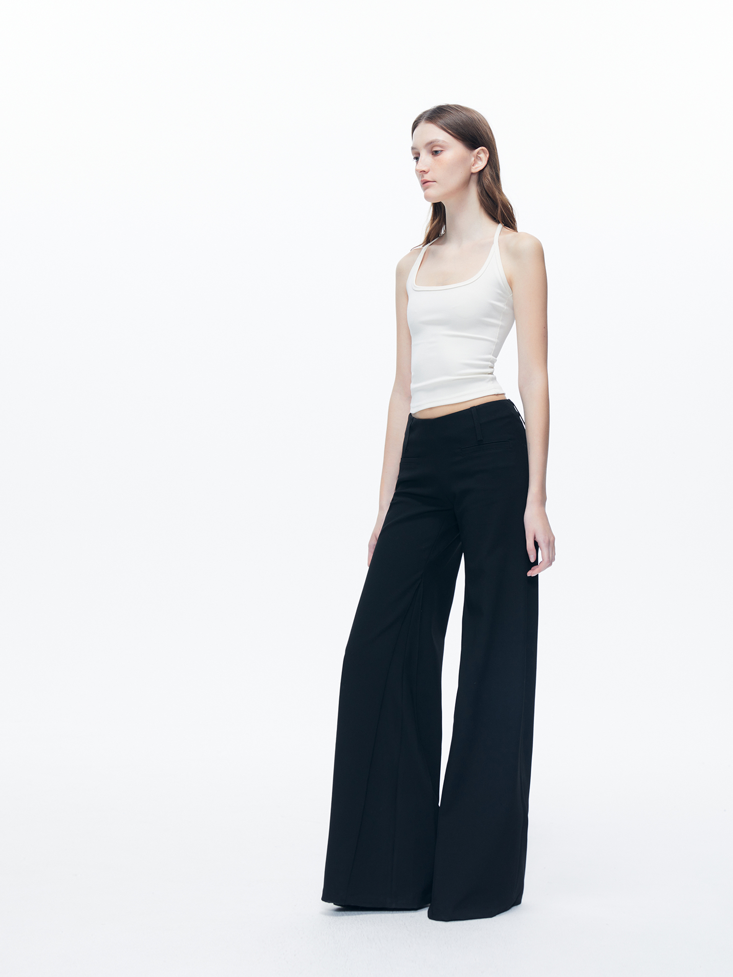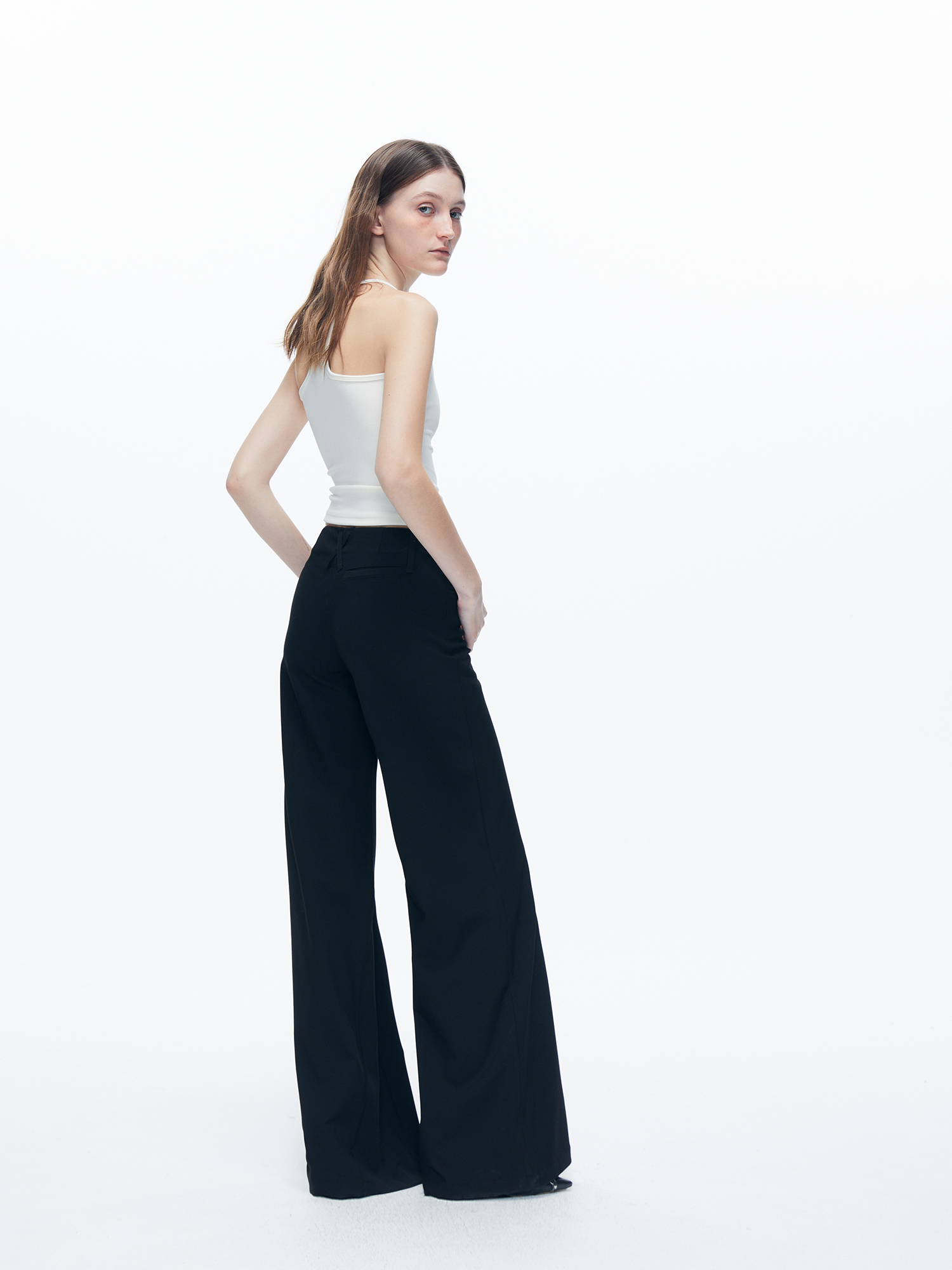 Kvkv Black Low-Waist Slim-Fit V-Shaped Trousers American Style Retro Casual Slimming Wide-Leg Flared Long Pants for Women