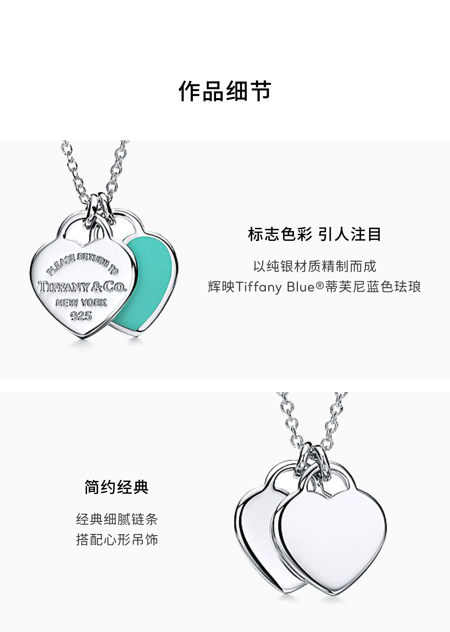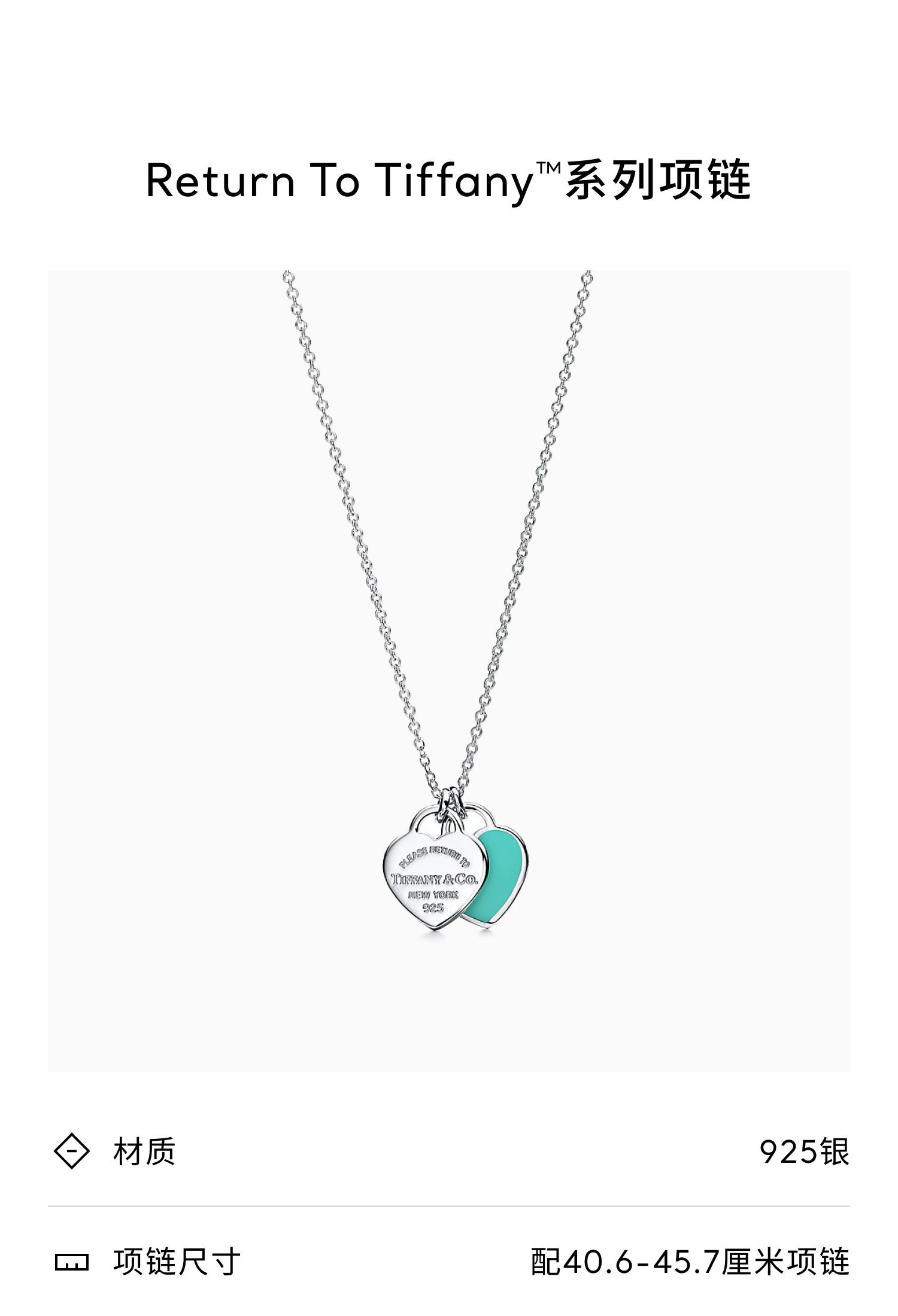 设计:Return to Tiffany™ 系列 Double Heart Tag 纯银镶嵌珐琅迷你项链。