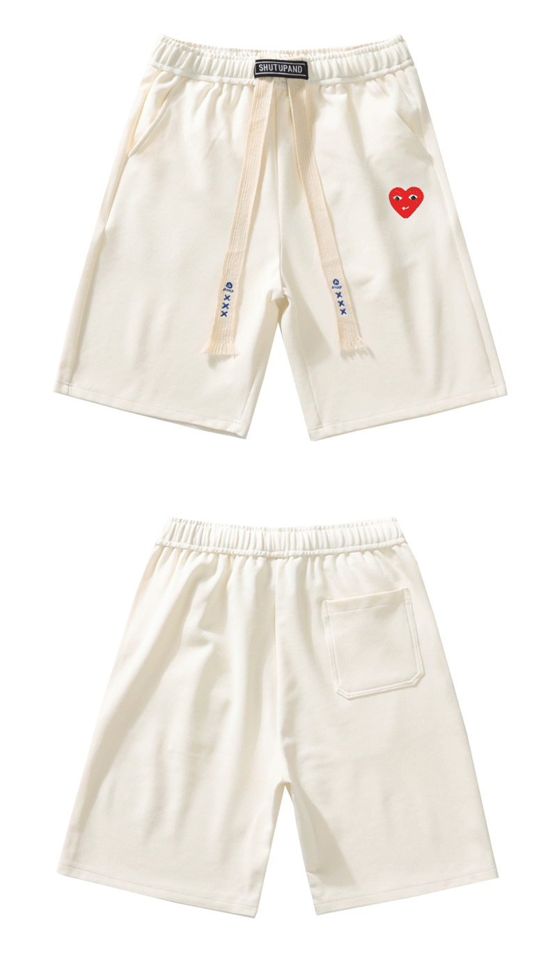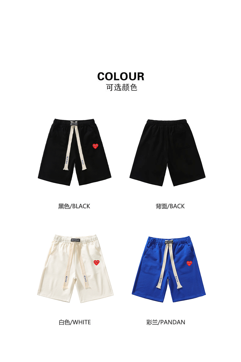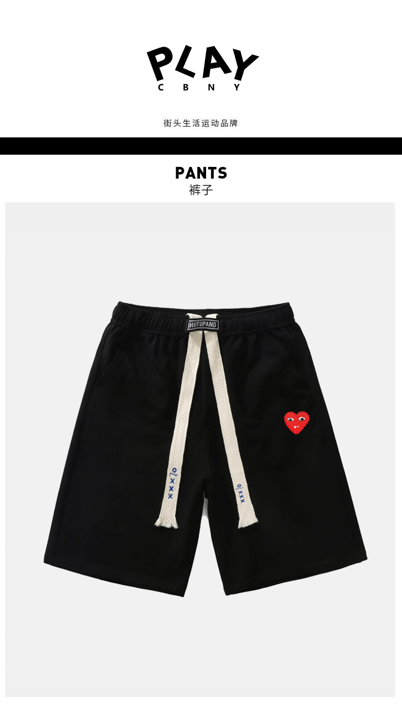 Play Official Shorts for Men and Women Couples 2025 Summer New Heart Embroidery Casual Loose Black Five-Point Shorts Trendy