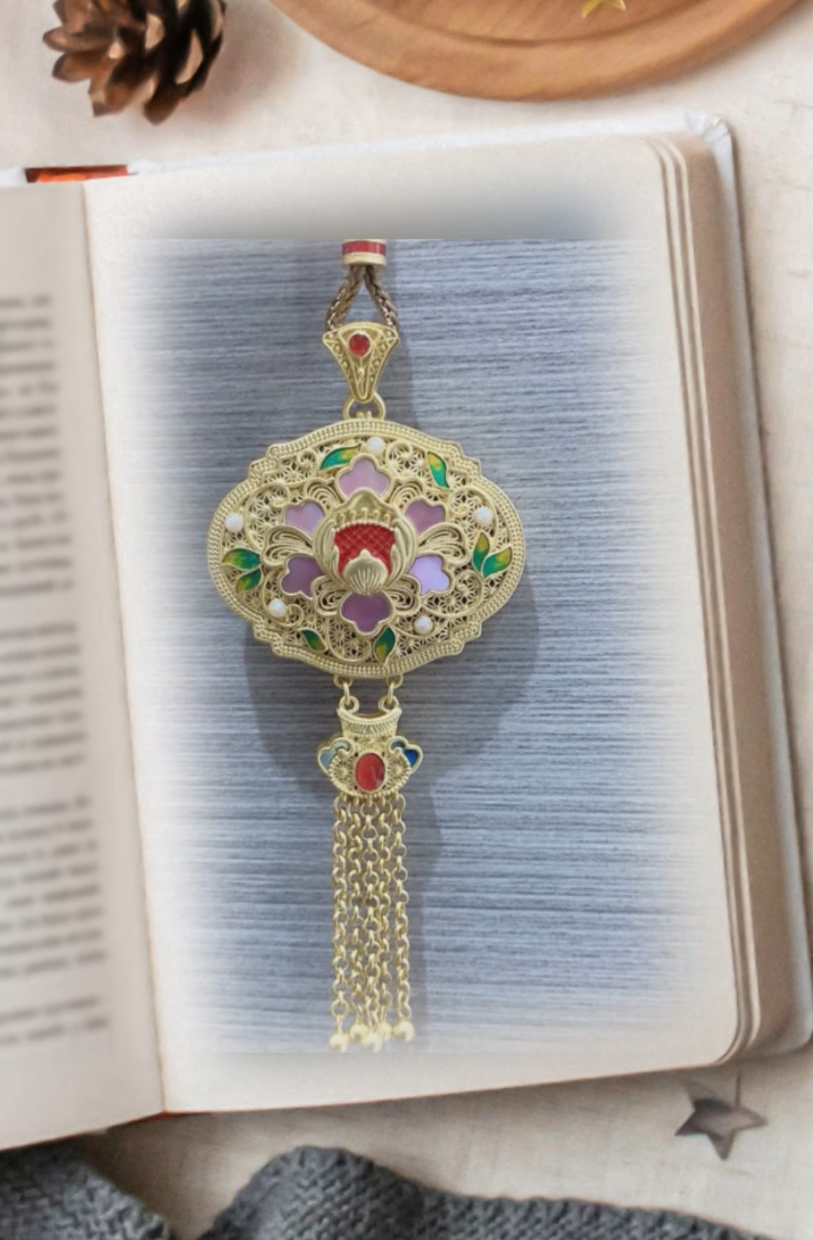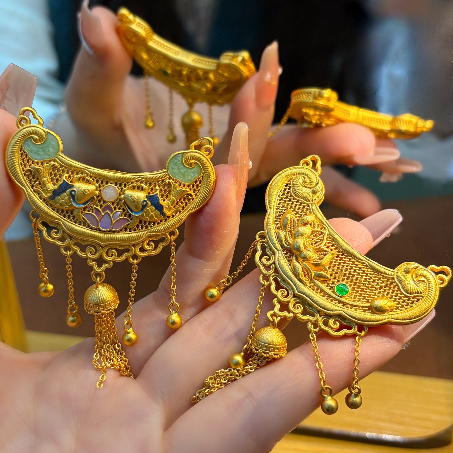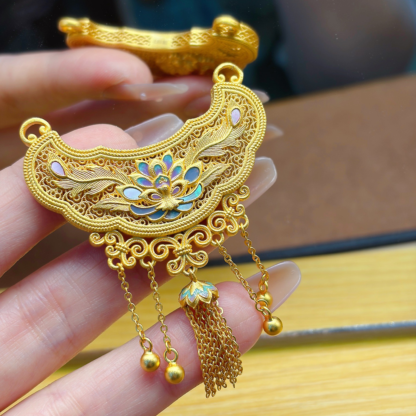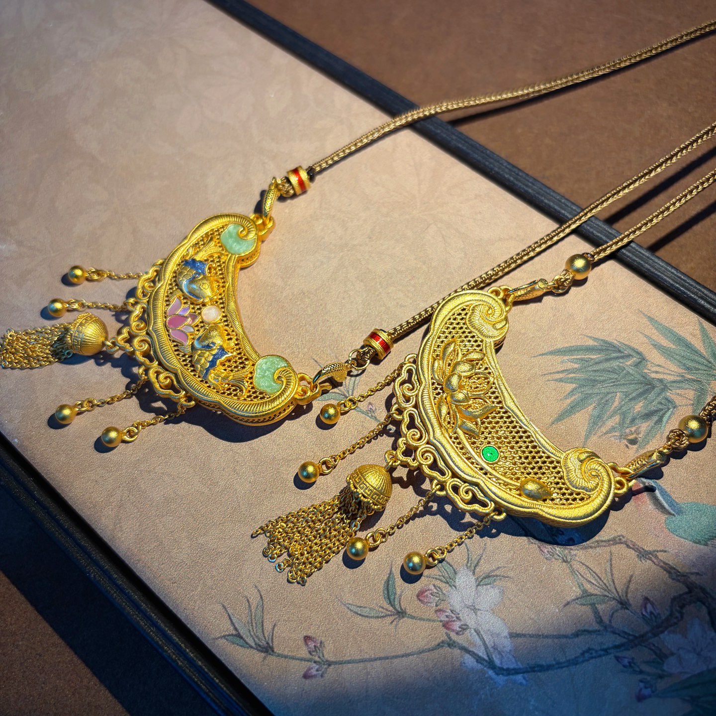 Phoenix Peony Pisces Electroplated Gold Pendant Pure Silver 999 New Chinese Style Mother-Of-Pearl Tassel Women's Lock Bag Pendant Necklace Set