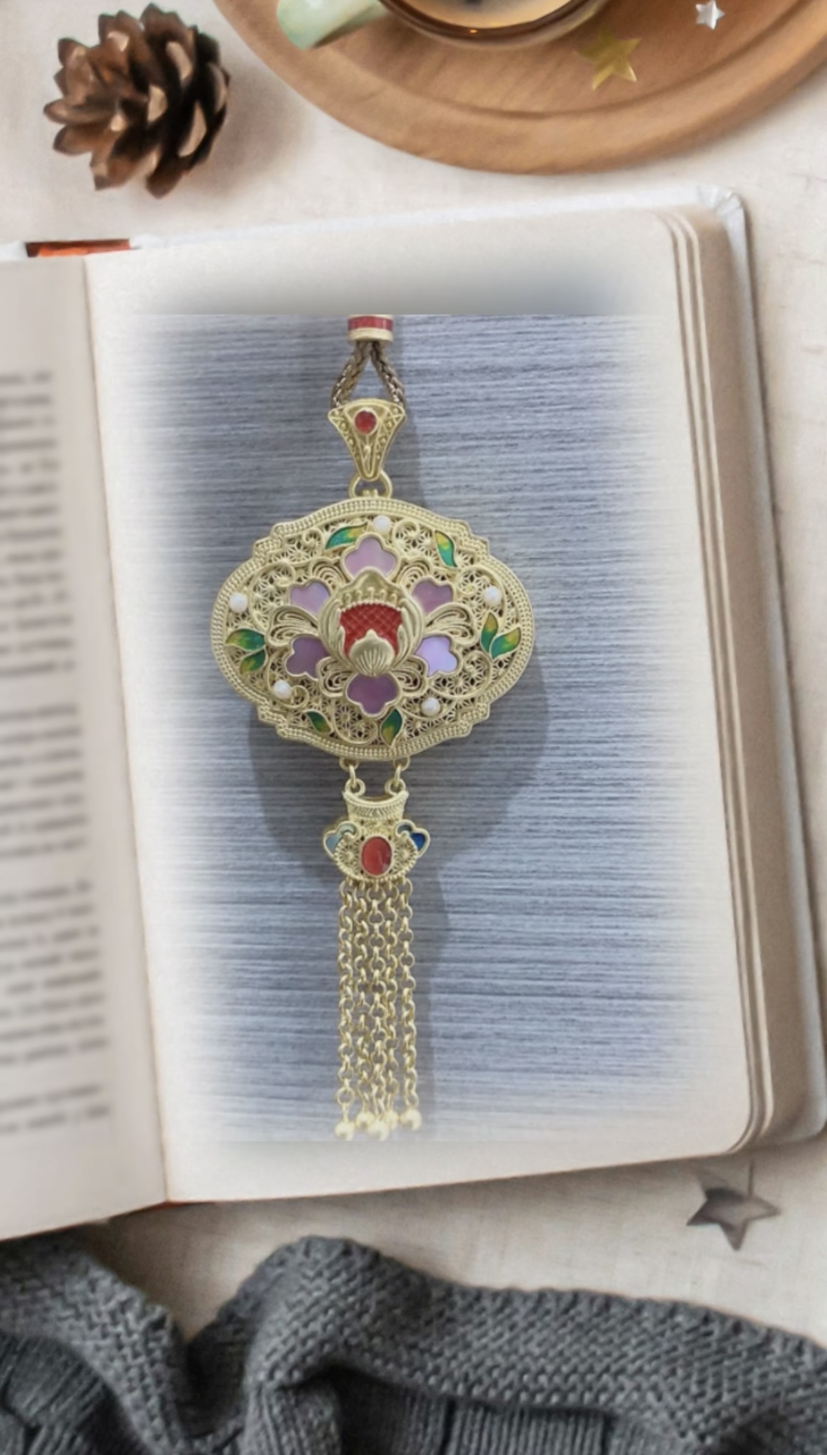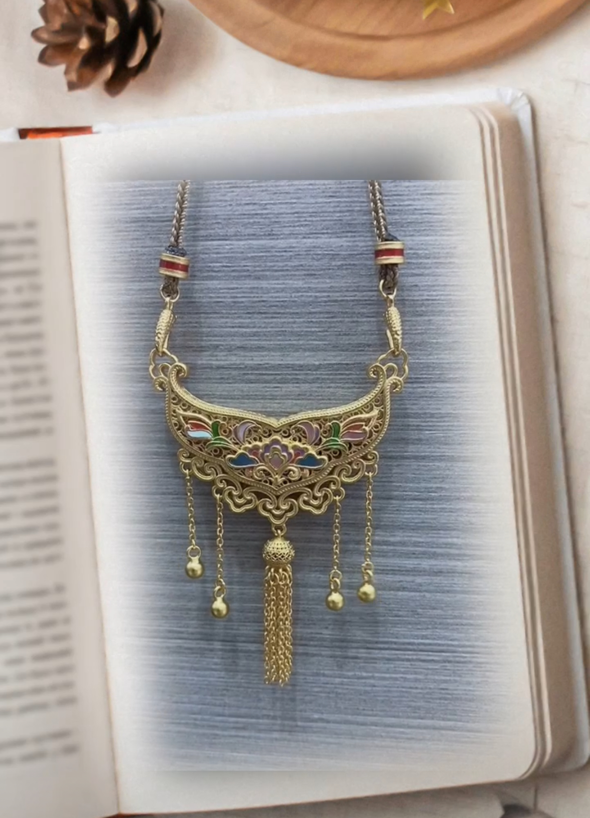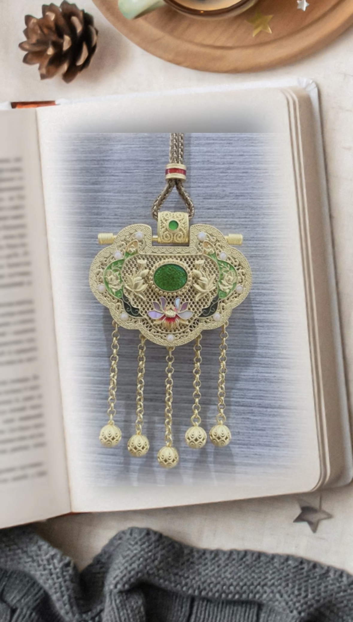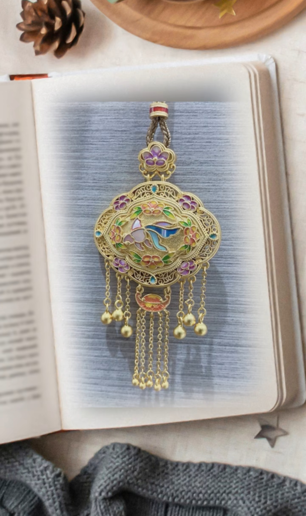 Phoenix Peony Pisces Electroplated Gold Pendant Pure Silver 999 New Chinese Style Mother-Of-Pearl Tassel Women's Lock Bag Pendant Necklace Set