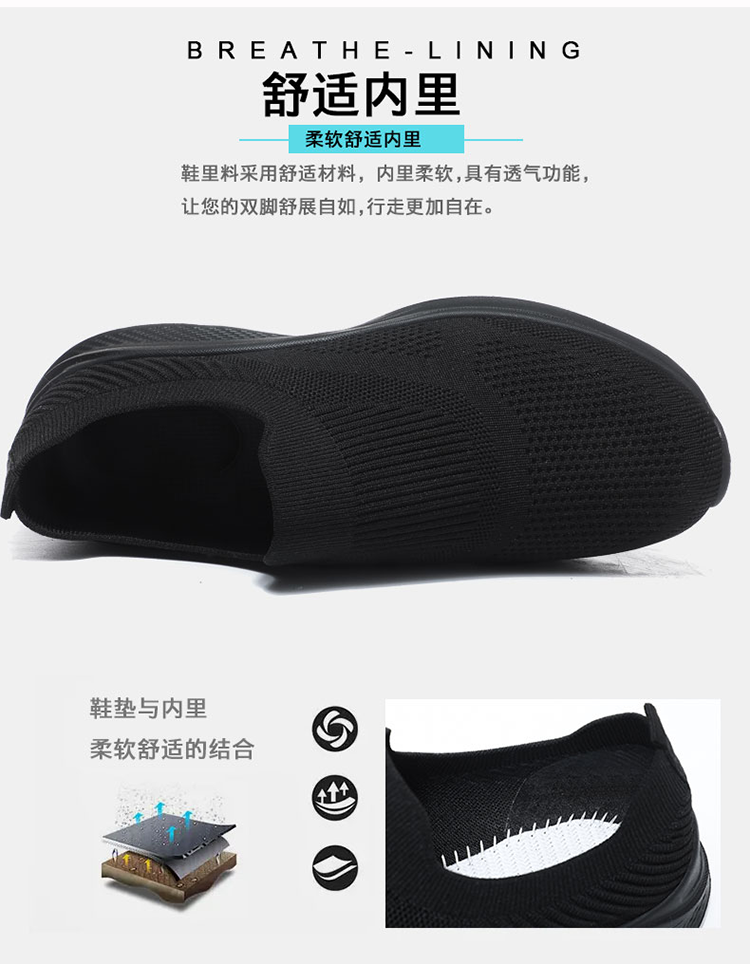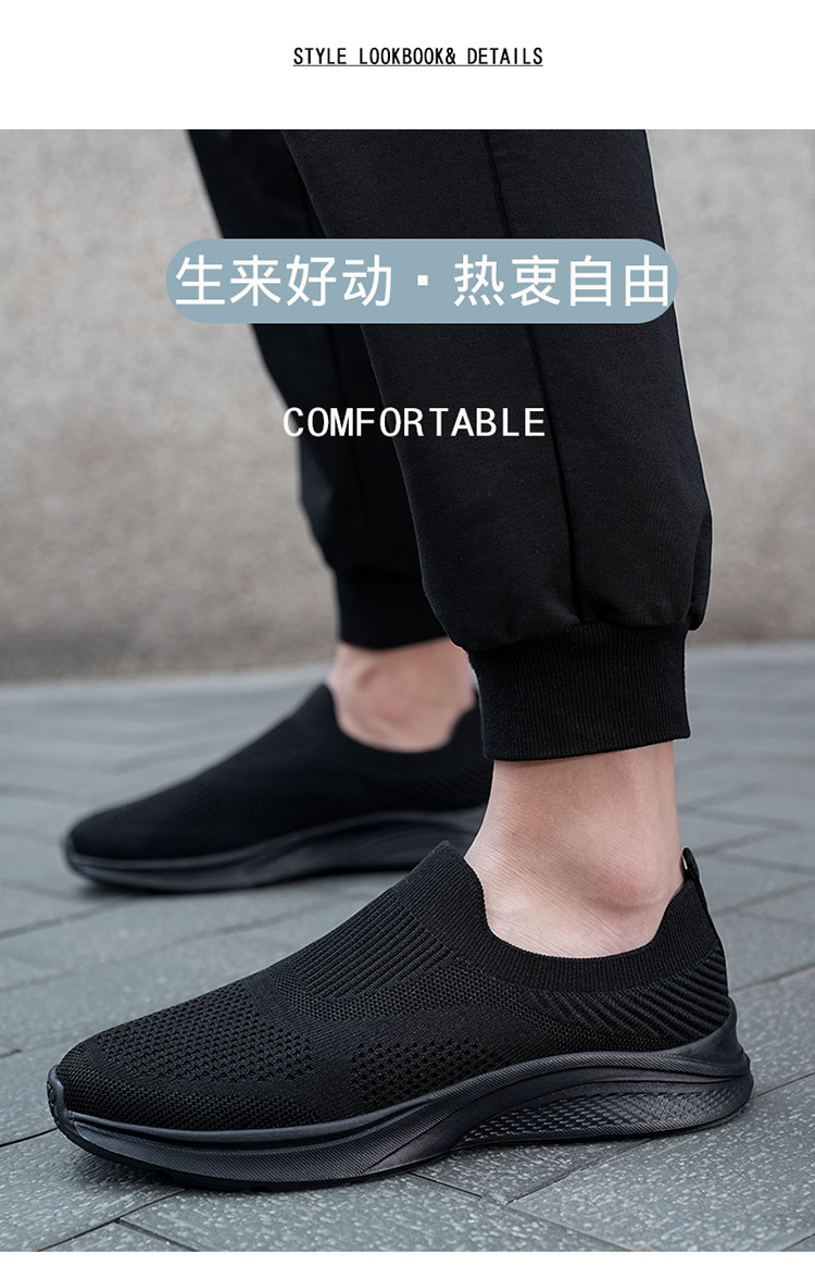 Large Size Men's Shoes, Autumn Breathable Black Sneakers, Men's Lightweight Slip-On Mesh Shoes, Old Beijing Cloth Shoes, Sizes 45-47