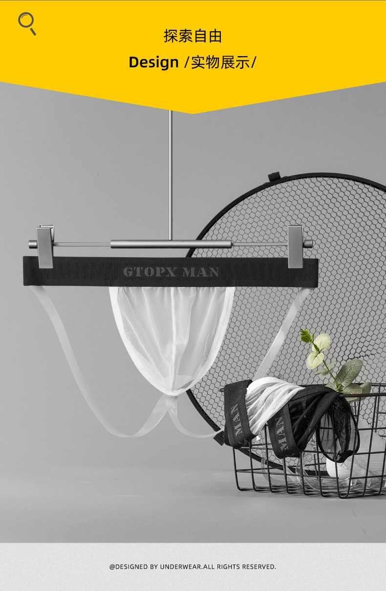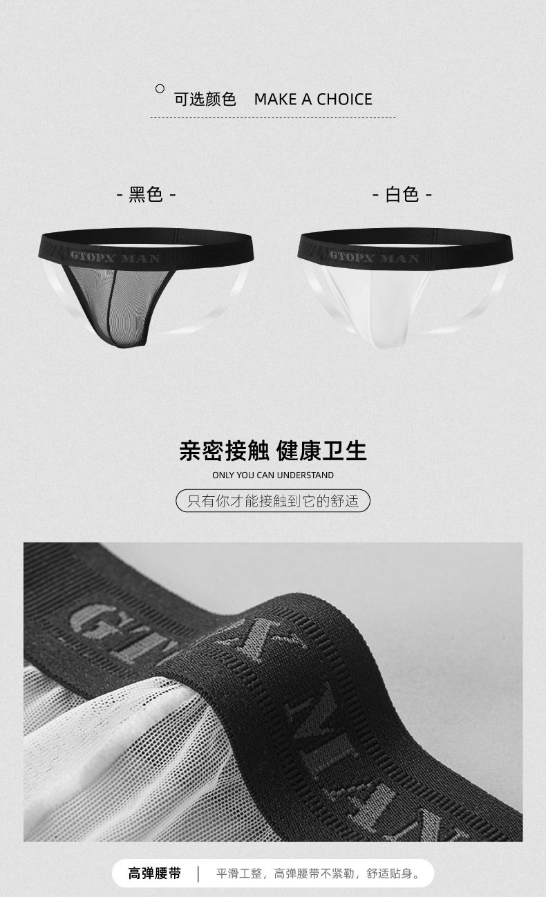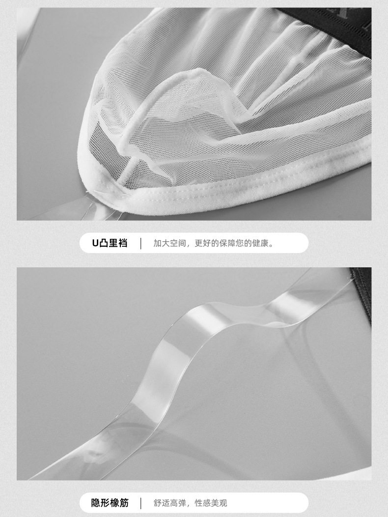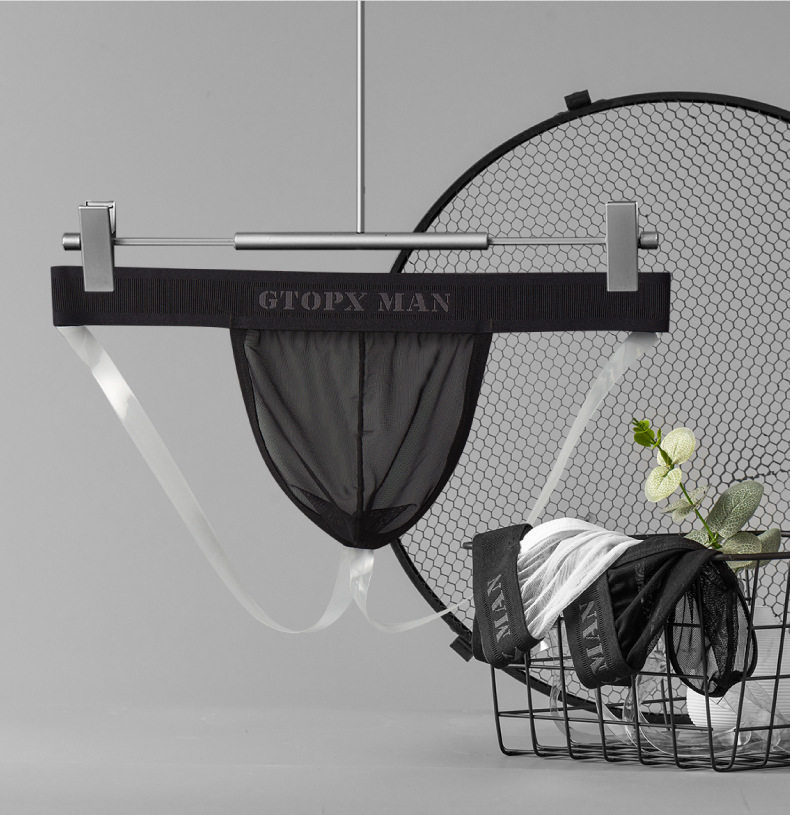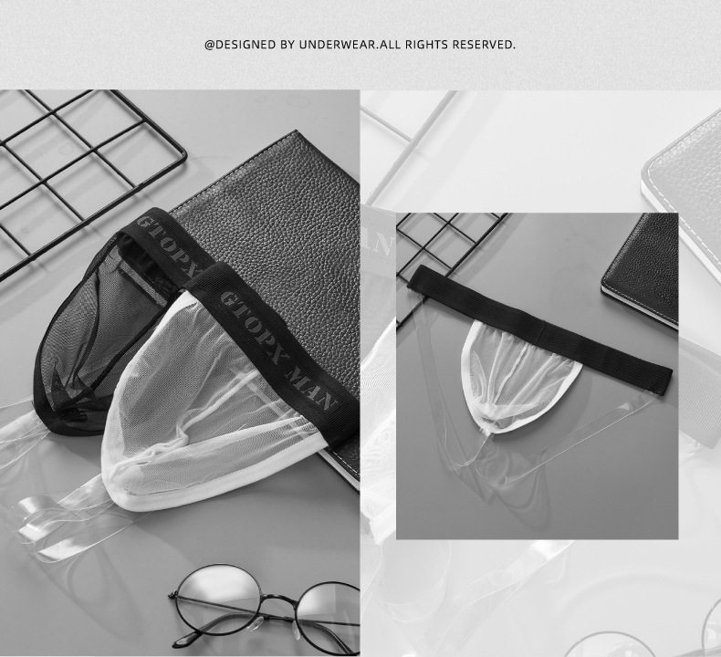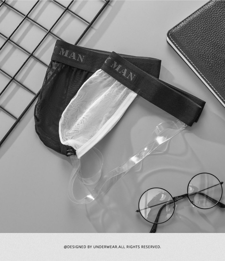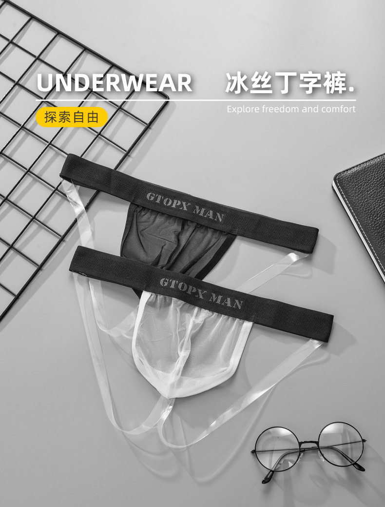 Men's Ice Silk Mesh Transparent Double Thong Low-Rise Sexy Breathable Mesh U-Convex Three-Dimensional Pouch Erotic T-Pants
