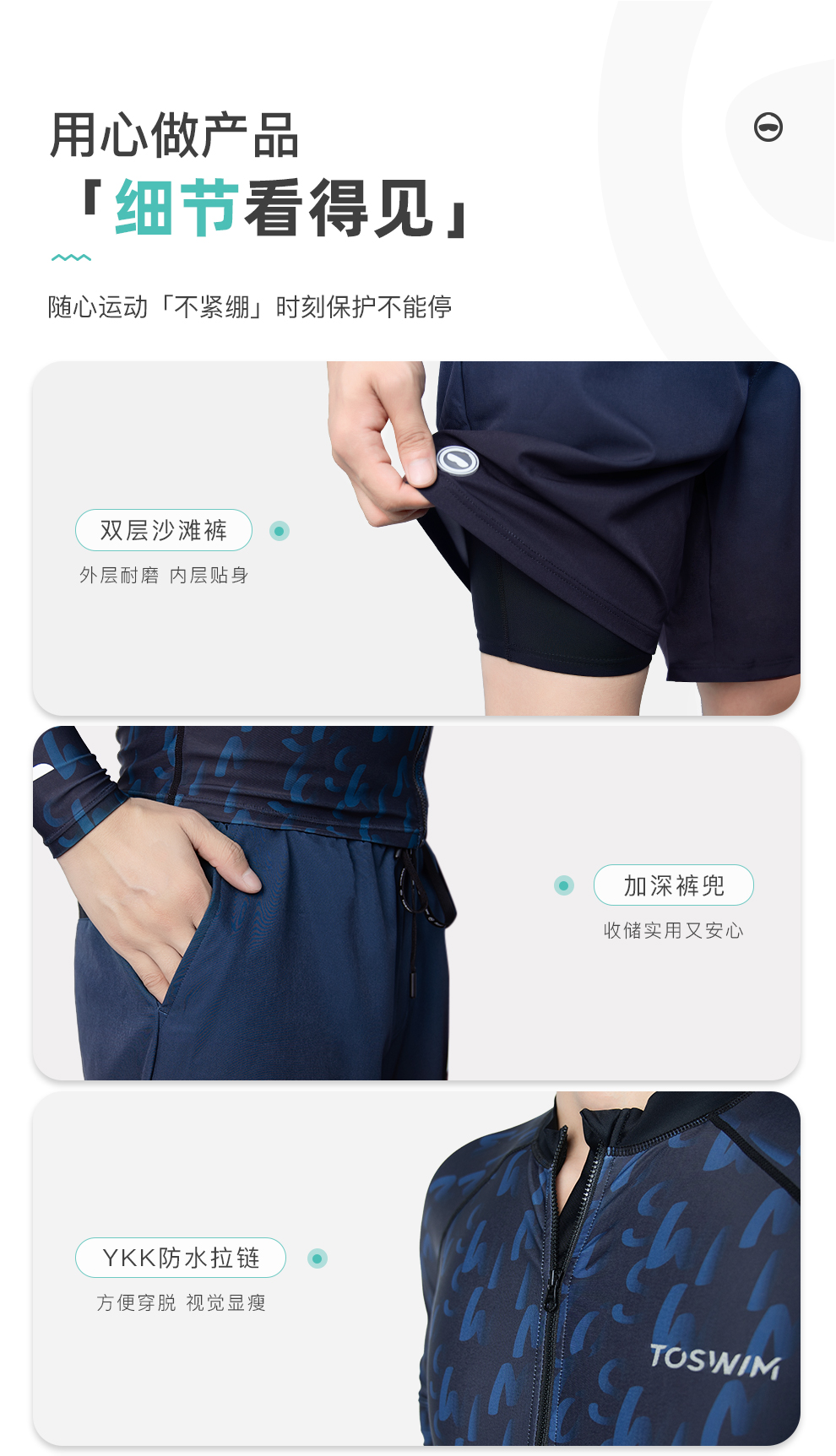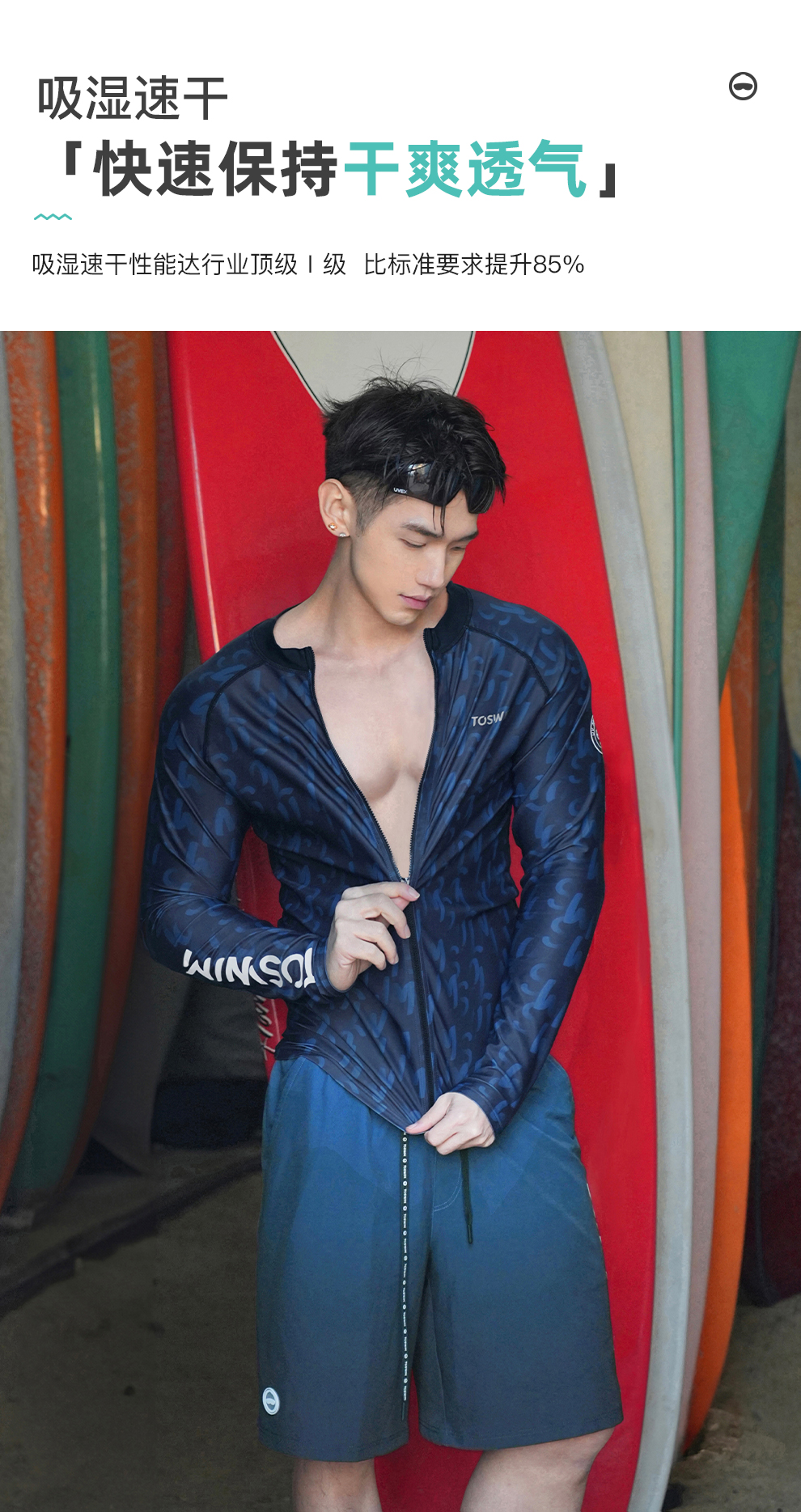 Toswim Men's Long-Sleeved Swimsuit and Trunks Set 2025 New Adult Beach Diving Sun Protection Surfing Suit Swimwear