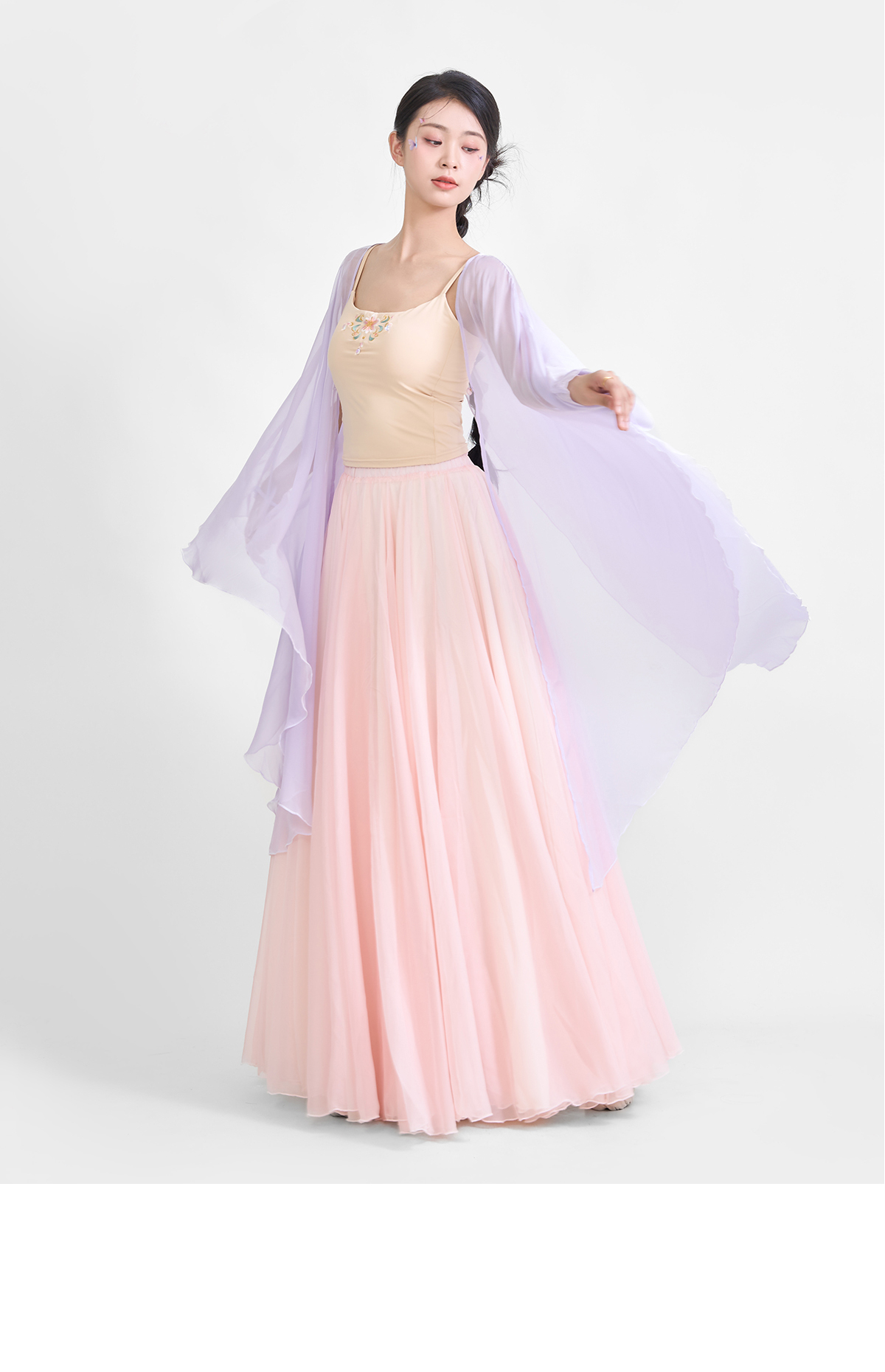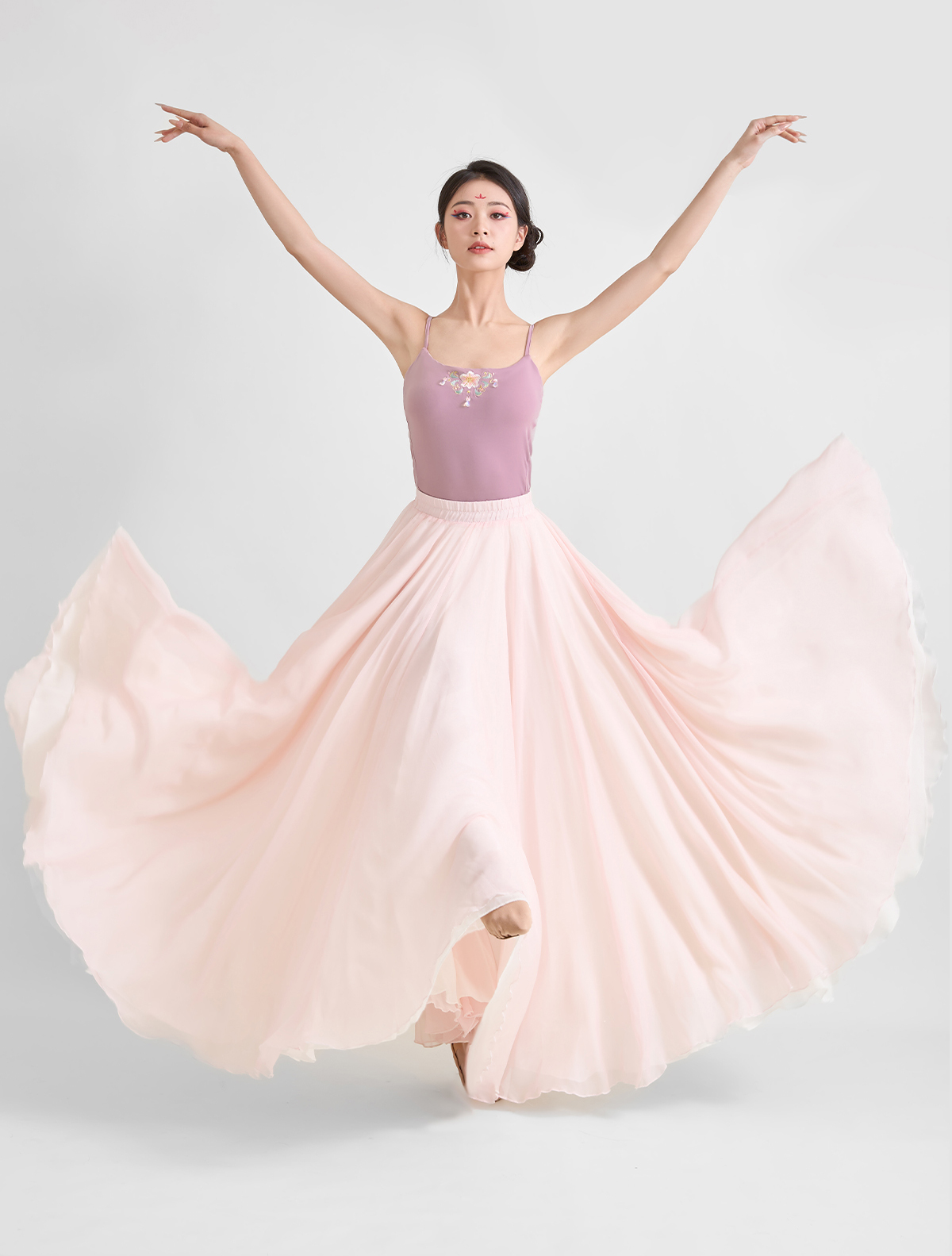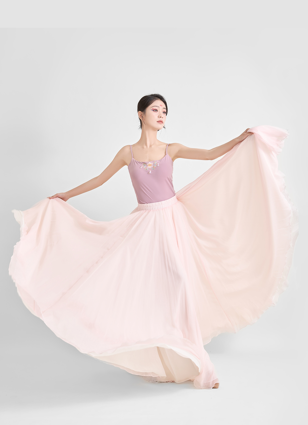 【White+】Fairy Dress Classical Dance Skirt Gentle Style Half-Length Skirt Performance Women's 720-Degree Pink Large Skirt Dance Costume Skirt