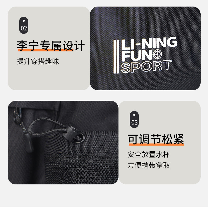 Li Ning Crossbody Bag for Men, Large Capacity Sports Shoulder Bag, New Outdoor Fashion Multifunctional Casual Travel Backpack for Women
