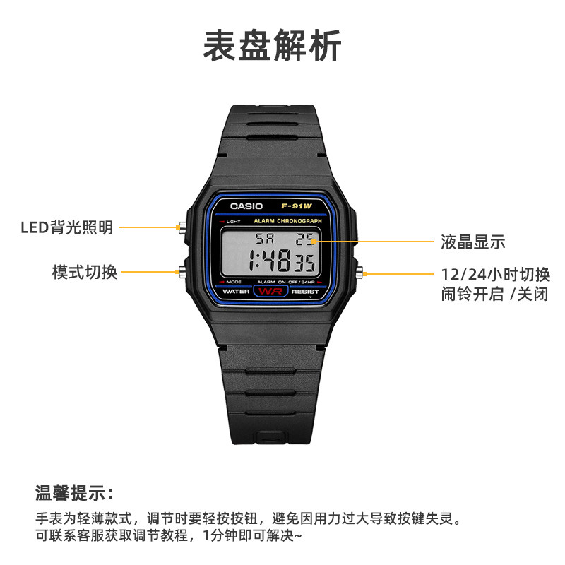 Casio Retro Student Electronic Small Square Watch F91 Waterproof Fully Automatic Calendar Digital Display Daily Alarm Clock