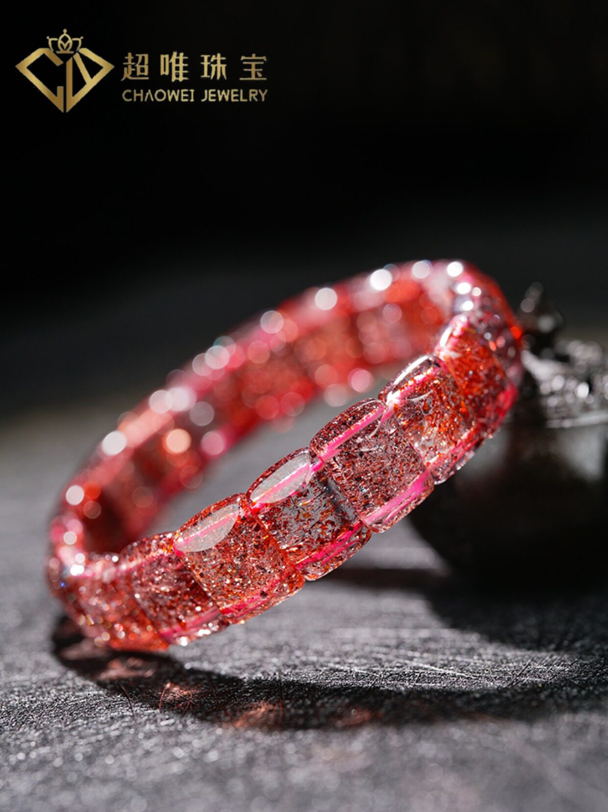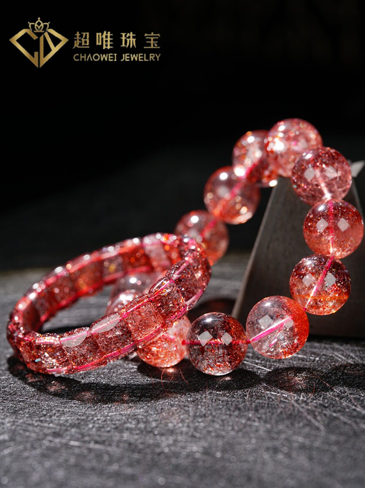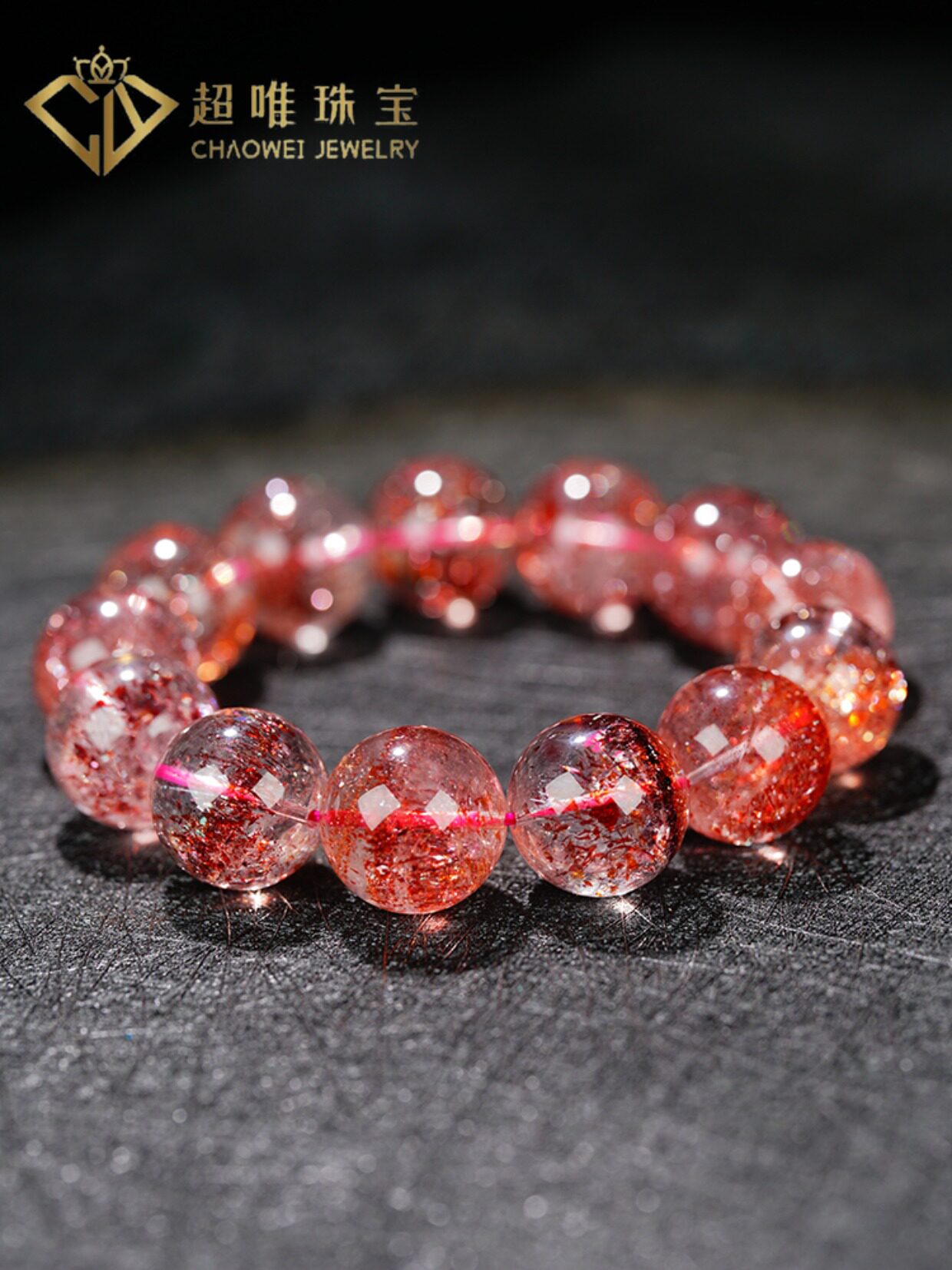 Super Rare Jewelry Full of Gold Strawberry Beads, Collector-Grade Mica Flakes, Hair-Like Spider Lily, Super Seven Natural Crystal Bracelet