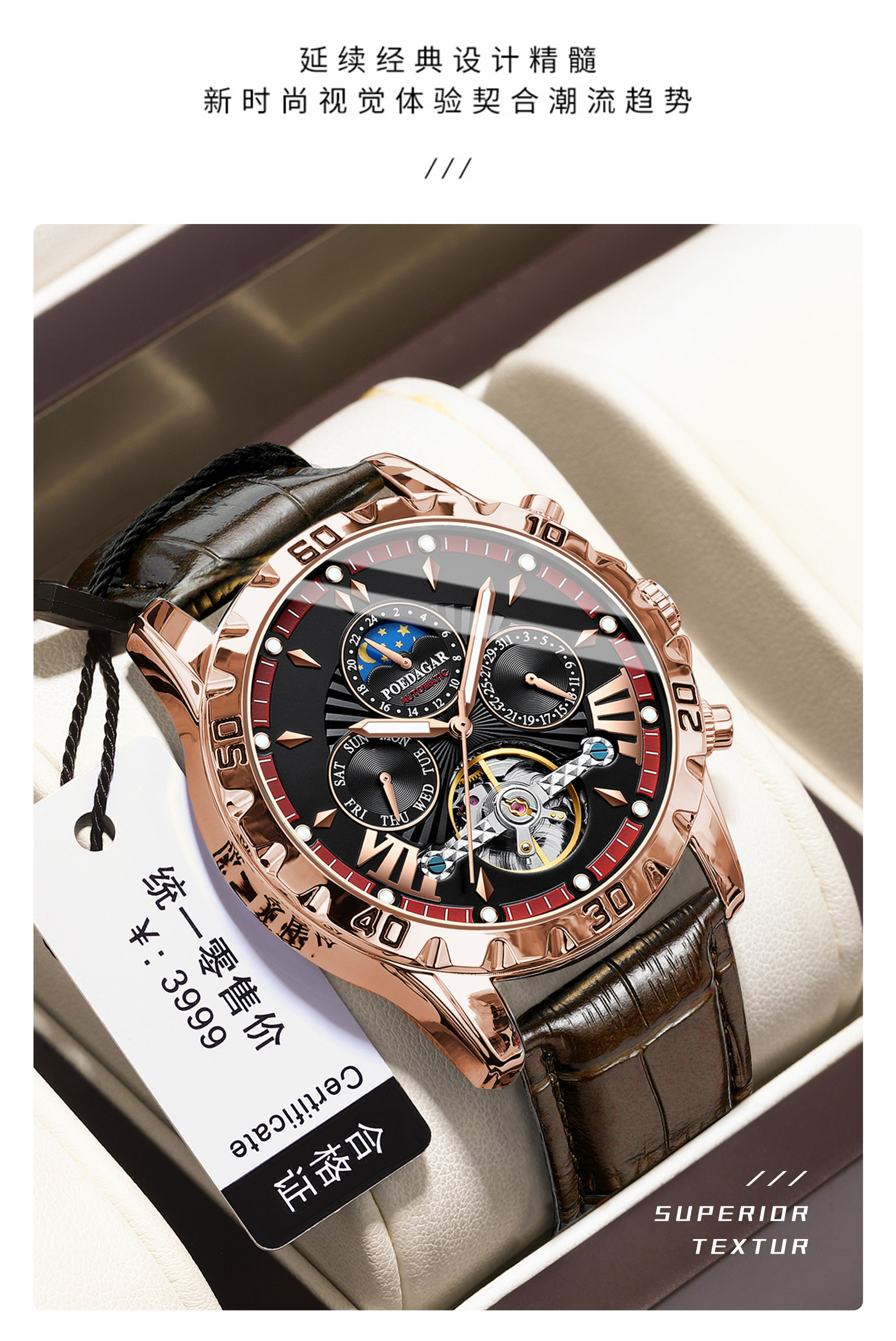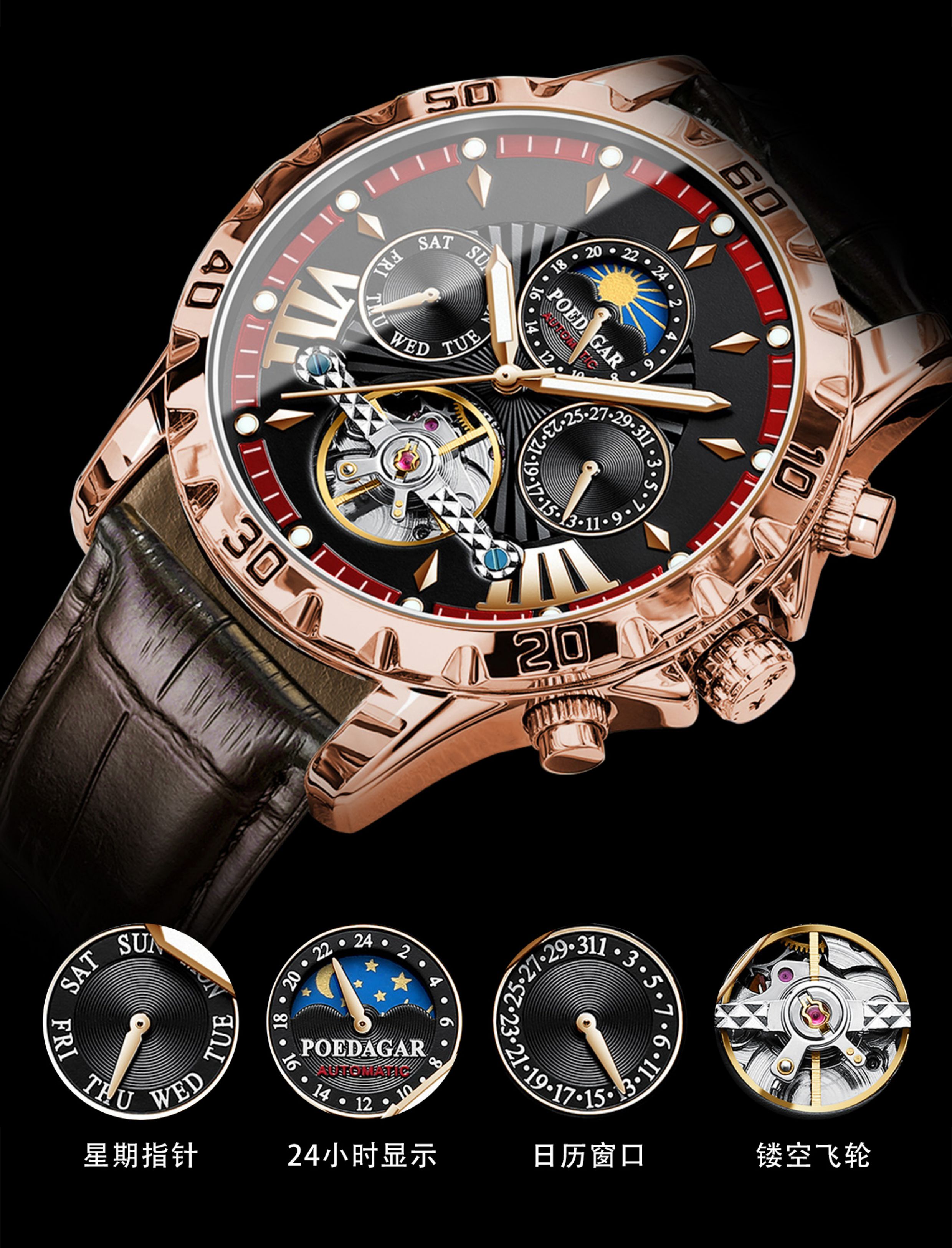 Genuine New Men's Watch Waterproof Fully Automatic Mechanical Multi-Functional Fashion High-End Calendar Watch Men's Watch