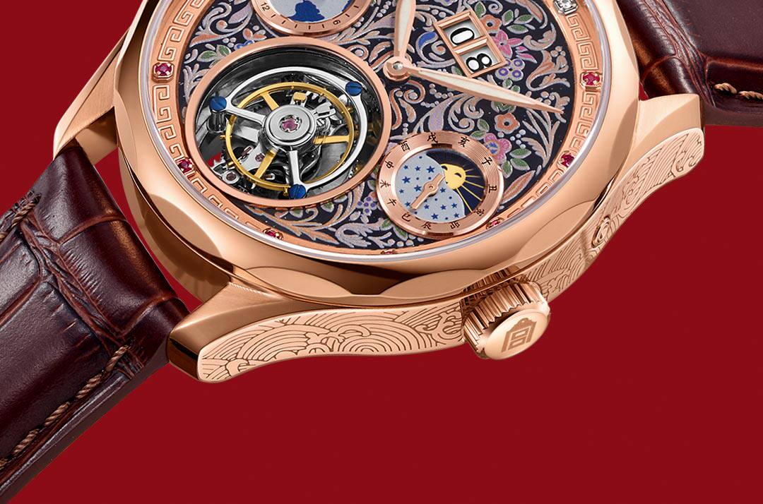 [Forbidden City] Sunrise Series - Multifunctional Tourbillon Mechanical Watch with Sapphire Crystal and Genuine Diamond Inlay for Men