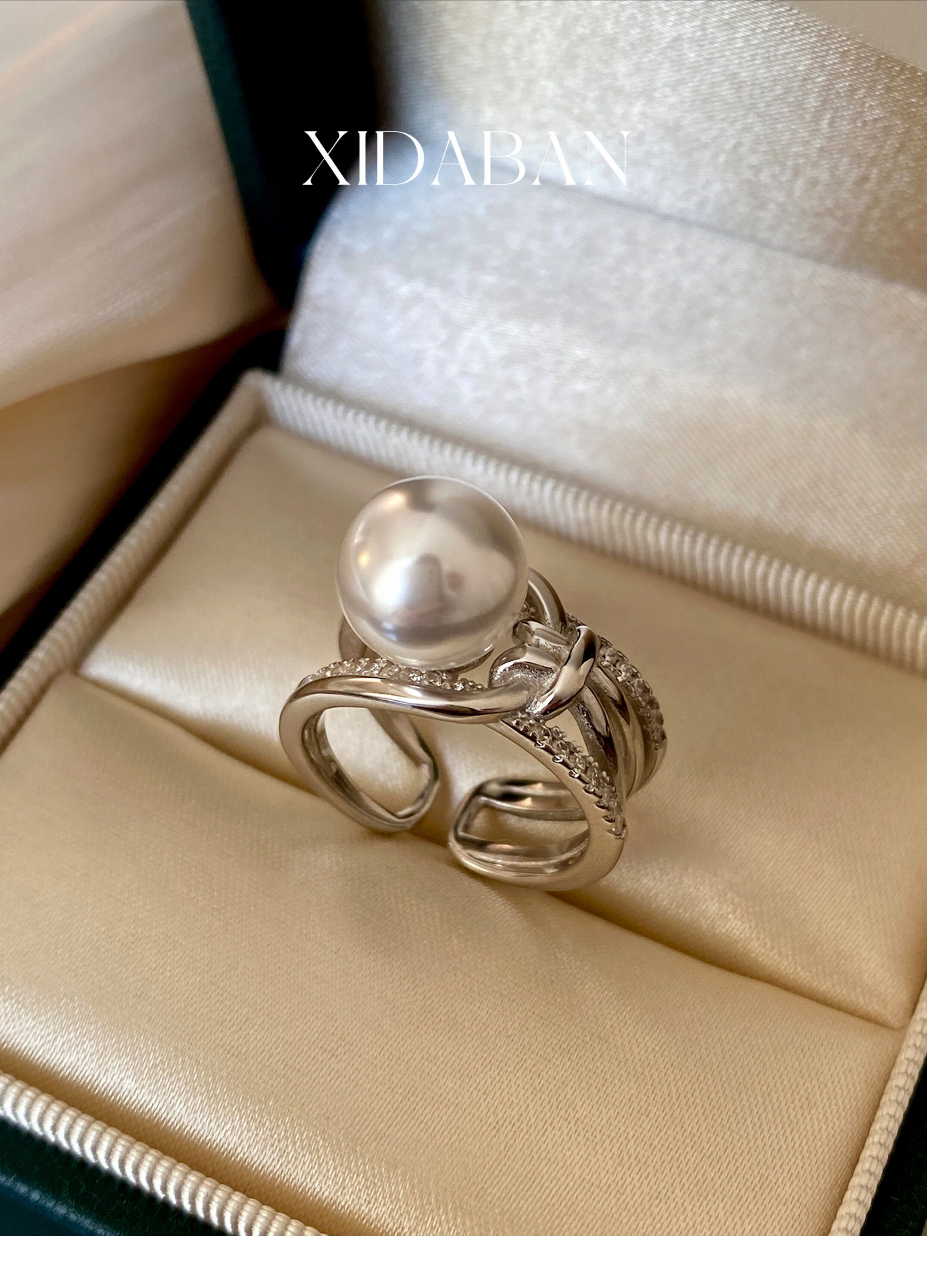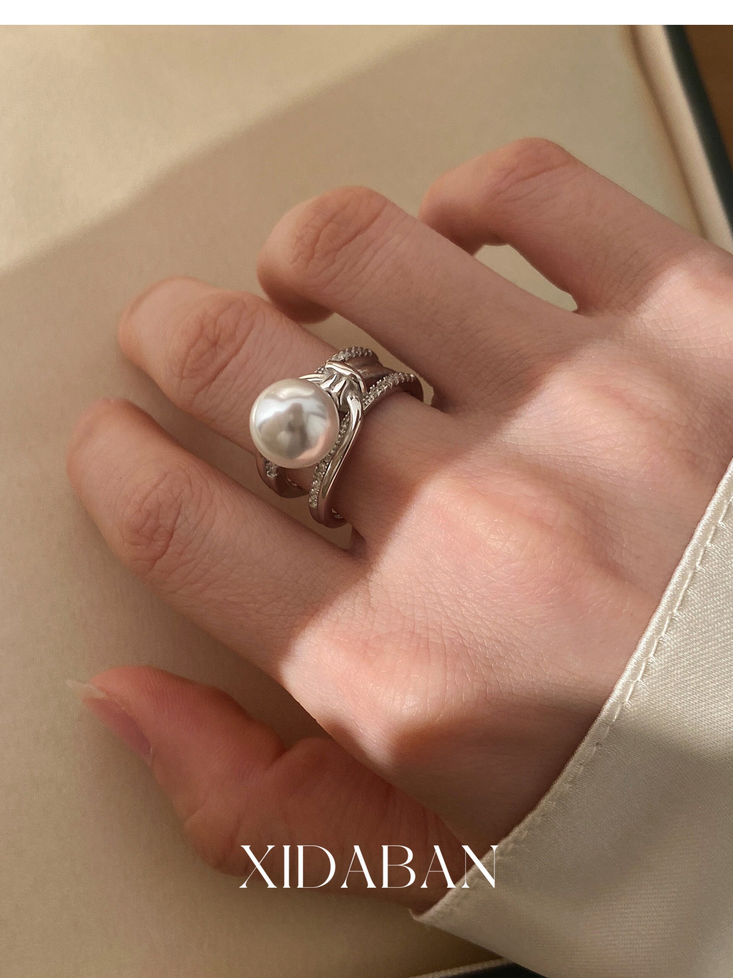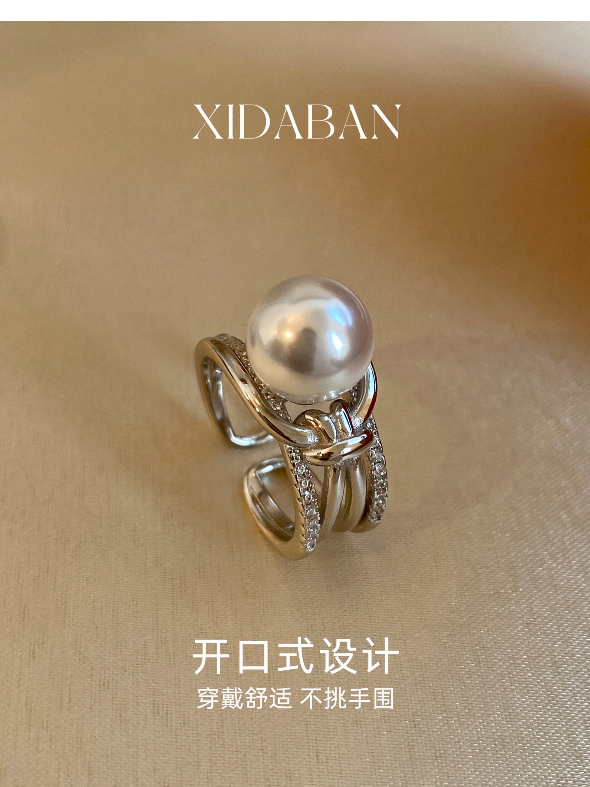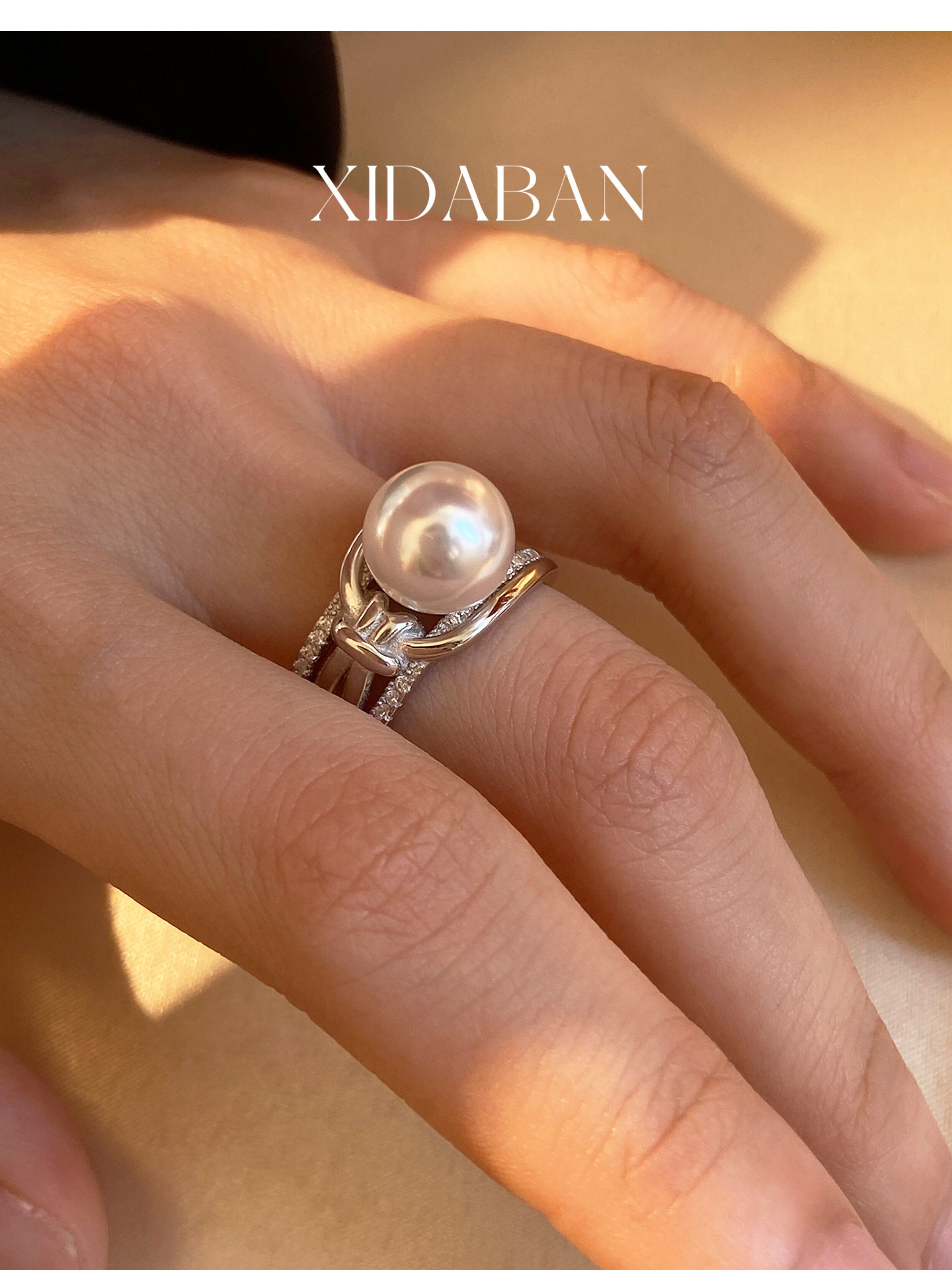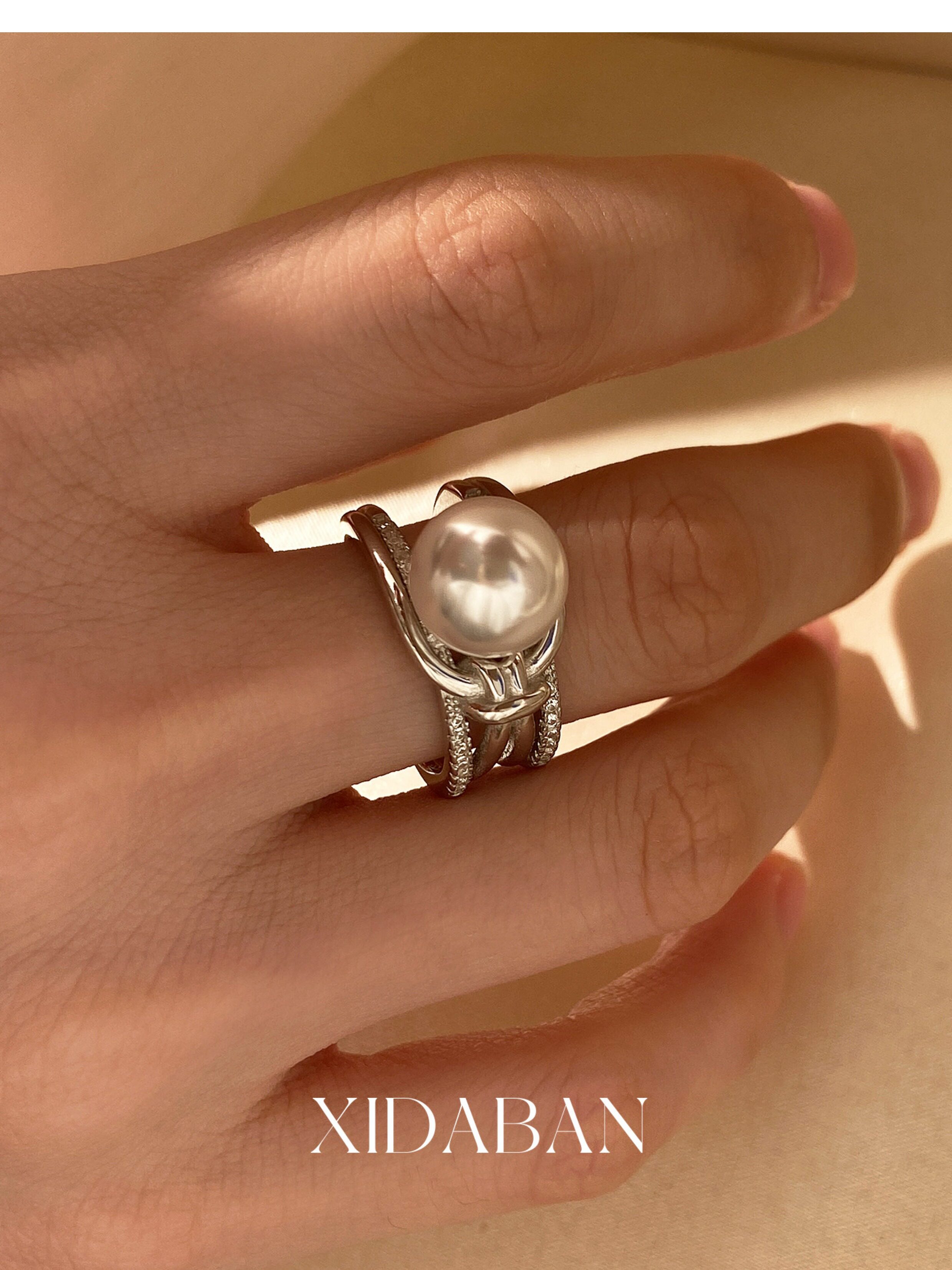 Xidaban Exquisite and Minimalist Ins Style S925 Sterling Silver Pearl Ring for Women, Light Luxury Niche Design Open Ring
