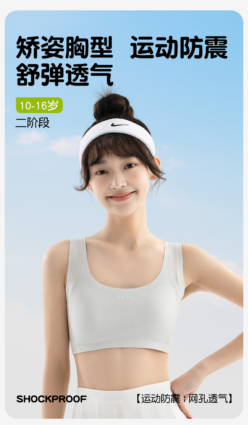 Underwear for Students, Junior High School Girls, High School Girls, Development Period Girls, Sports Shock-Proof Bras, Adolescent Girls' Vests, Seamless