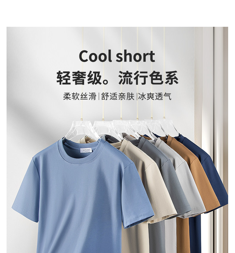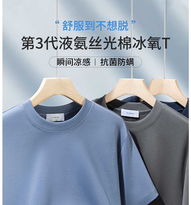 【Liquid Ammonia Ice Oxygen Bar】 Mercerized Cotton Short-Sleeve T-Shirt for Men 2025 Summer Cool Feeling Half-Sleeve Ice Silk Pure White Loose Fit