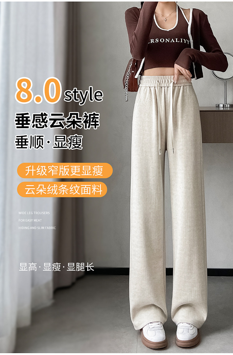 Narrow Wide-Leg Pants for Women, Autumn and Winter 2025 New Style, Petite, Slimming, Soft and Fluffy Cloud Pants, Drapey Straight-Leg Casual Pants