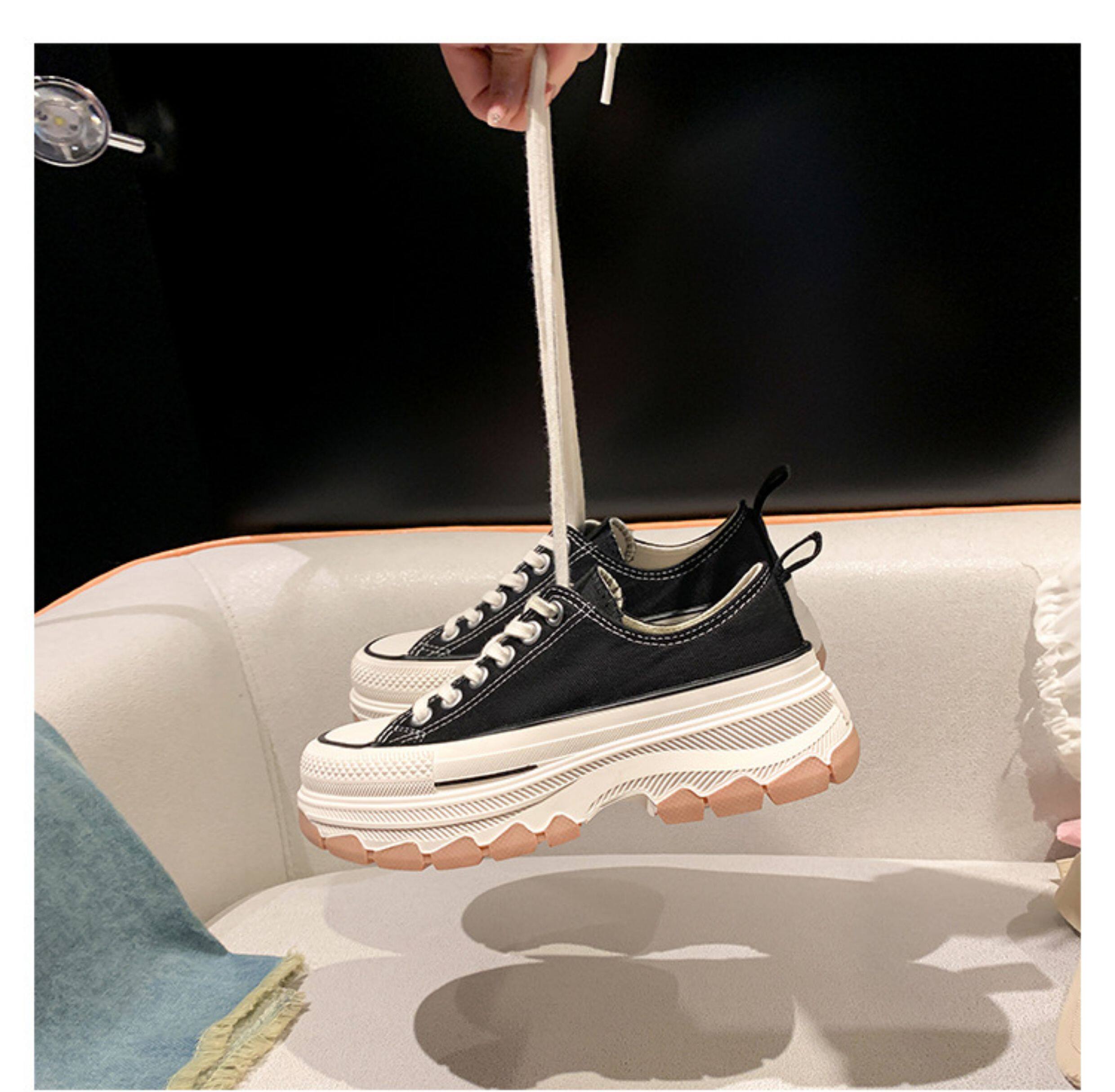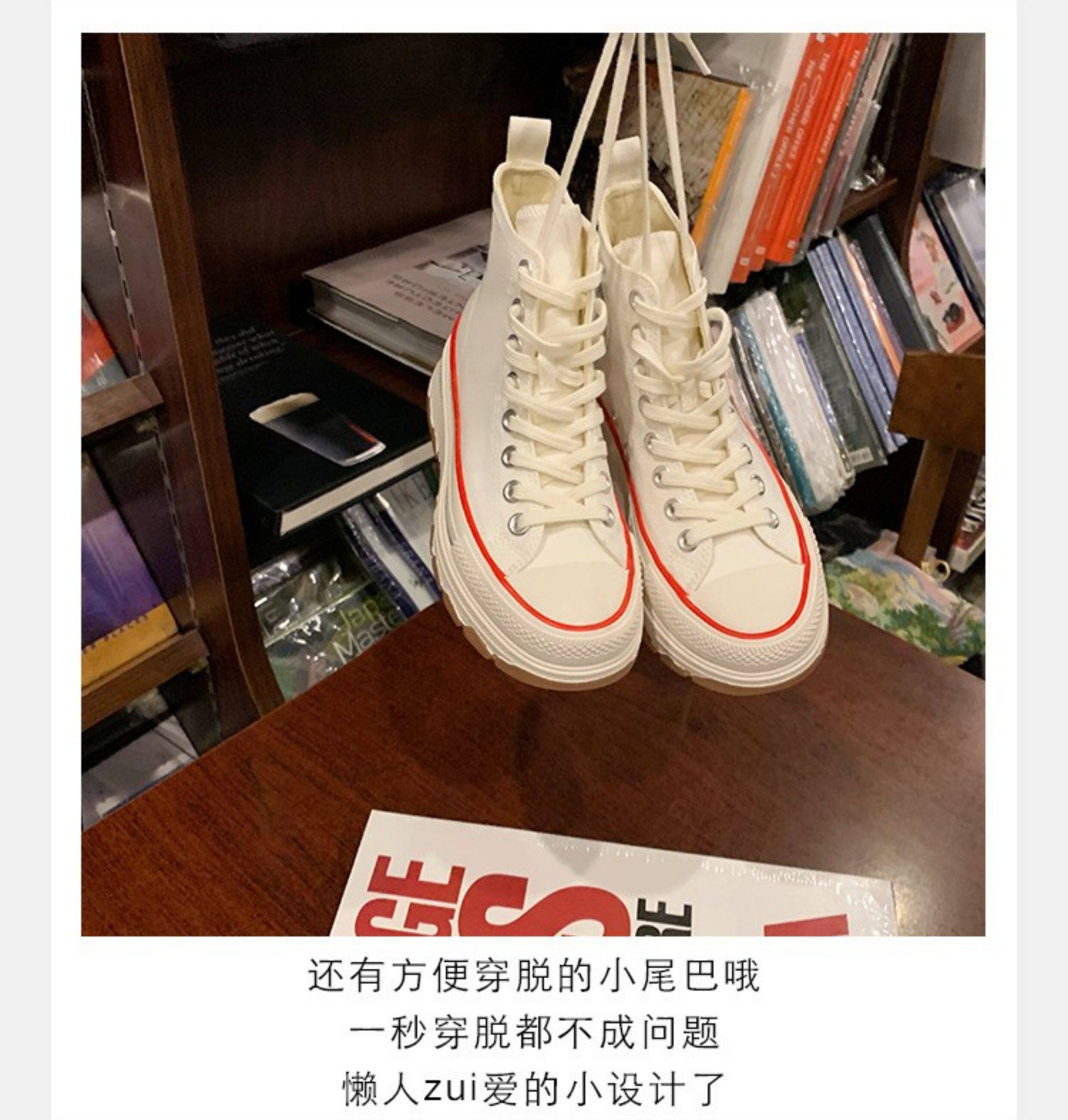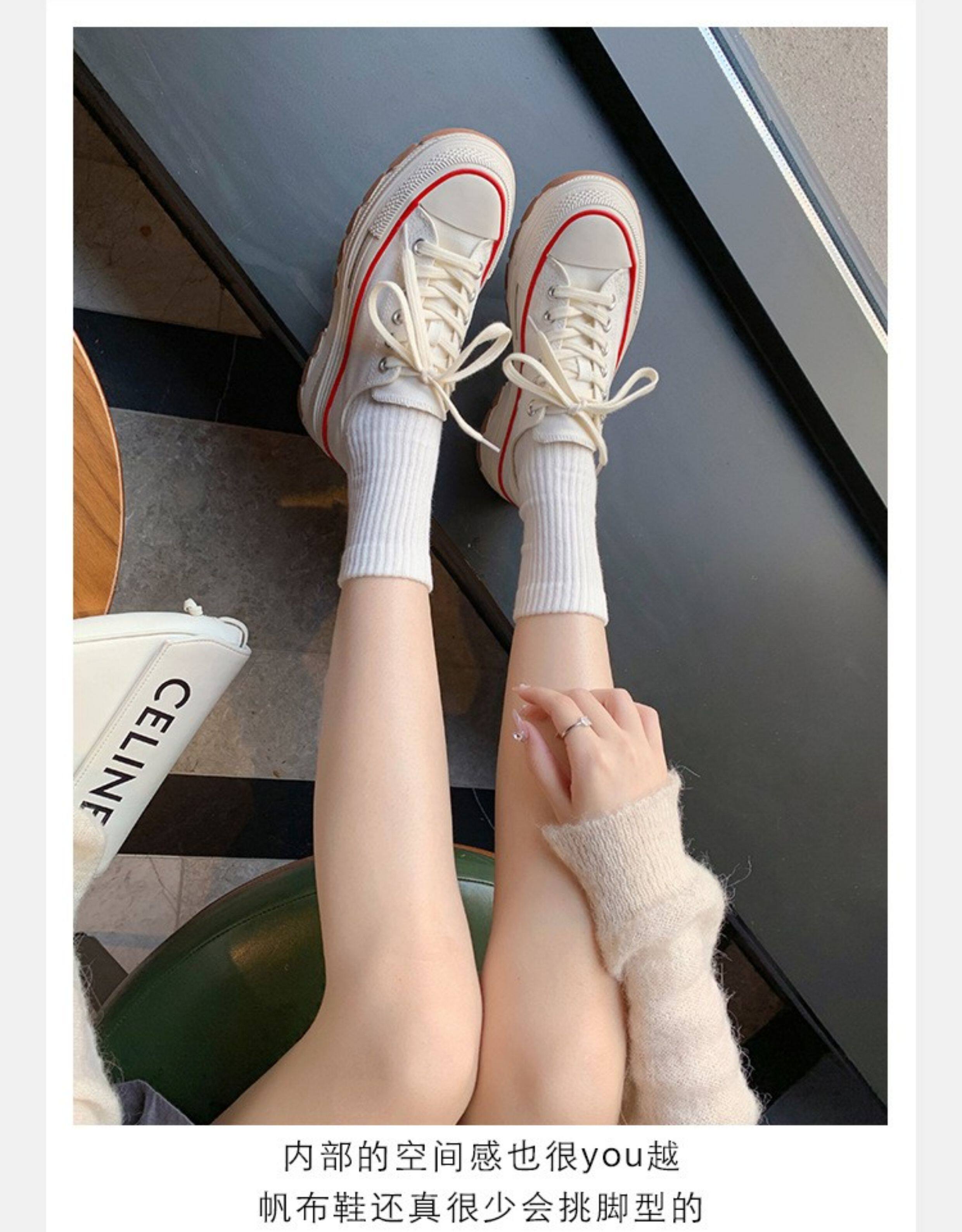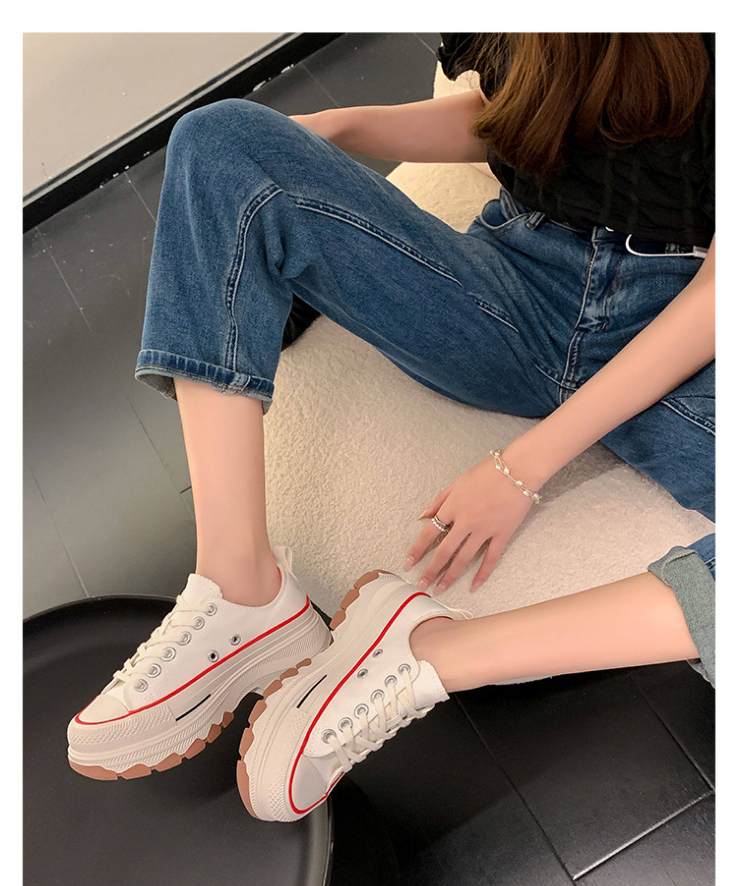 Women's Thick-Soled Canvas Shoes 2025 Spring New Style Height-Increasing Versatile Casual Platform Sneakers White Shoes