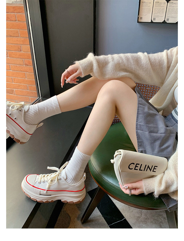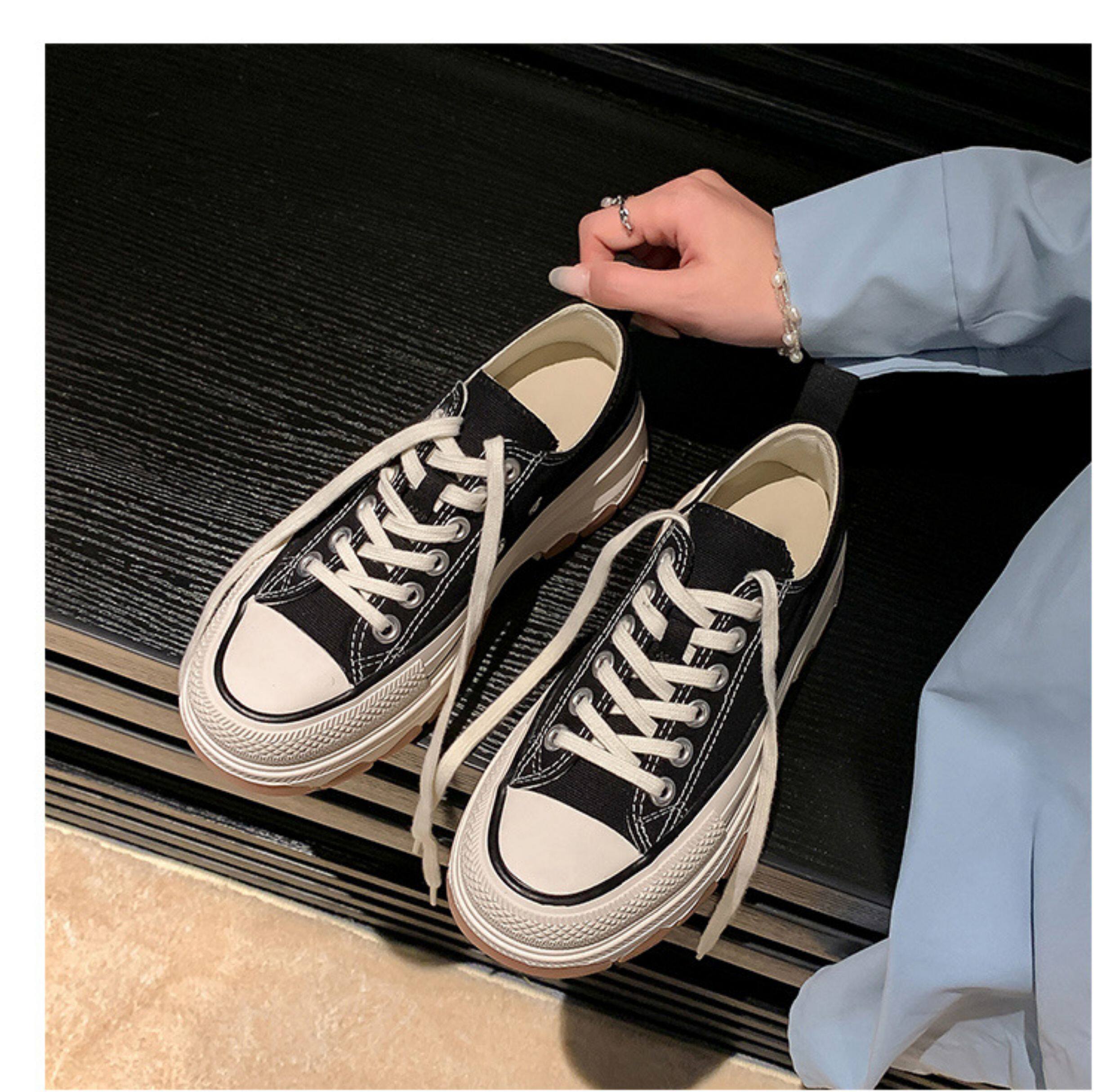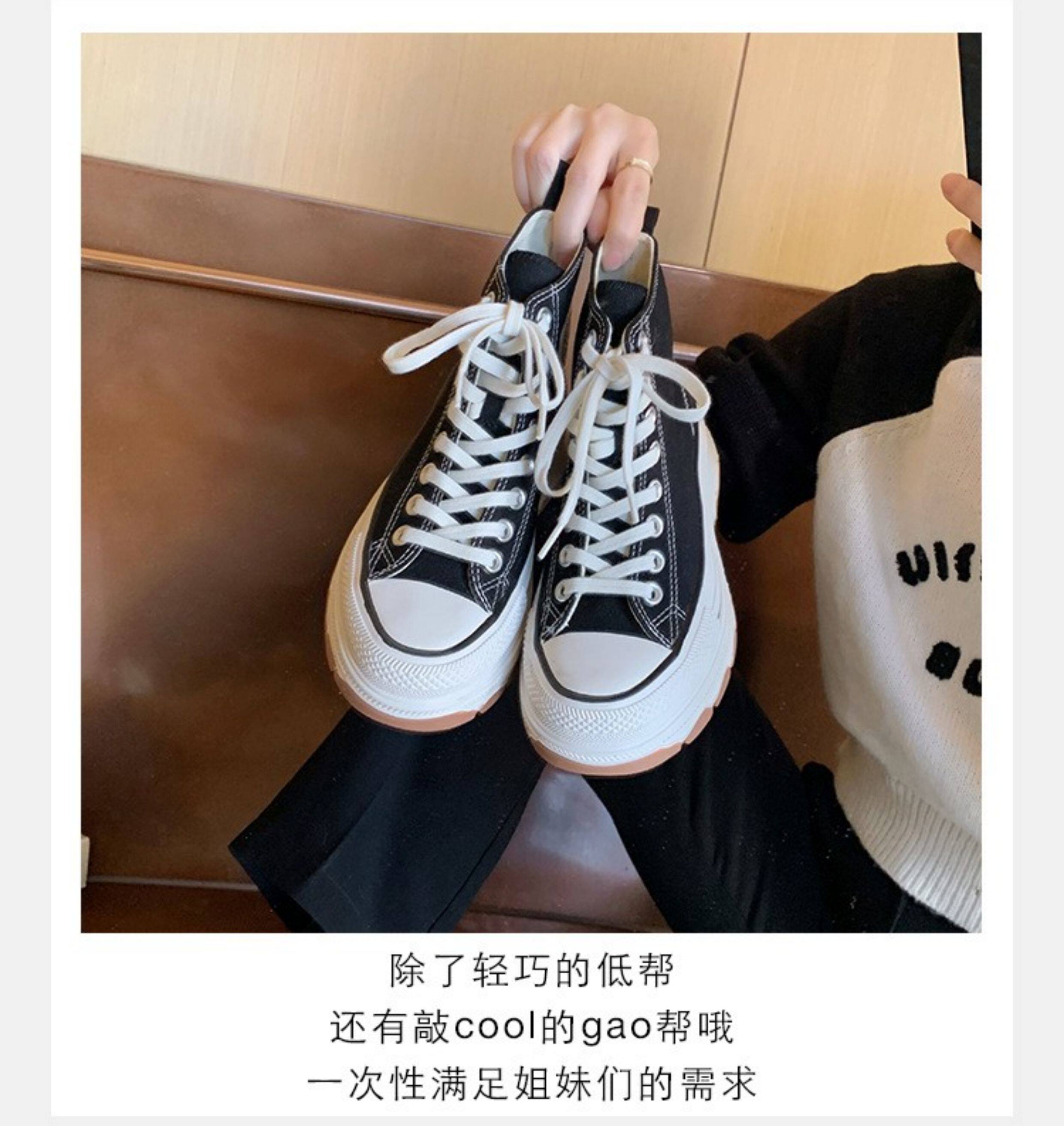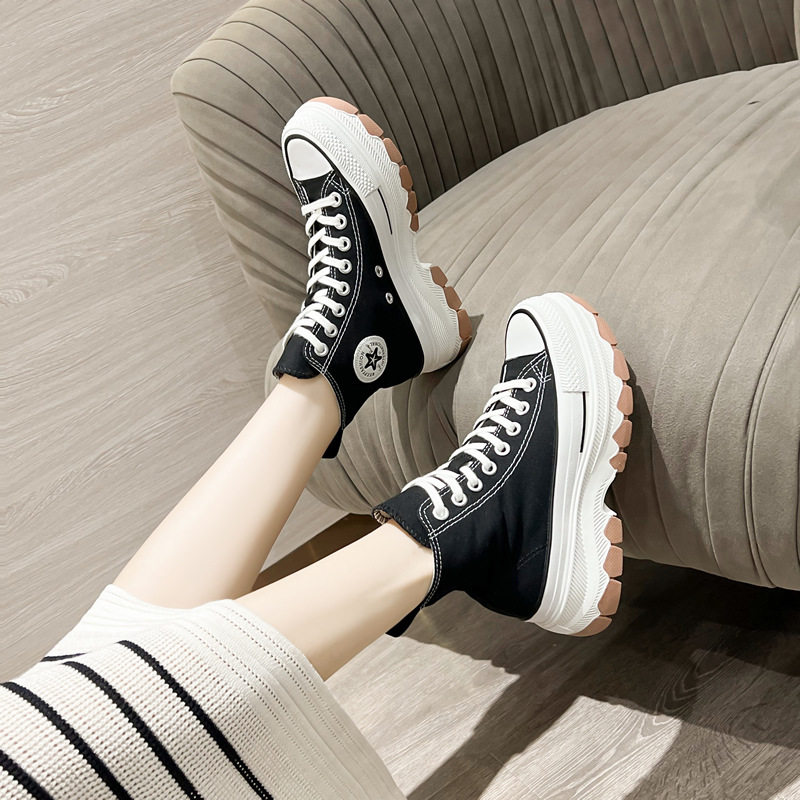 Women's Thick-Soled Canvas Shoes 2025 Spring New Style Height-Increasing Versatile Casual Platform Sneakers White Shoes
