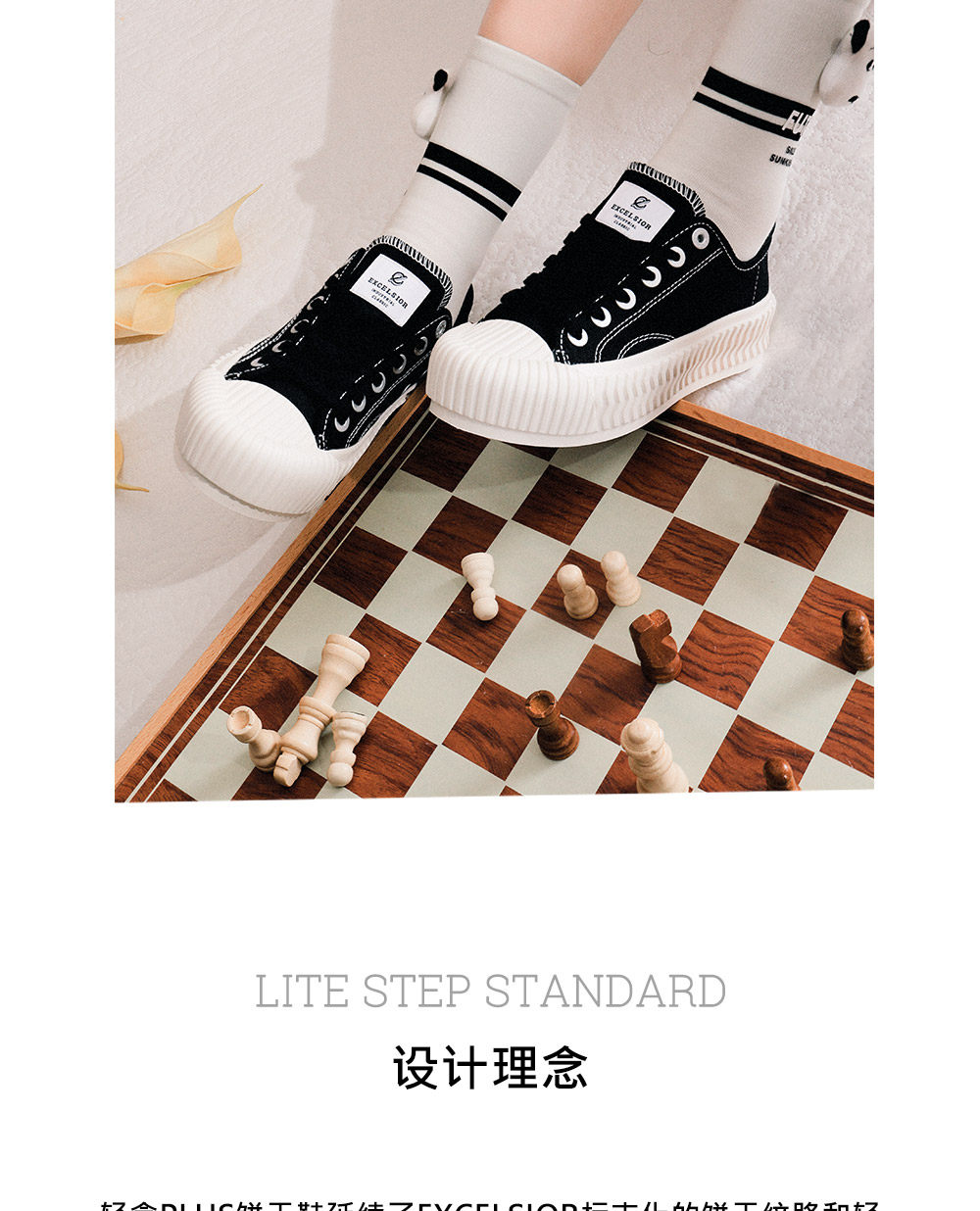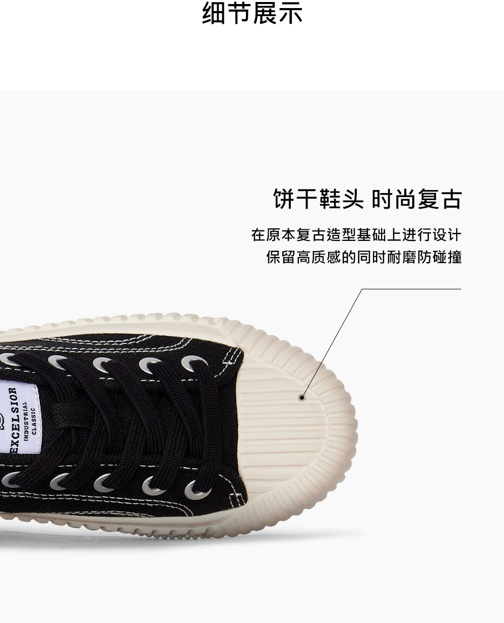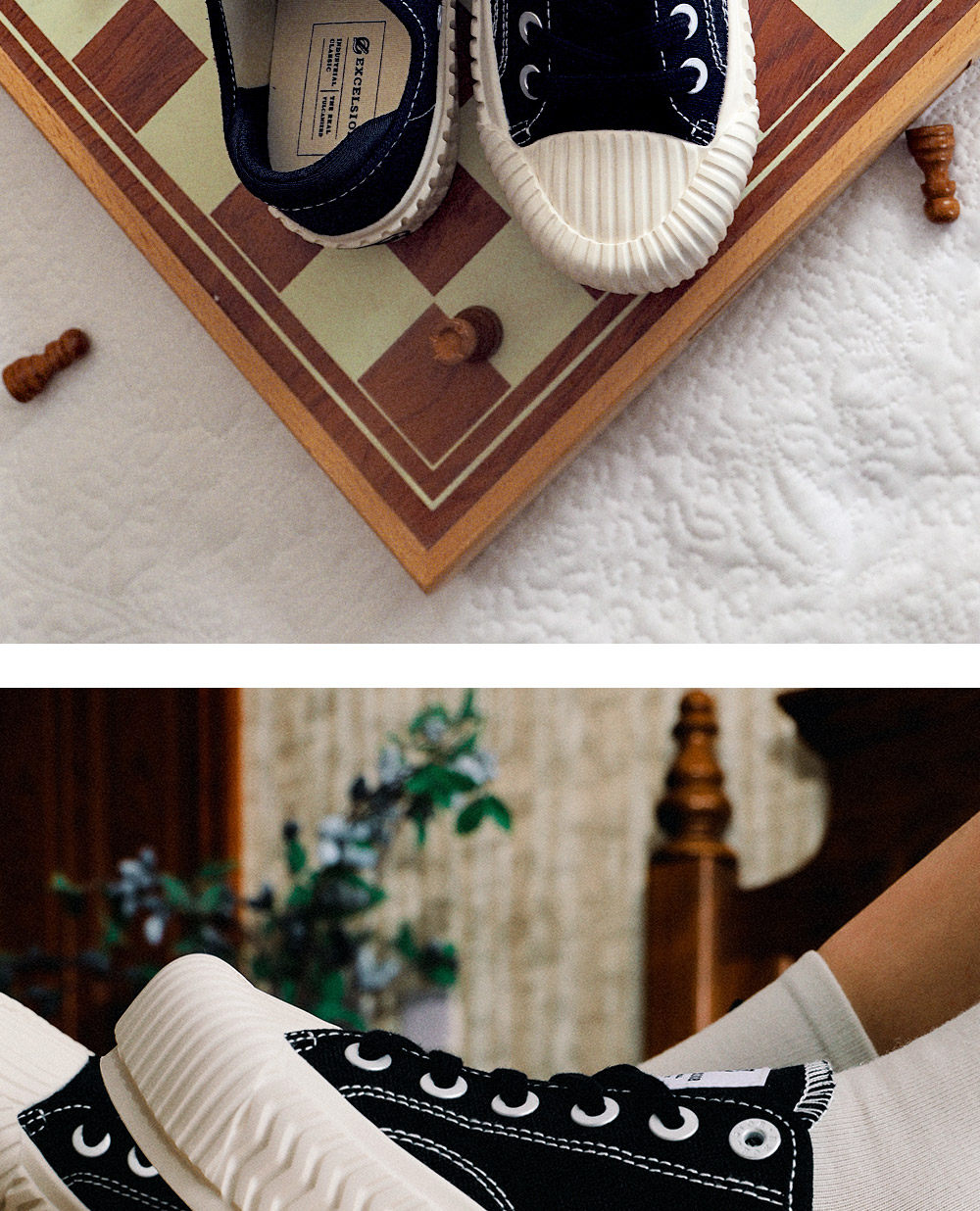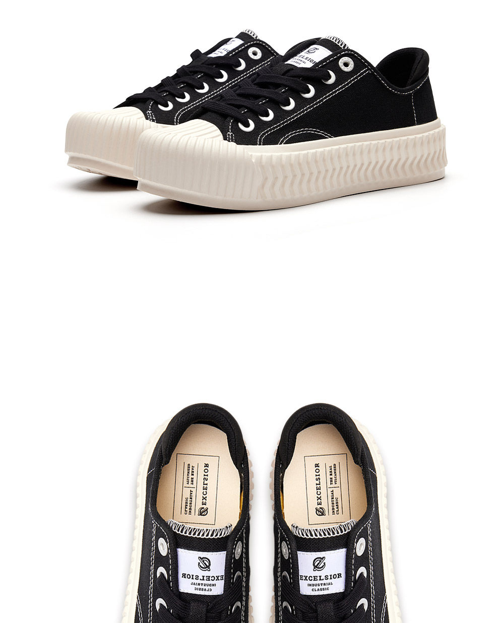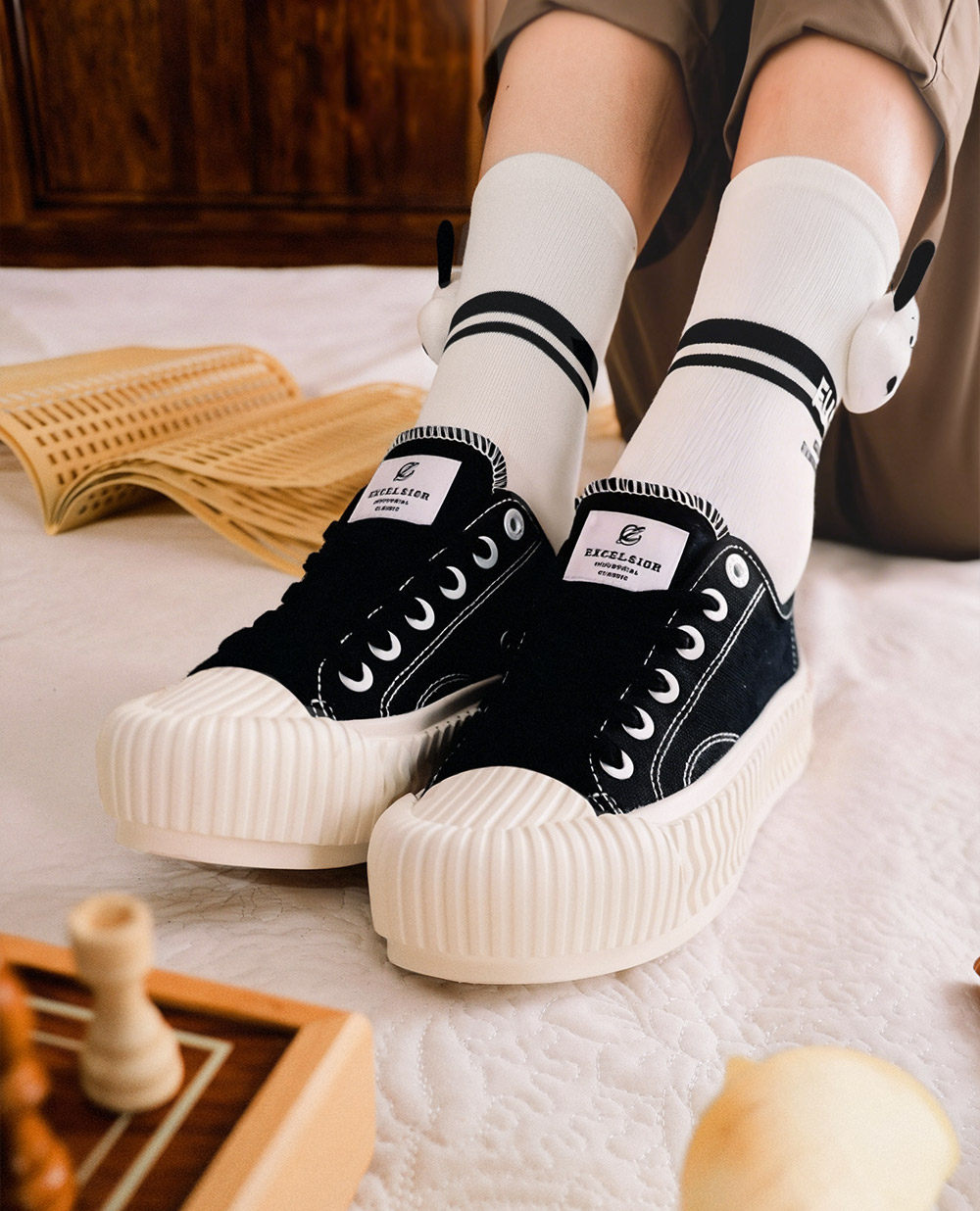 【Light Food Series】Excelsior Biscuit Shoes, Black Women's Casual Height-Increasing Sneakers, Men's Thick-Soled Canvas Shoes