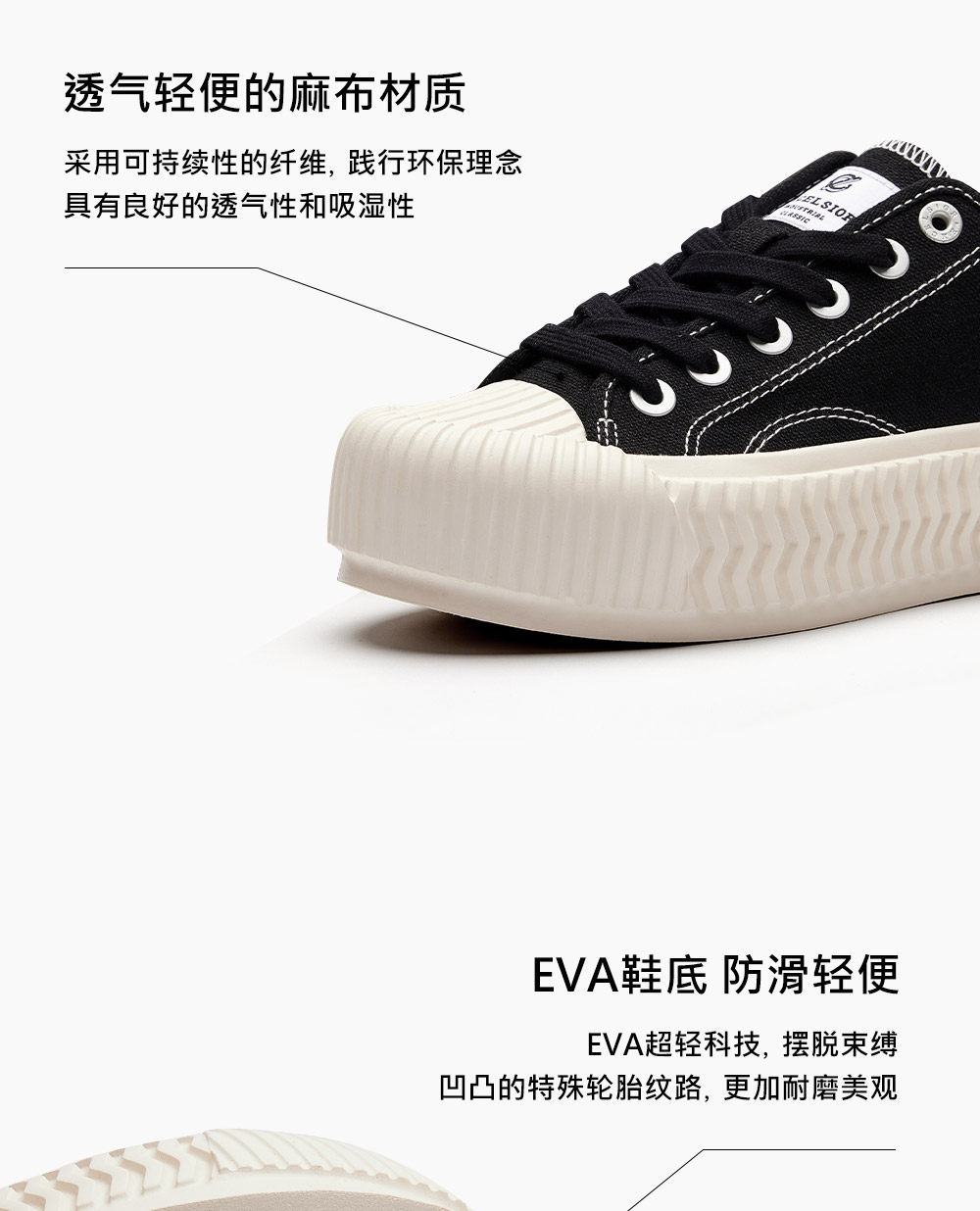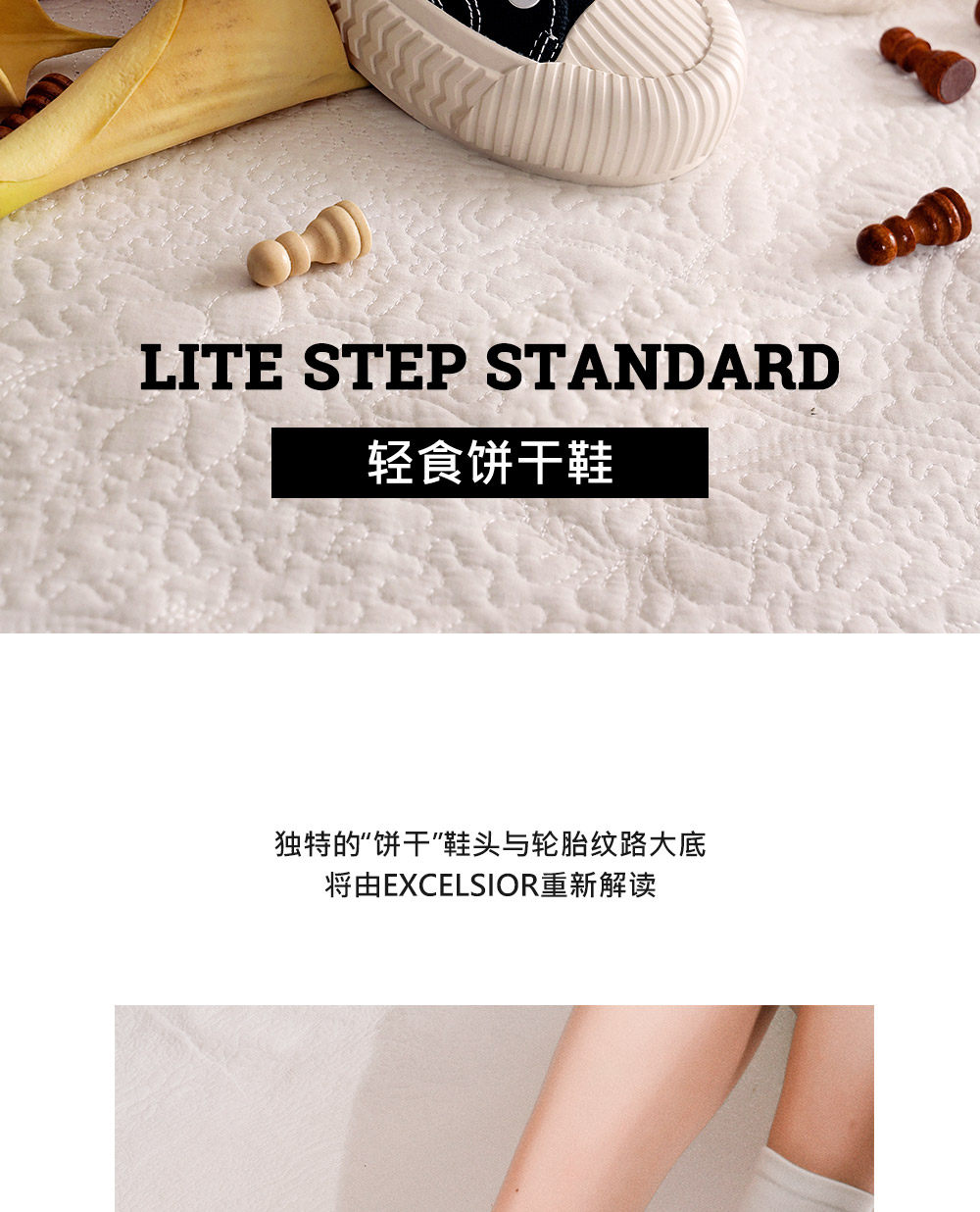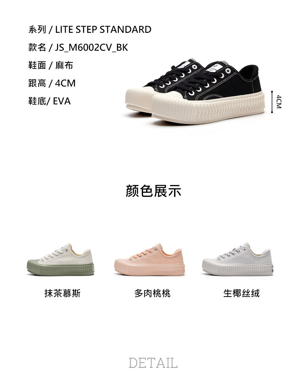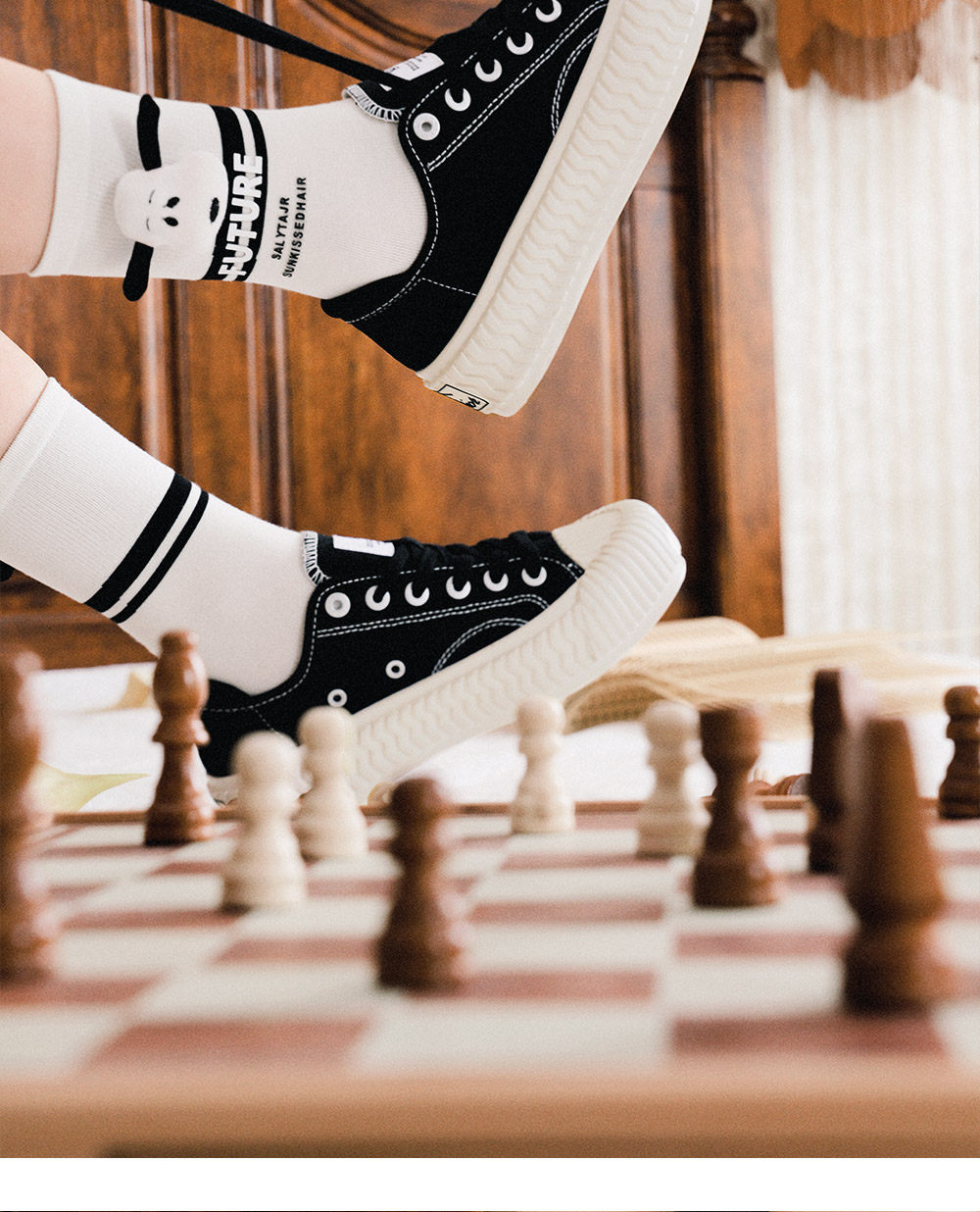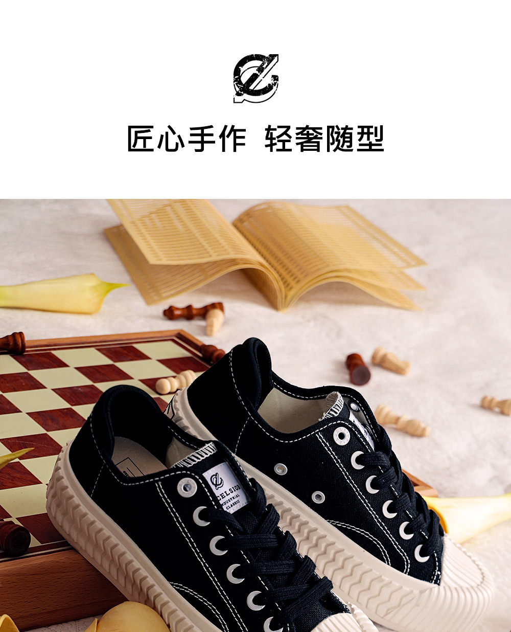 【Light Food Series】Excelsior Biscuit Shoes, Black Women's Casual Height-Increasing Sneakers, Men's Thick-Soled Canvas Shoes