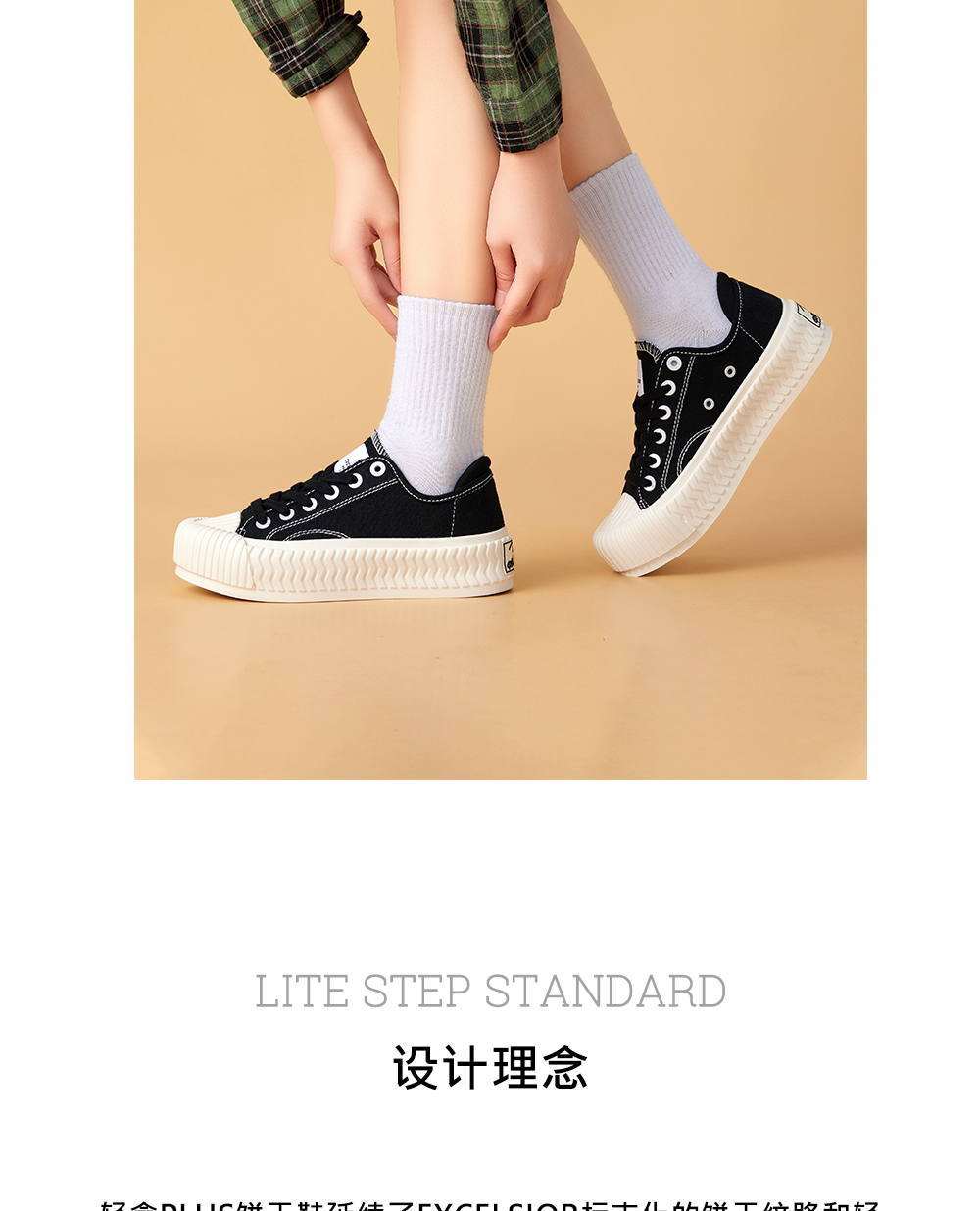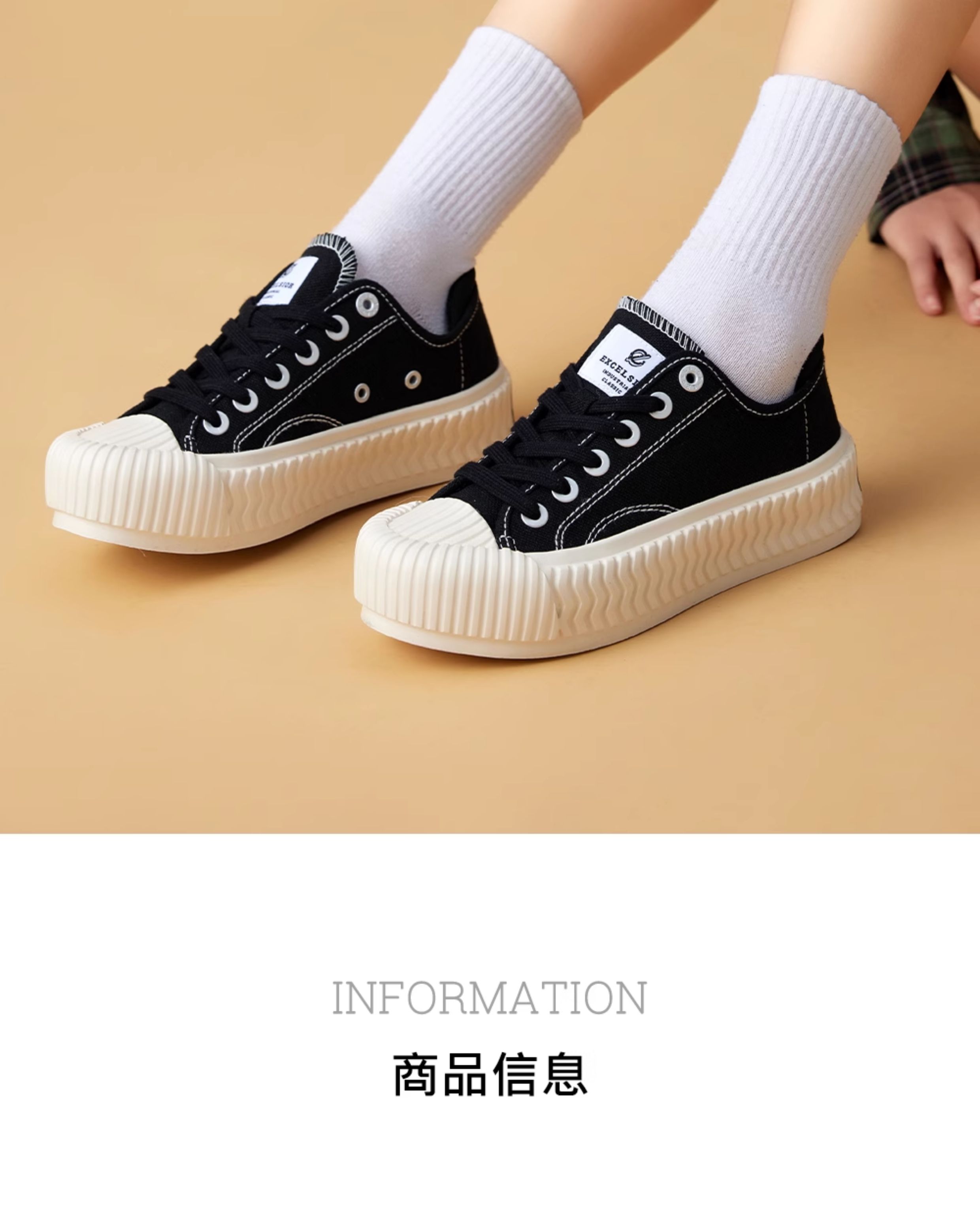 [Light food series] excelsior biscuit shoes black women's shoes Casual heightening board shoes men's Thick Sole canvas shoes