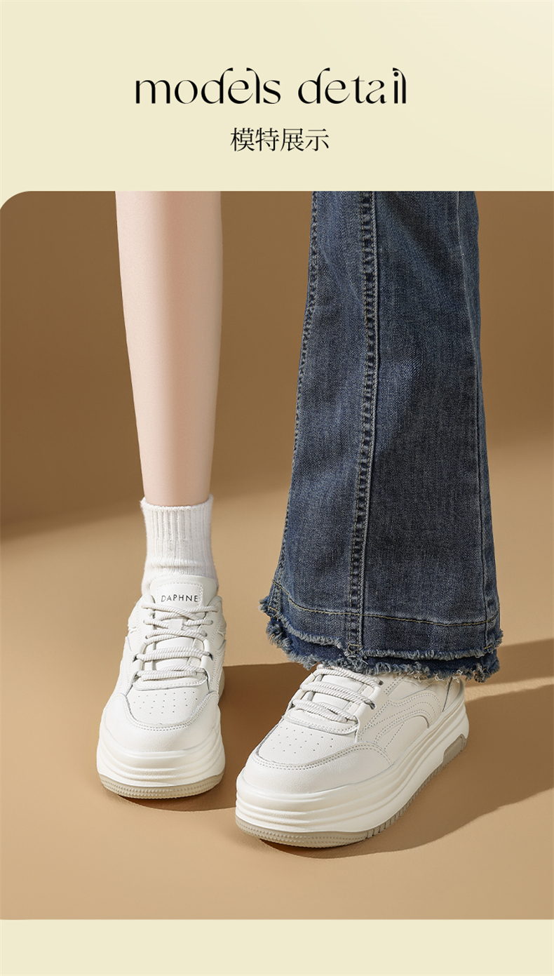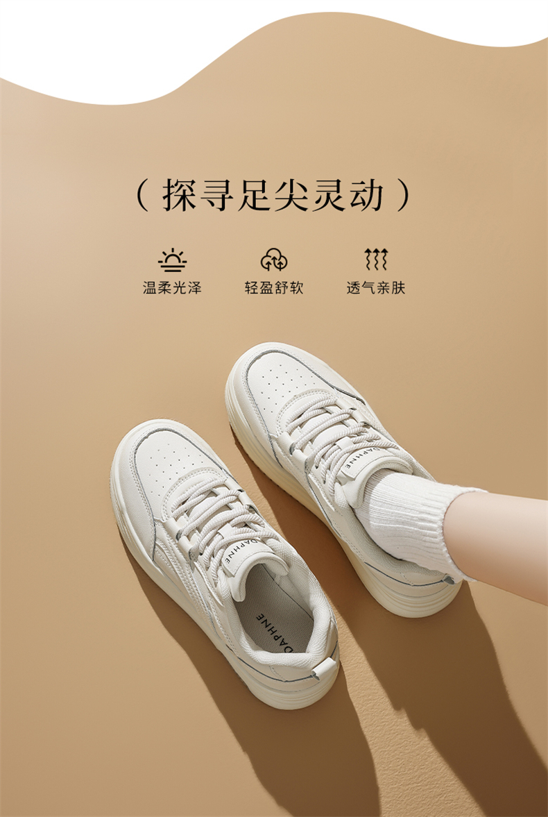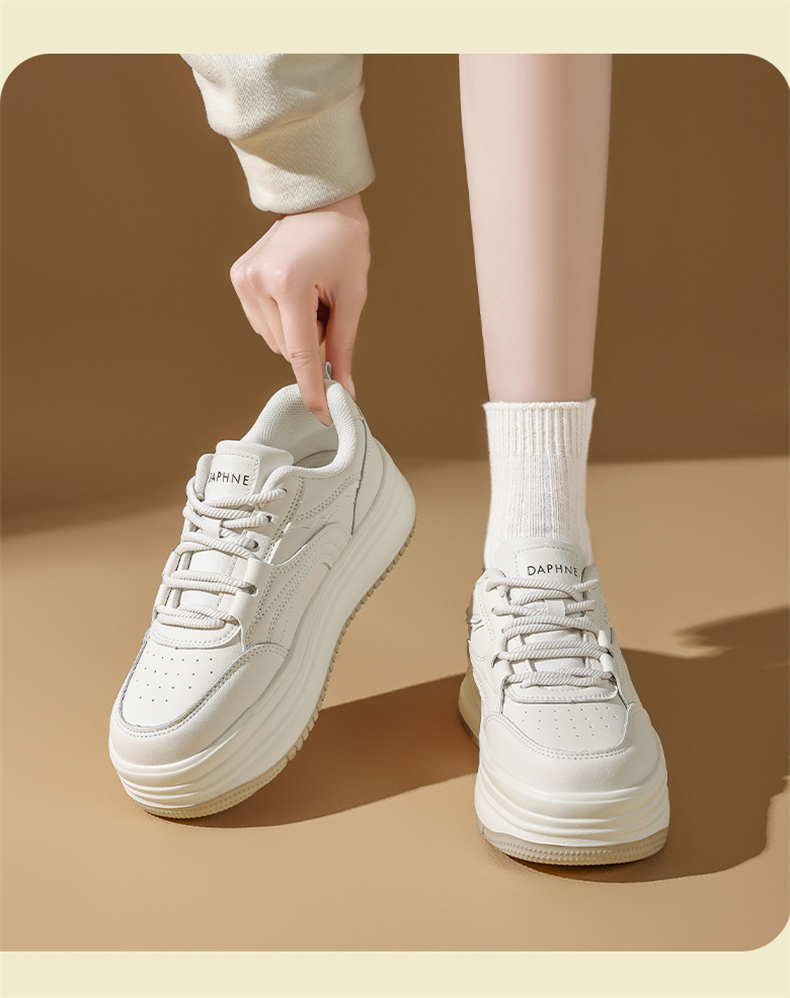 Dafu Thick-Soled White Sneakers for Women, Genuine Leather, New Winter Style, Fleece-Lined Cotton Shoes, Versatile Height-Increasing Platform Shoes for Students, 2025