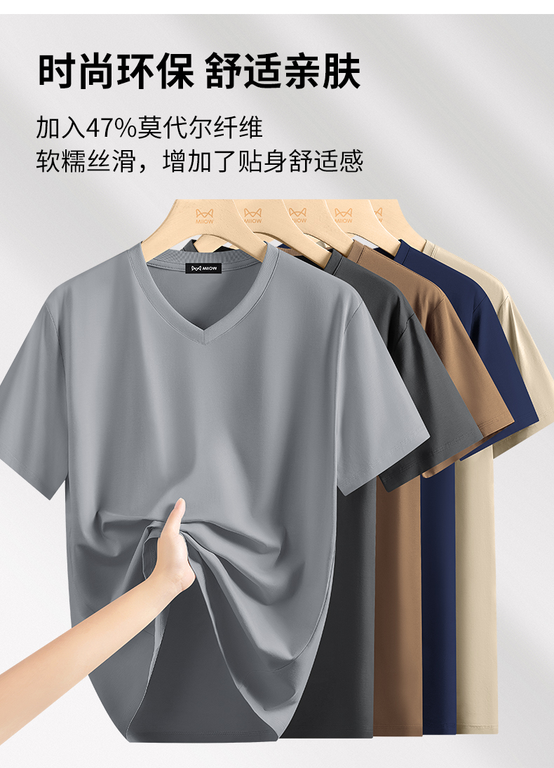 Catman Silky Modal V-Neck High-End Short-Sleeve T-Shirt for Men 2025 New Summer Base Layer Thin Top