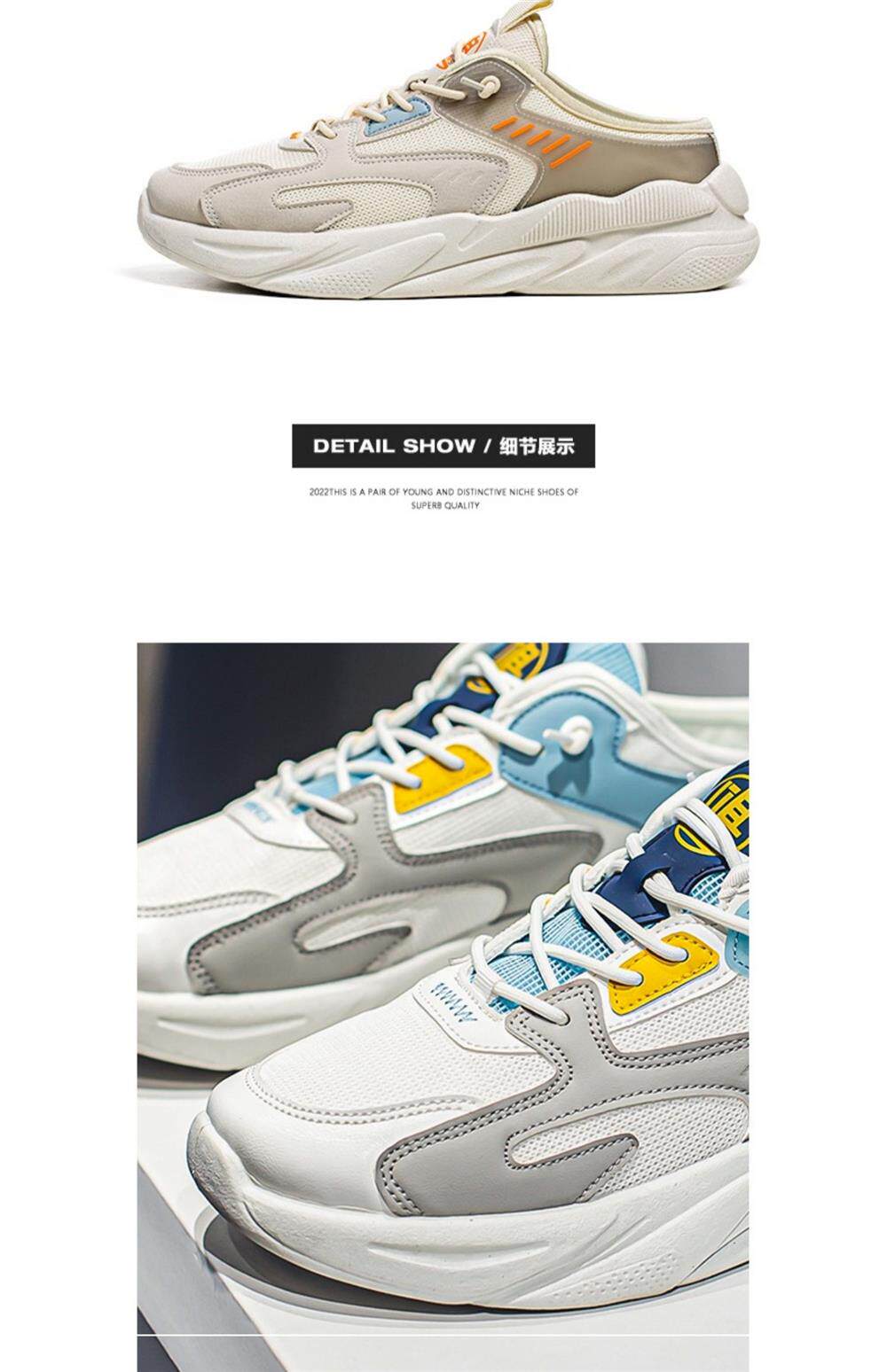 Men's Half-Slip Canvas Shoes, Trendy Breathable Mesh Slip-On Closed-Toe Slippers for Men, Open-Back Half-Slip Shoes for Outdoor Wear