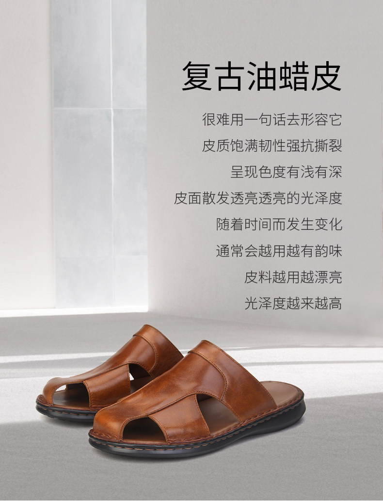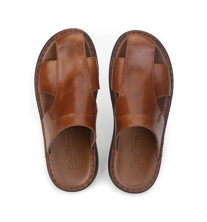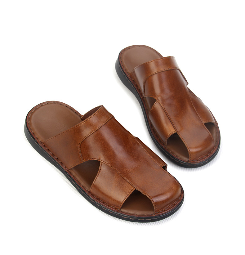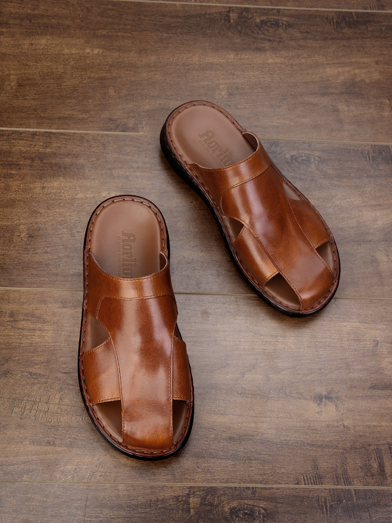 High-End Handmade Leather Sandals, Genuine First-Layer Cowhide, New Closed-Toe Sandals, Summer Men's Stitched Outerwear Leather Slippers