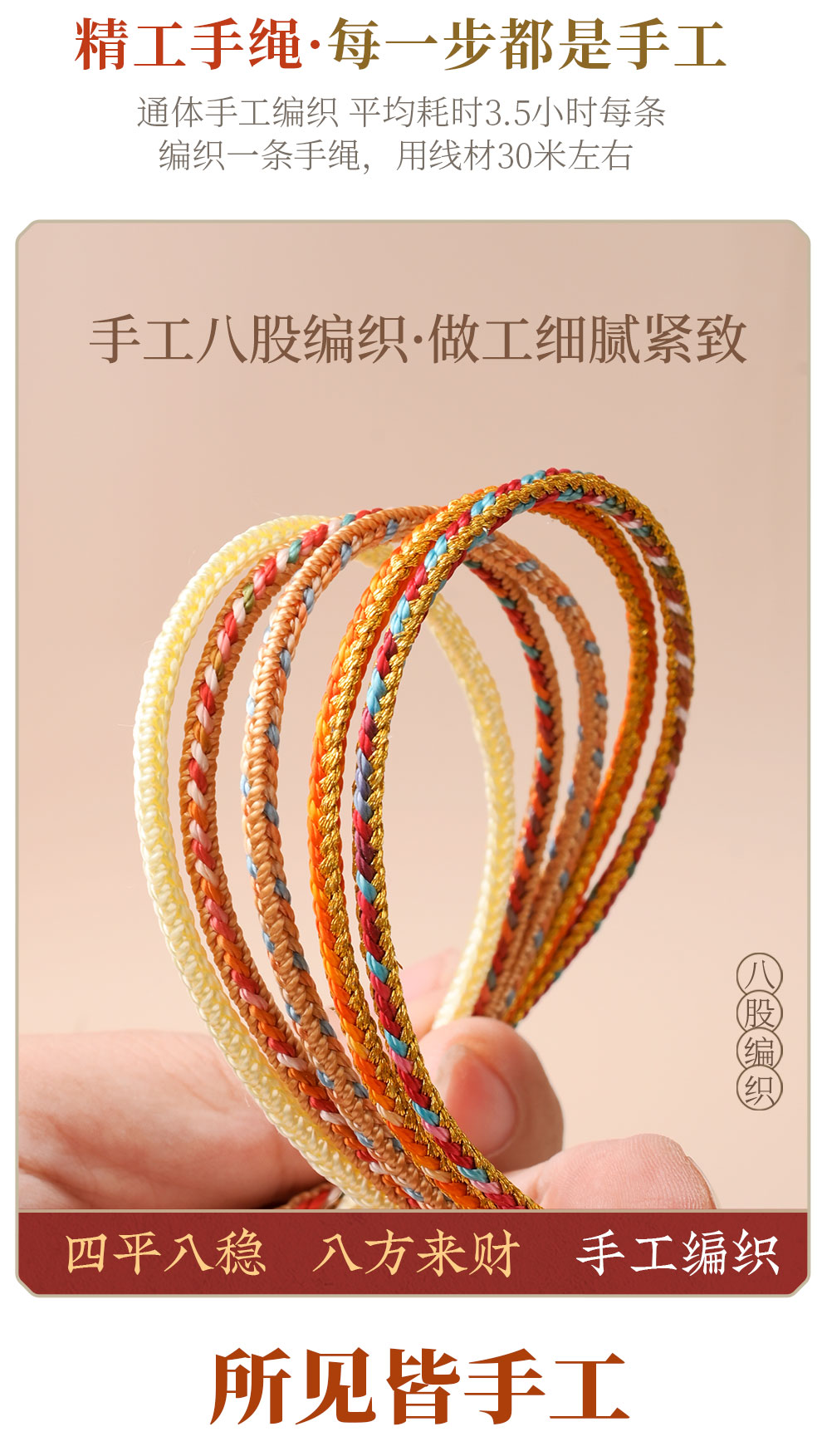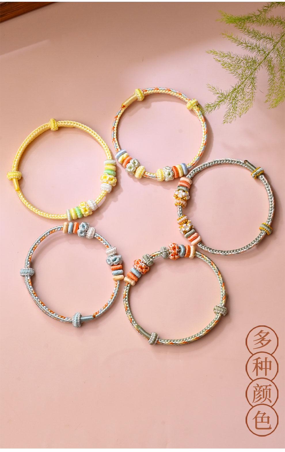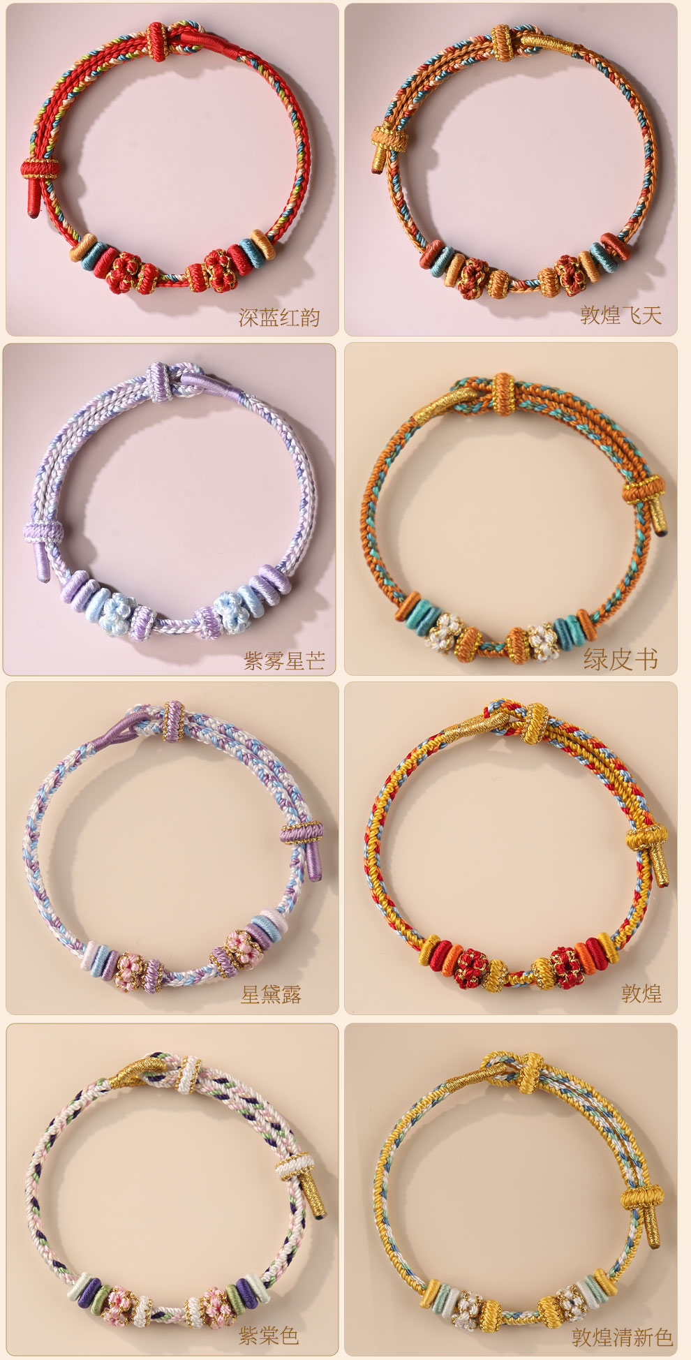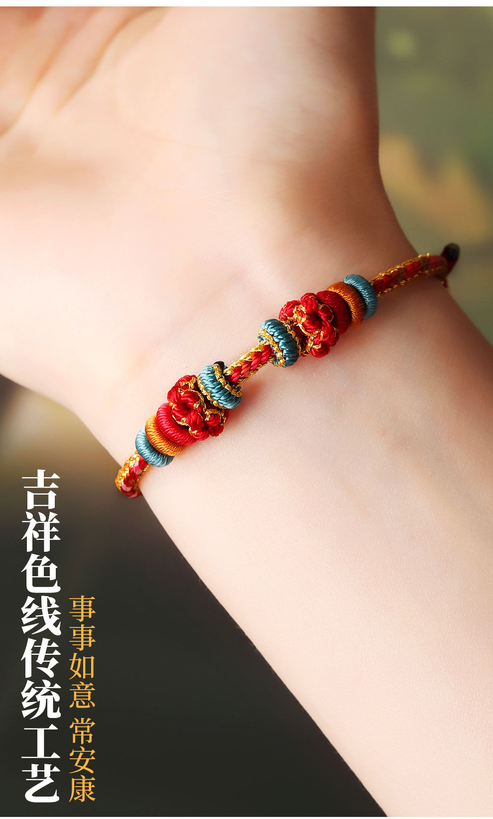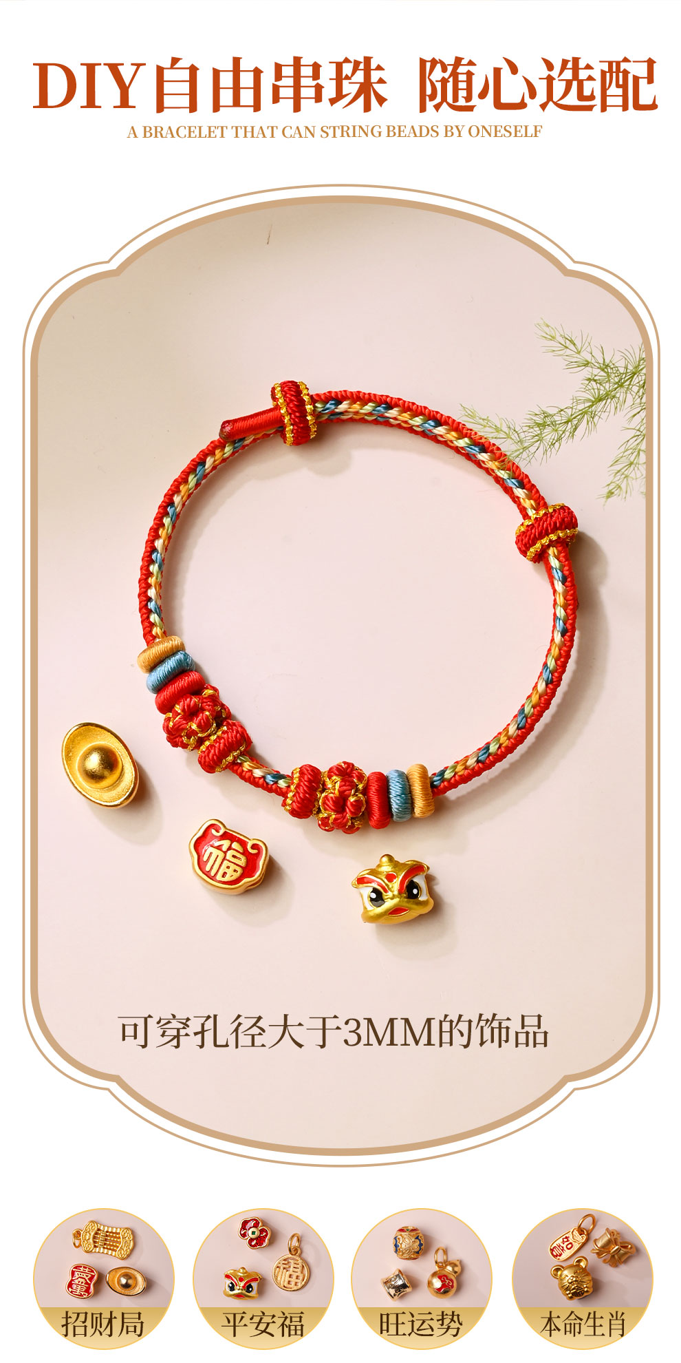 Finished DIY Bead-Wearable Bracelet, Hand-Woven Peach Blossom Braided Rope, Men's Gold Bead-Wearable Bracelet, Women's Red Rope Bracelet