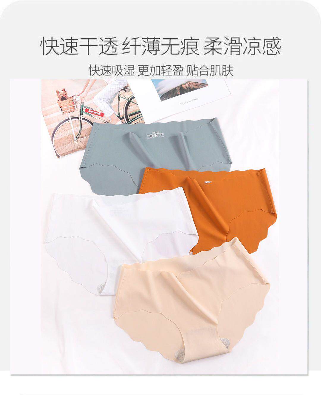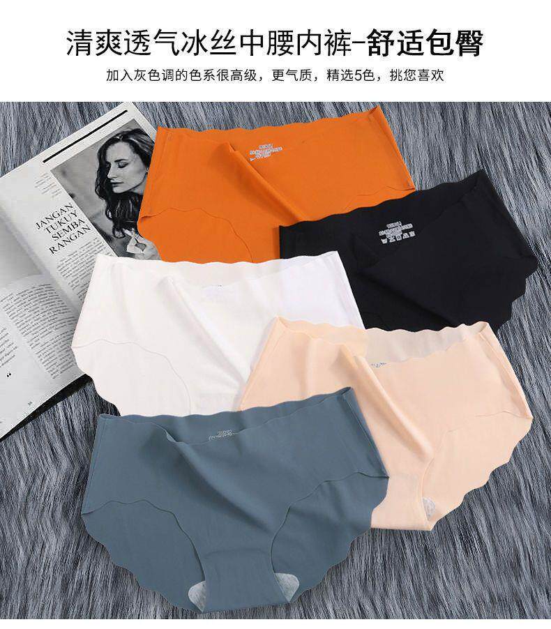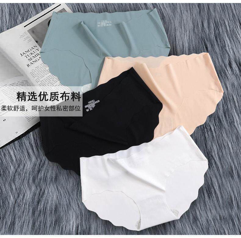 1-4 Pieces of Seamless Ice Silk Underwear for Women, Breathable Pure Cotton Crotch, Antibacterial Underwear, Mid-Waist Solid Color Triangle Shorts