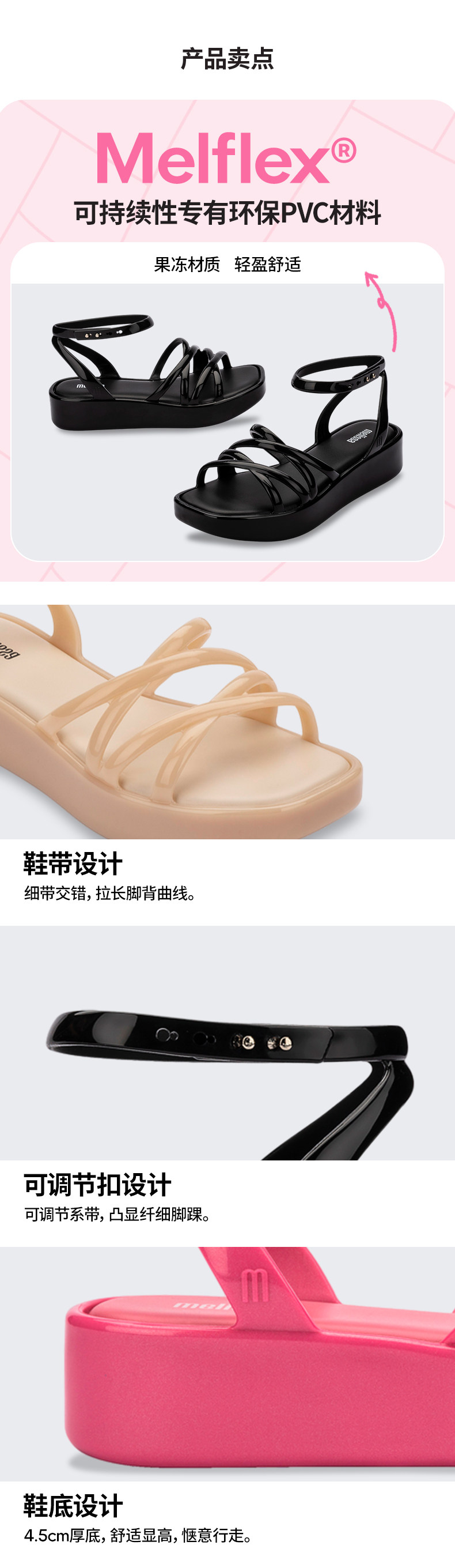 Melissa Melissa Autumn Women's Thin Strap Sandals Simple Fashion Casual Thick-Soled Shoes 33997