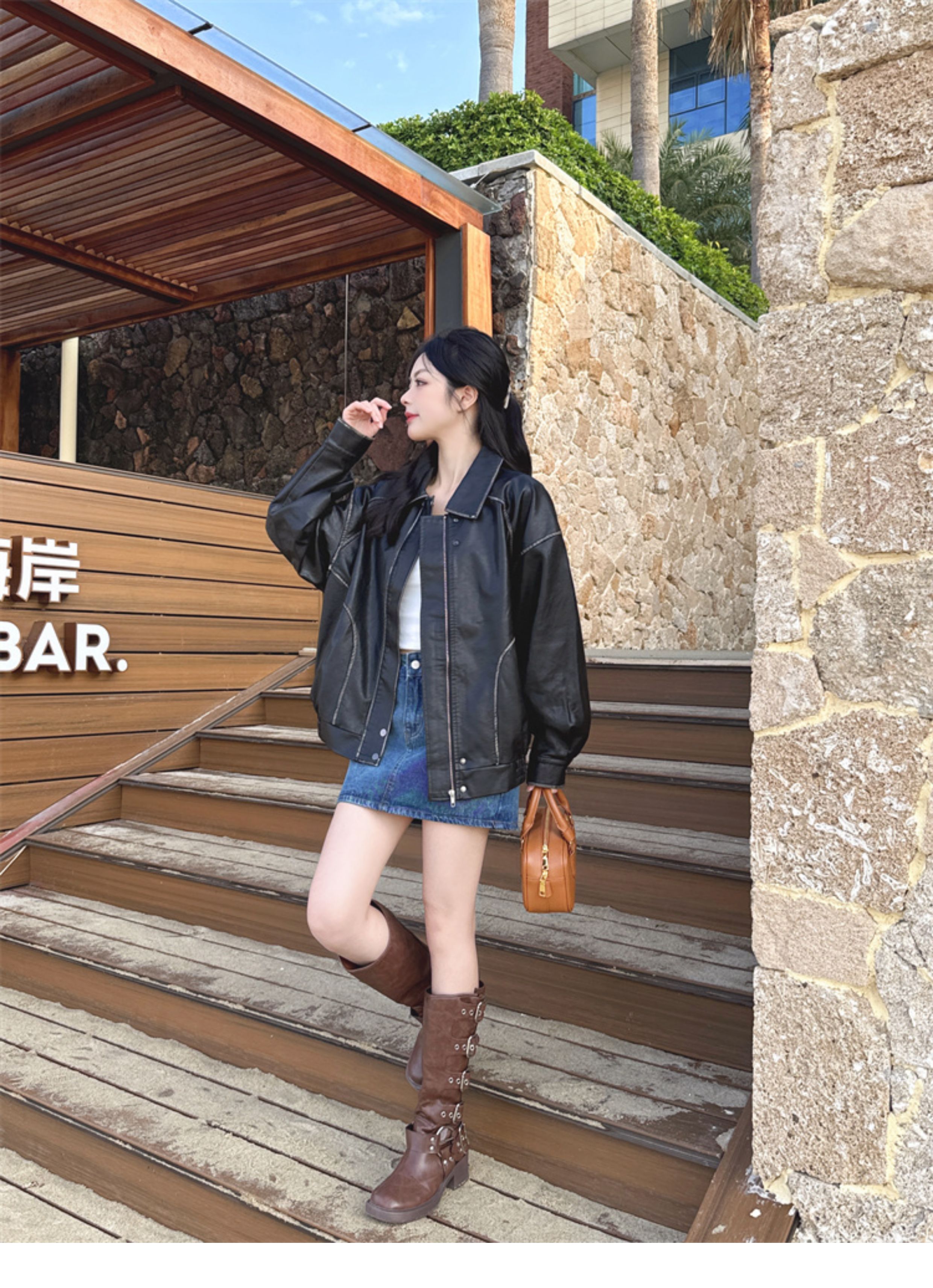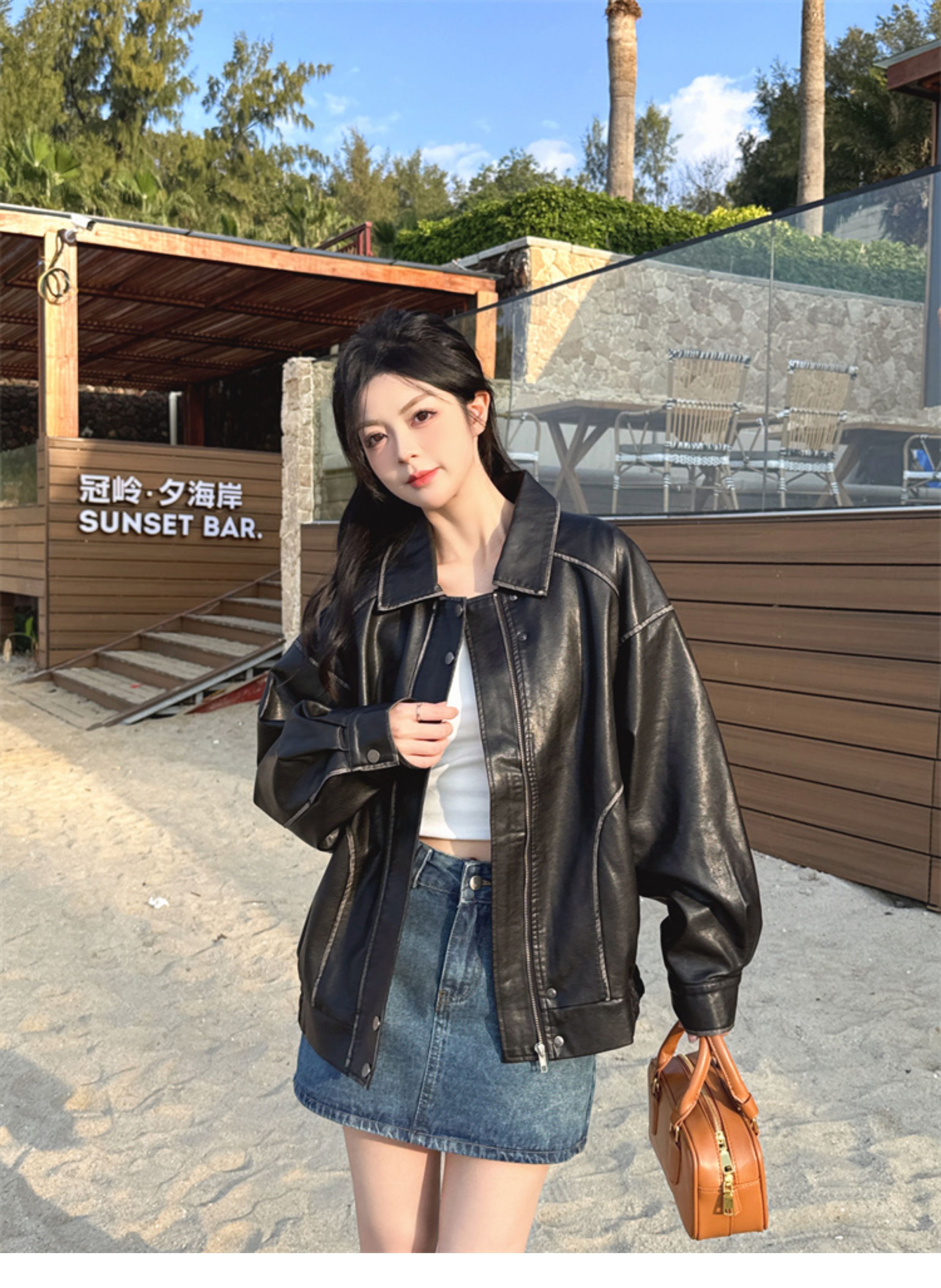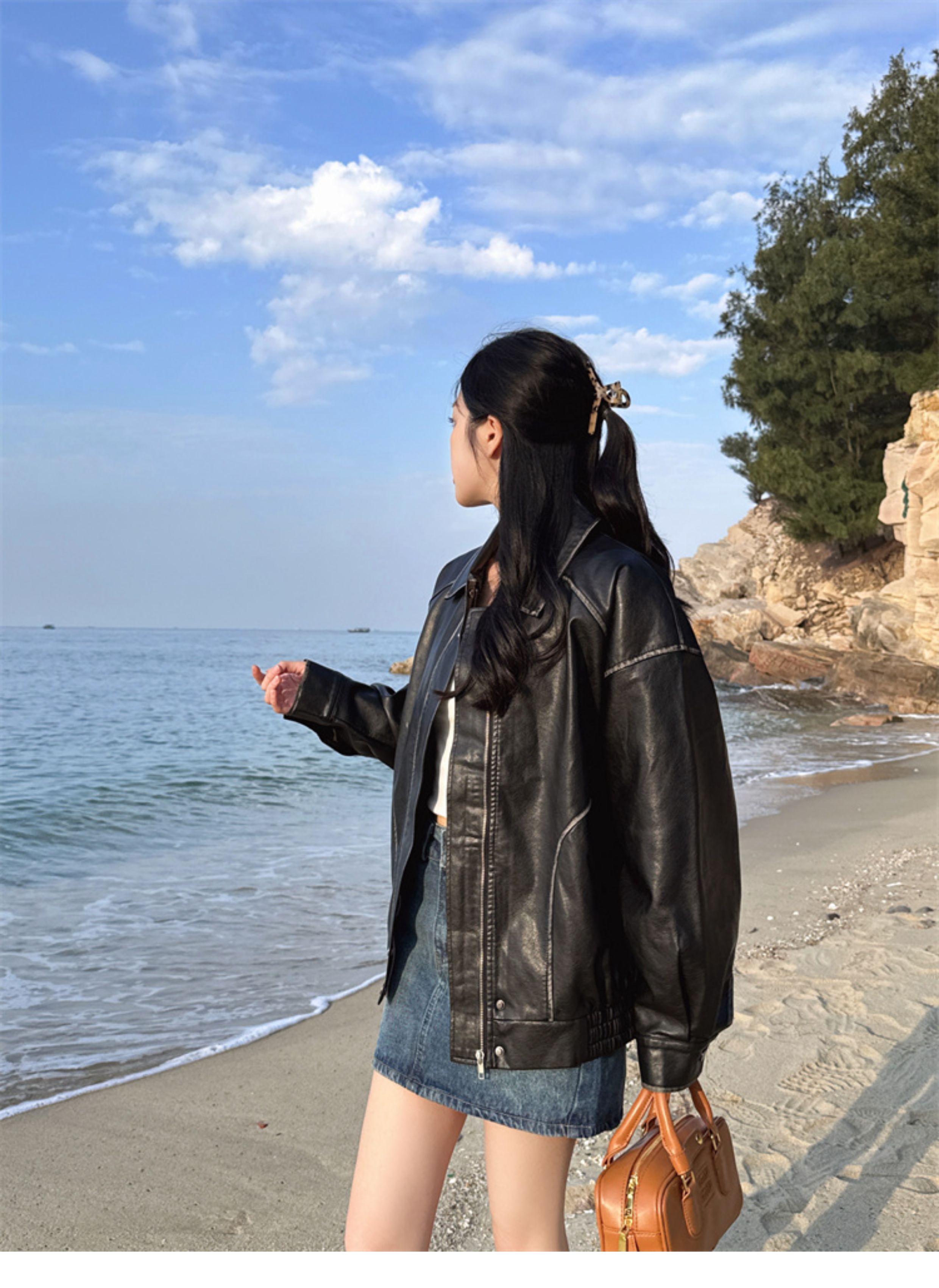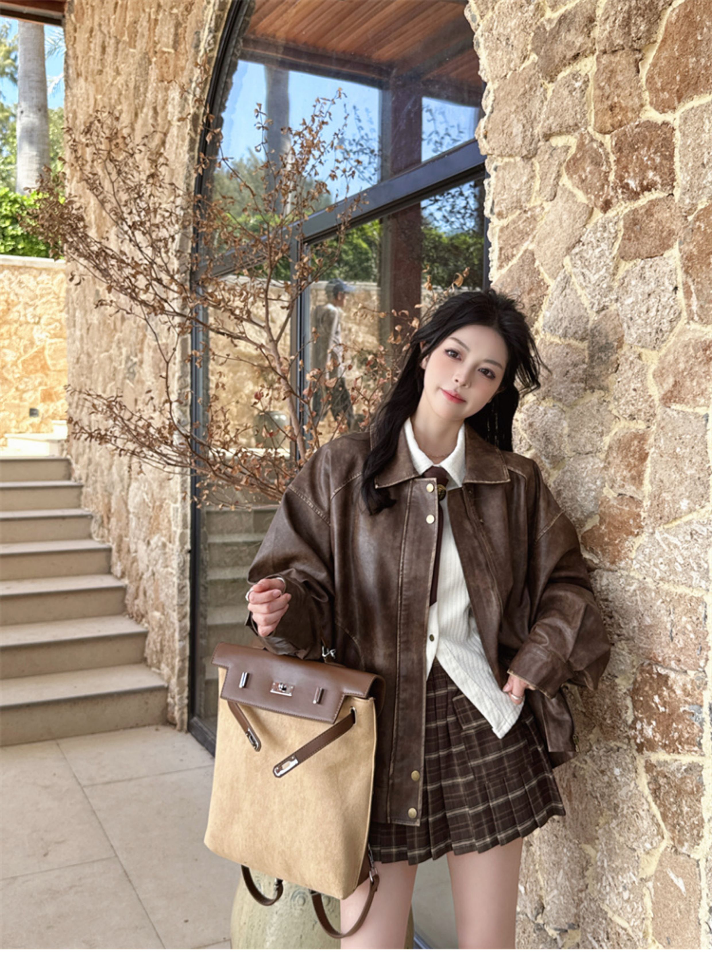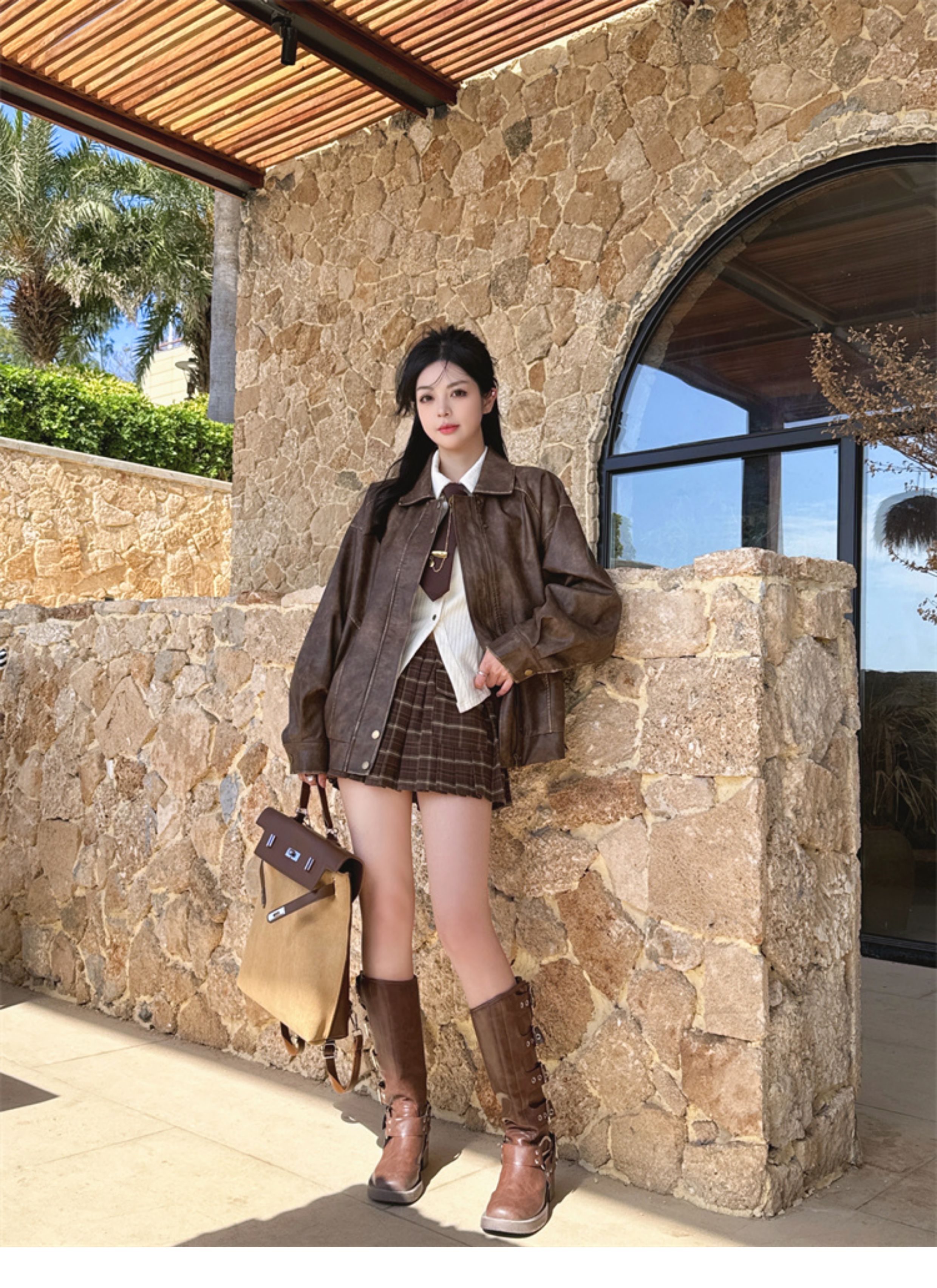 Brown Leather Jacket for Women, Spring and Autumn 2025 New Style, Pu Leather Jacket, American Retro Cool Style, Same Style as Zhong Chuxi