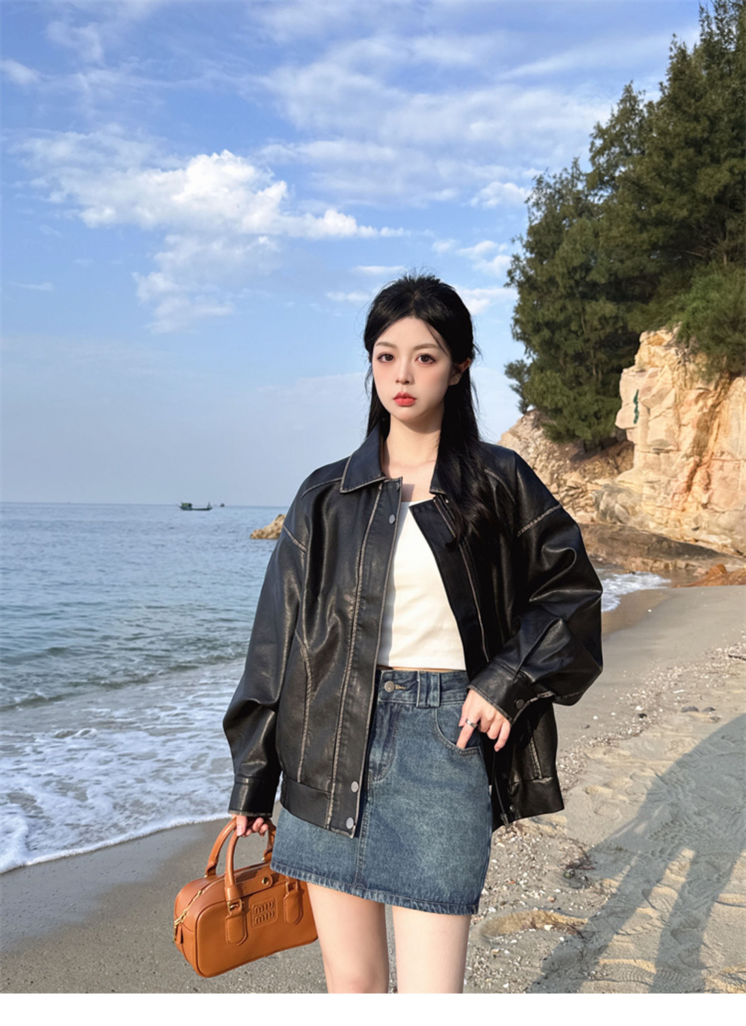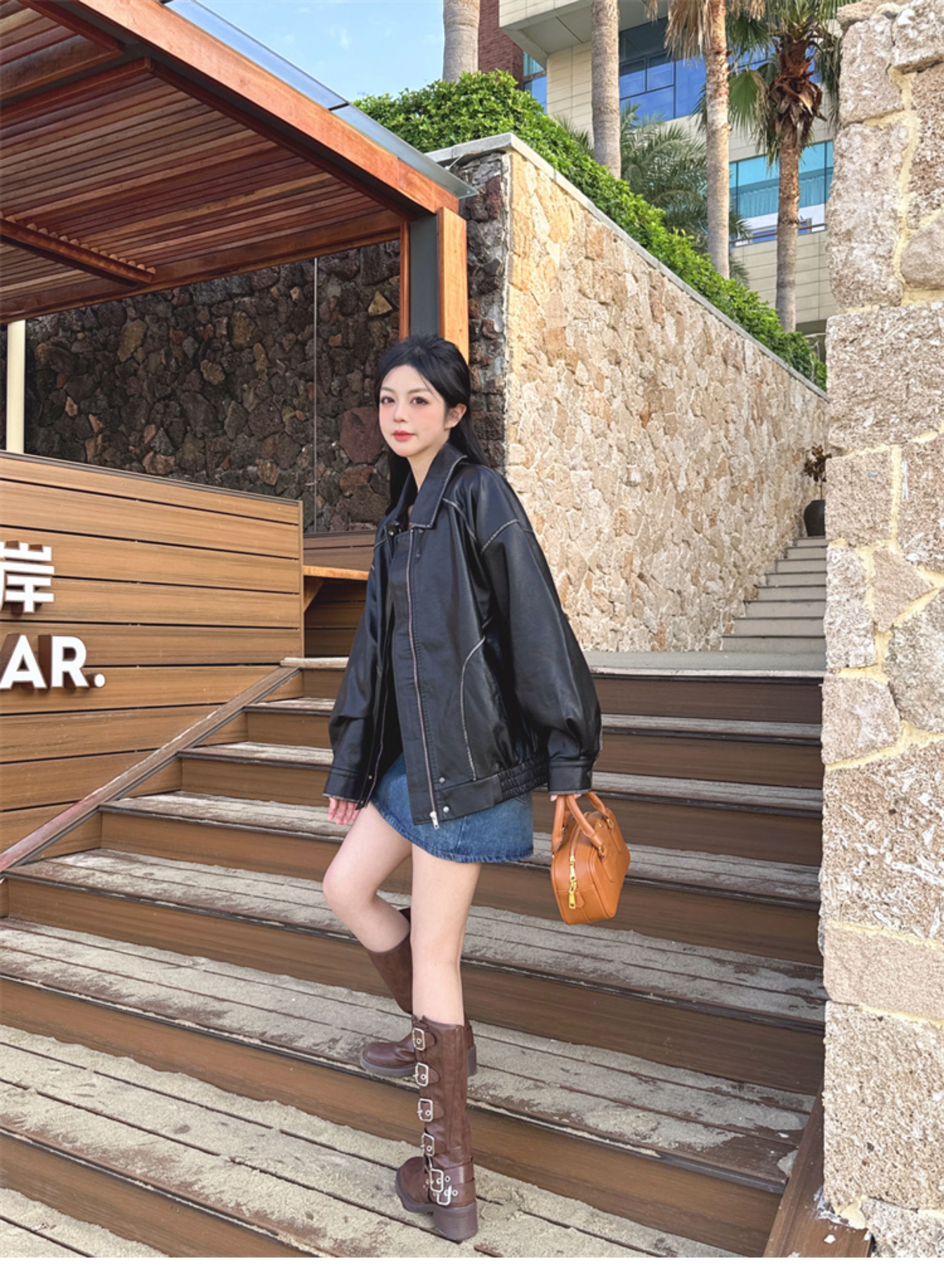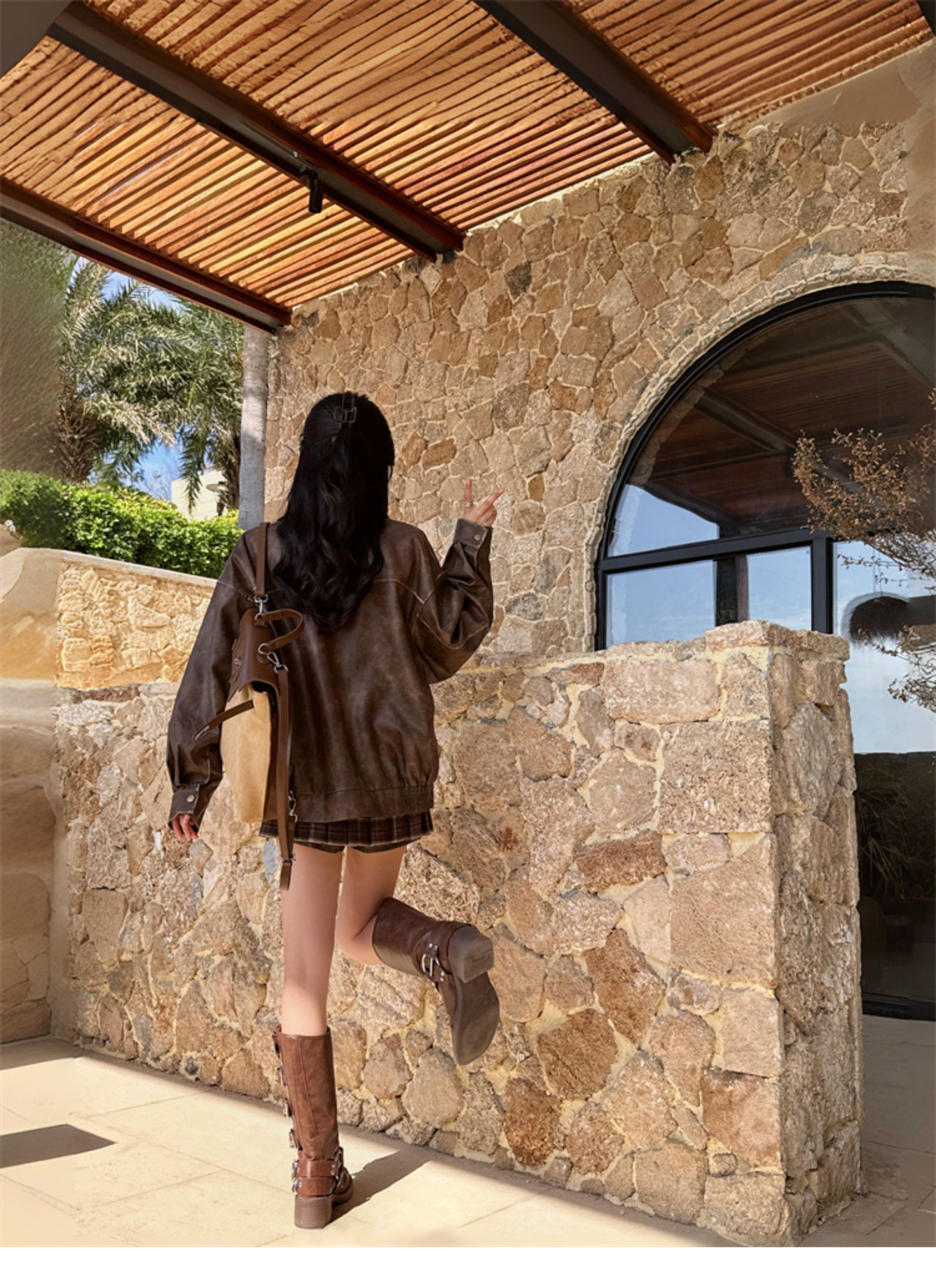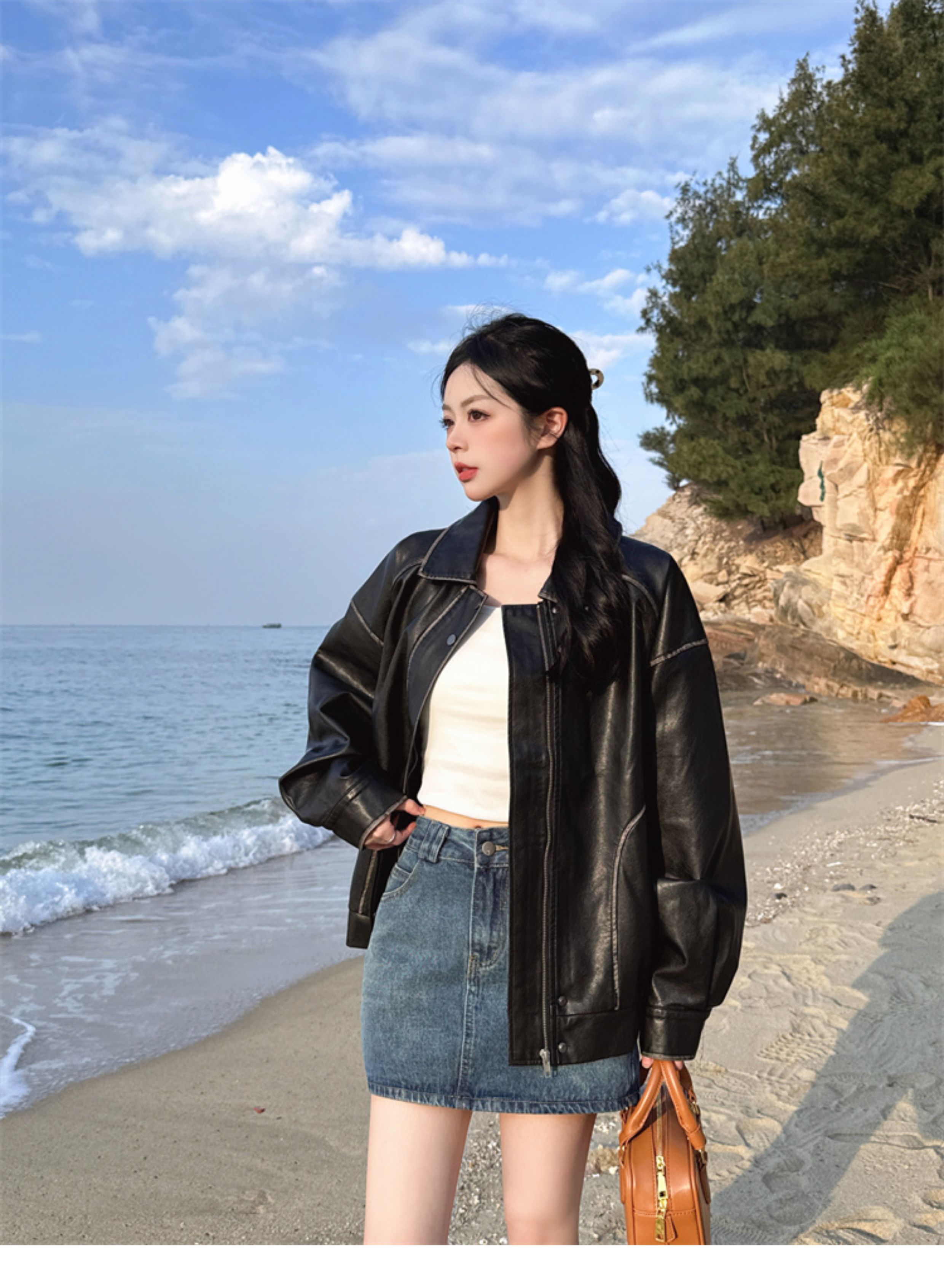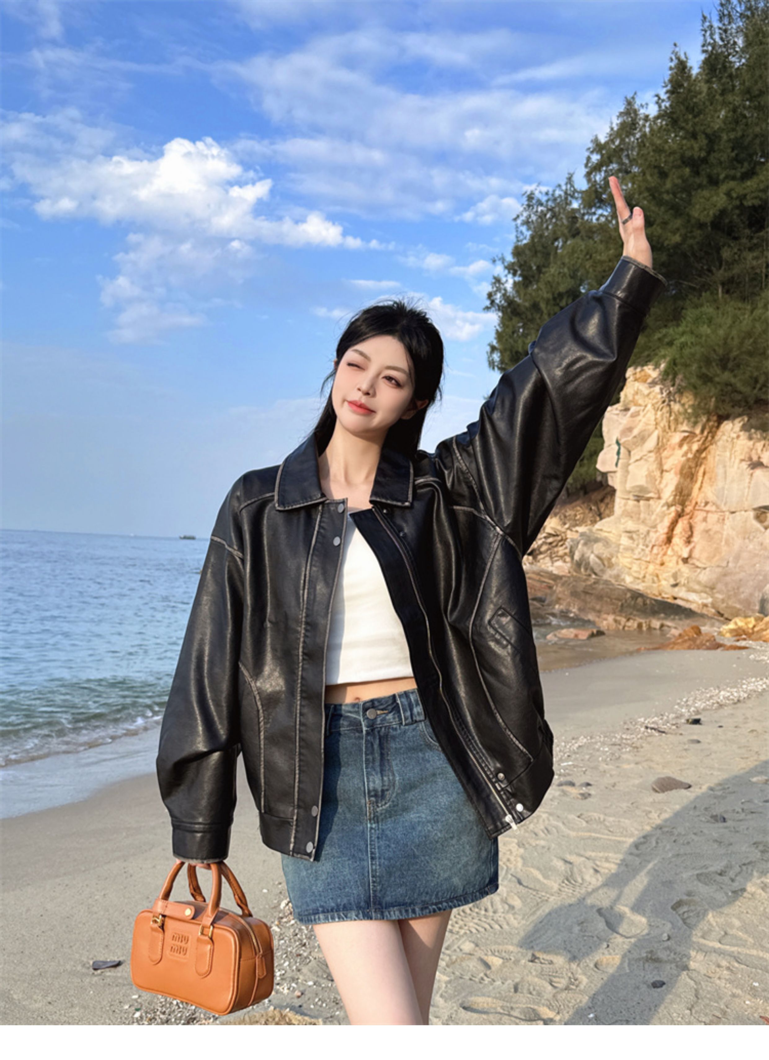 Brown Leather Jacket for Women, Spring and Autumn 2025 New Style, Pu Leather Jacket, American Retro Cool Style, Same Style as Zhong Chuxi