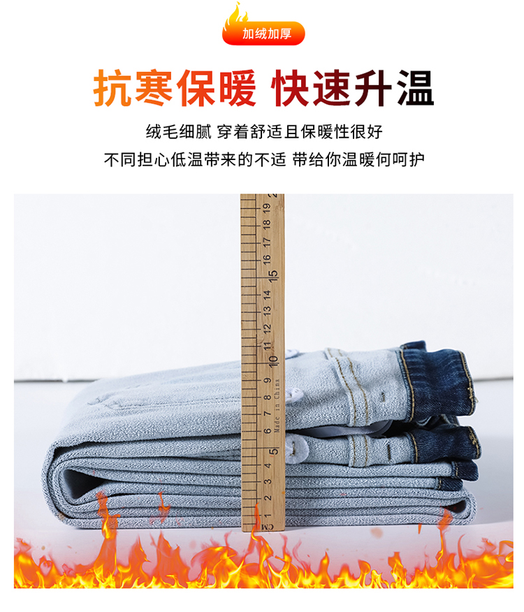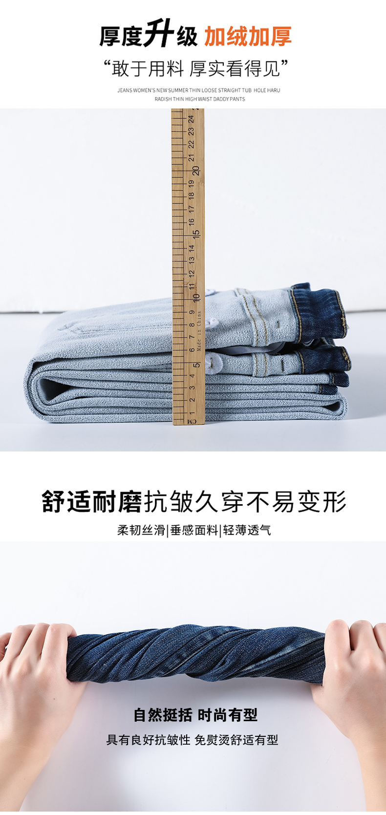 Mall Clearance 2025 Spring, Autumn, Winter Fleece-Lined Blue Jeans Retro Petite Slim-Fit Narrow Straight-Leg Pants High-Waisted