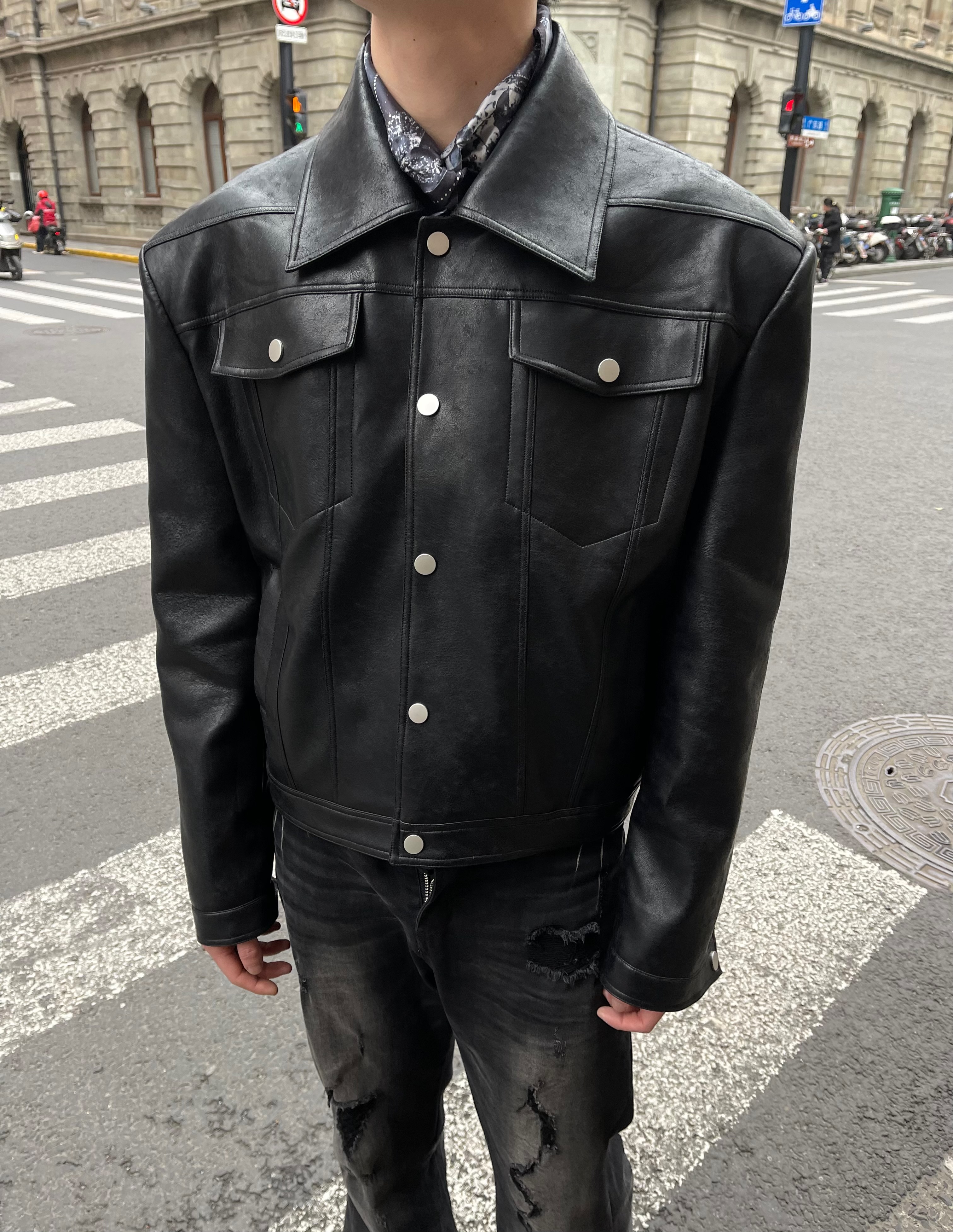 SKBD 24 SS [Blade] crack shoulder pad leather Spring & Fall jacket male cleanfit