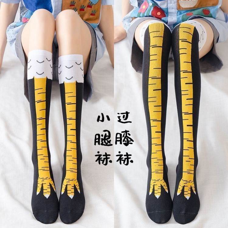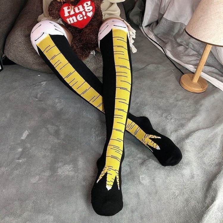 Chicken Claw Socks for Women, Funny Over-The-Knee Socks, Internet-Famous Ostrich Pattern Calf Socks, Quirky Chicken Foot Long Cotton Socks for Autumn and Winter