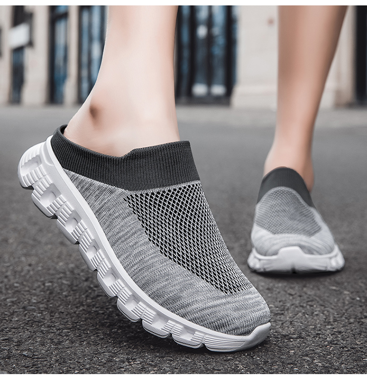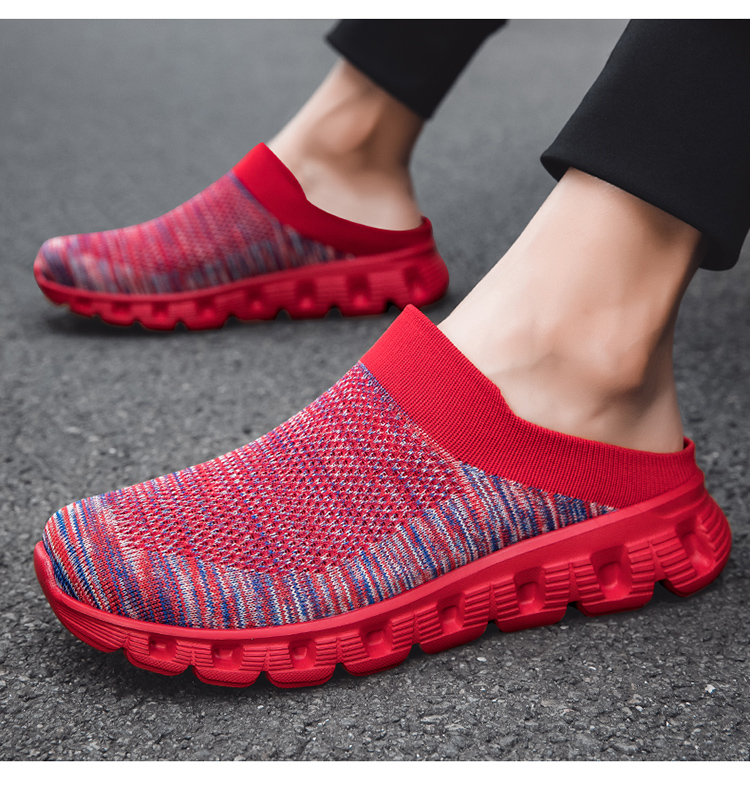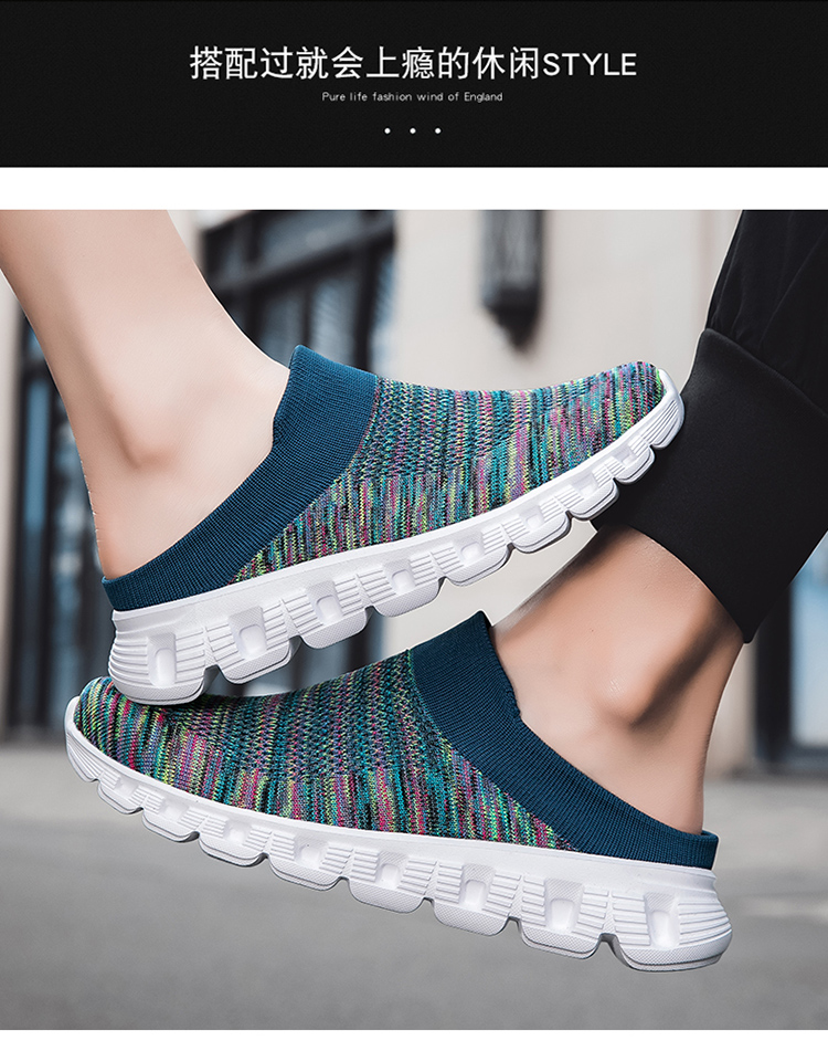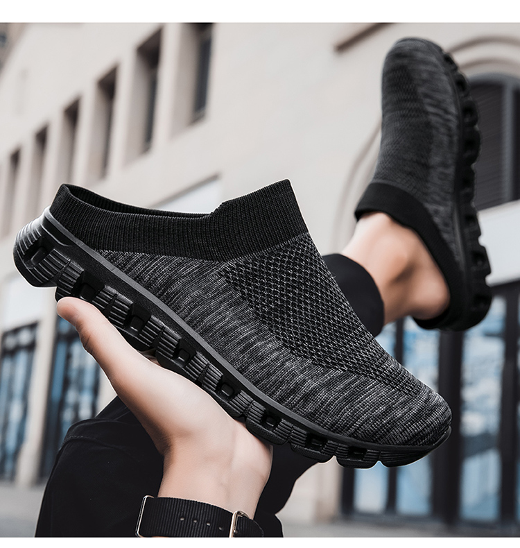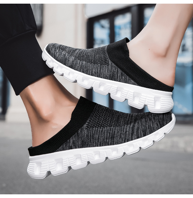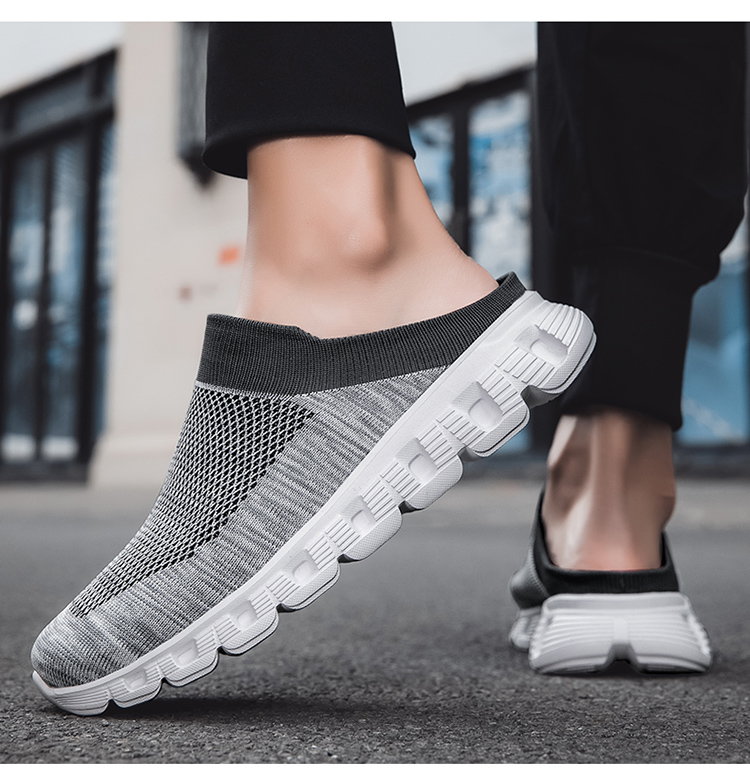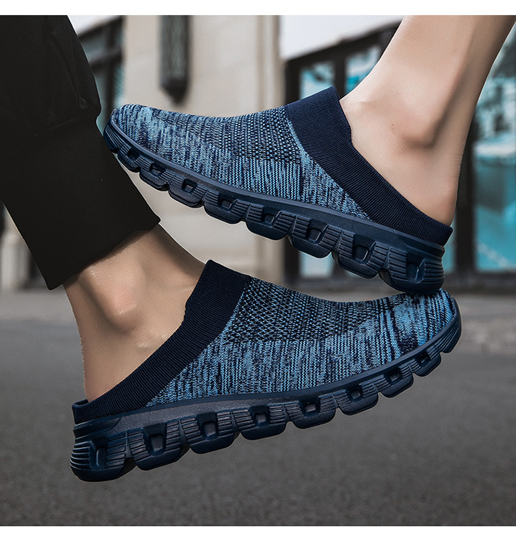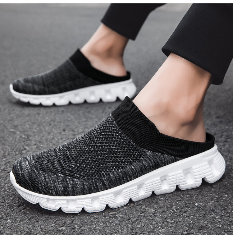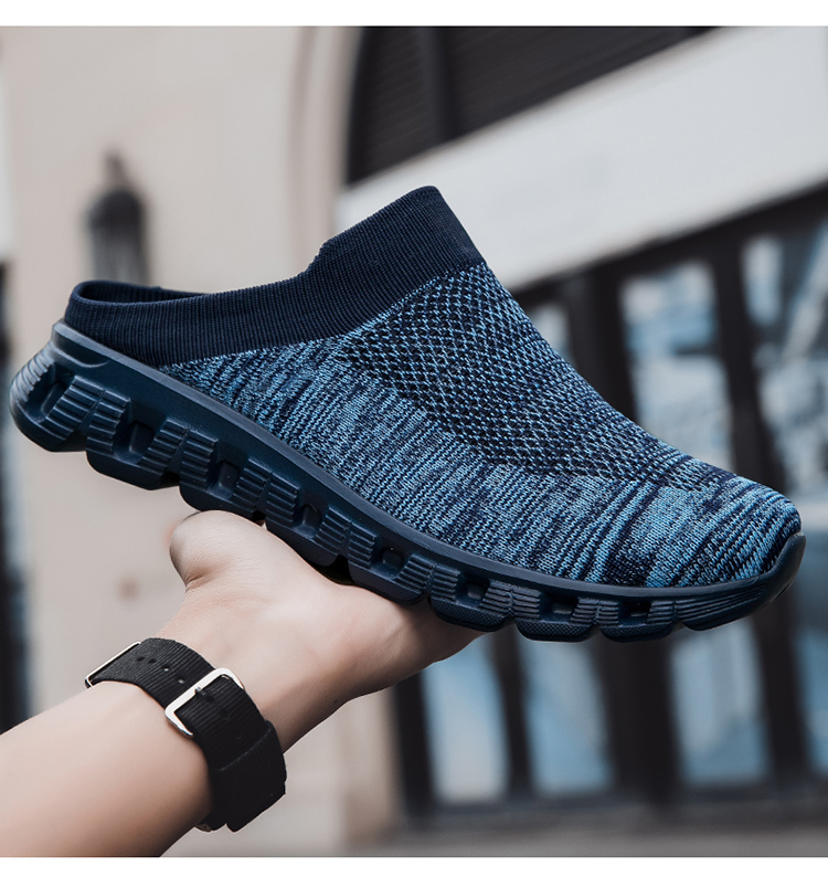 Men's Trendy Open-Toe Slippers for Outdoor Wear, Size 45, Summer Mesh Casual Fly-Knit Sports Half-Slippers, Large Size Sandals for Men, Size 46, 47, 48