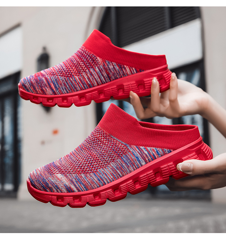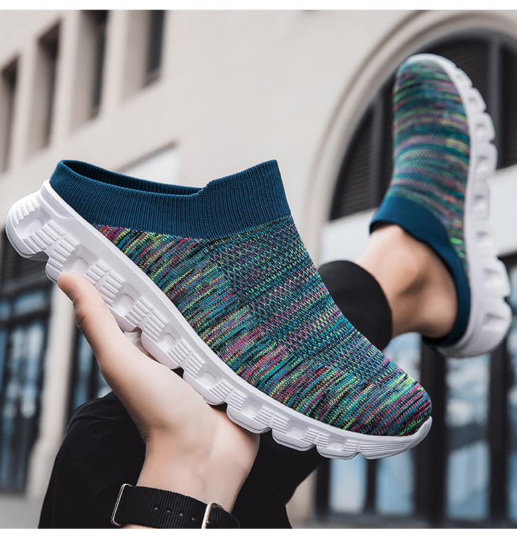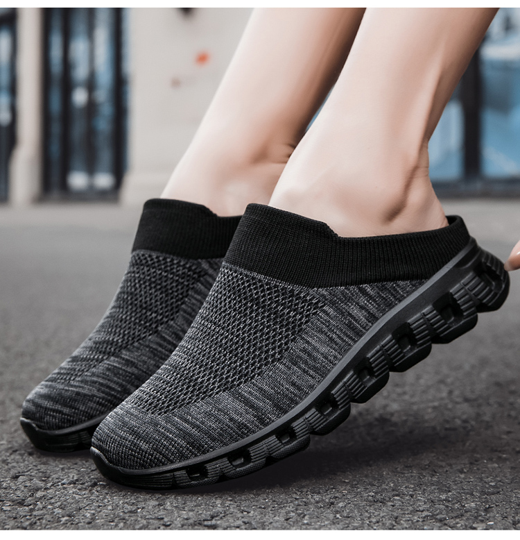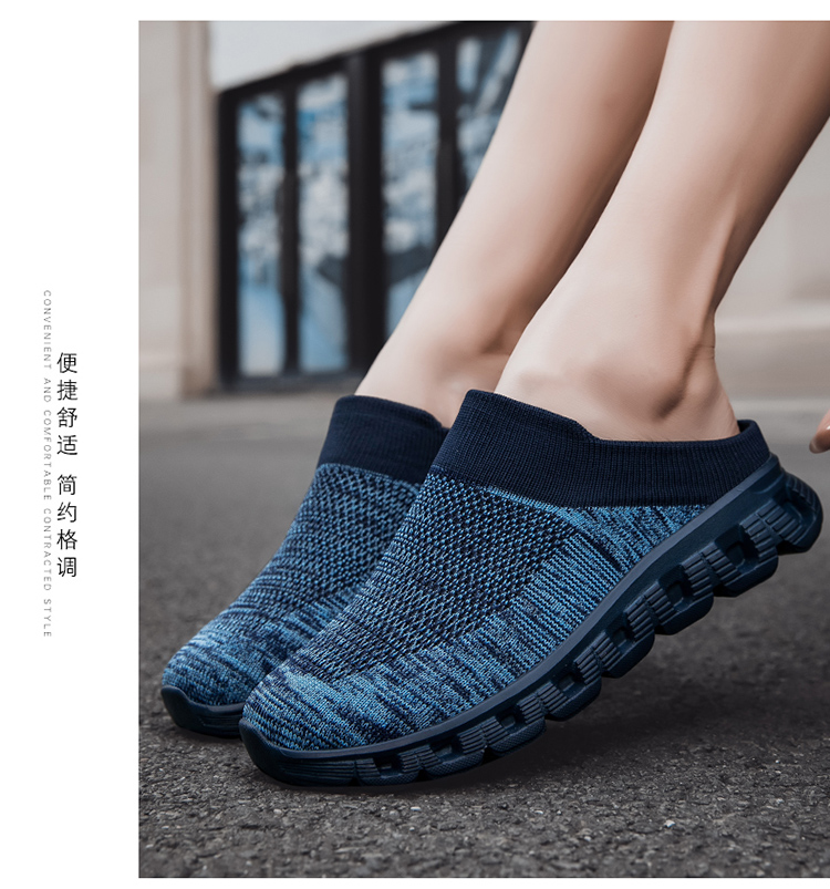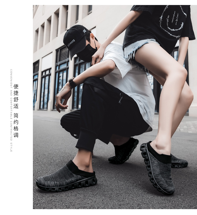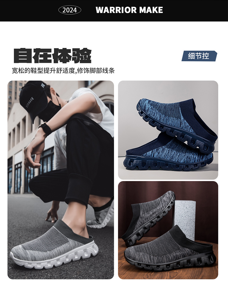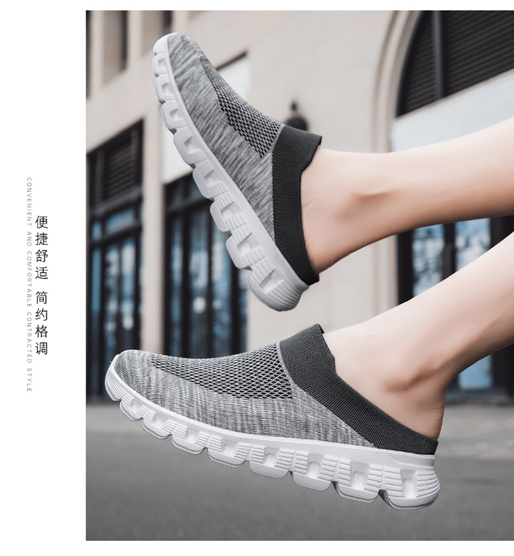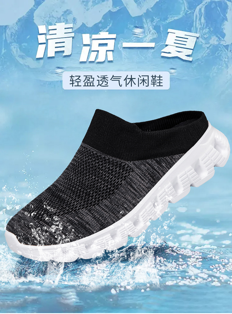 Men's Trendy Open-Toe Slippers for Outdoor Wear, Size 45, Summer Mesh Casual Fly-Knit Sports Half-Slippers, Large Size Sandals for Men, Size 46, 47, 48