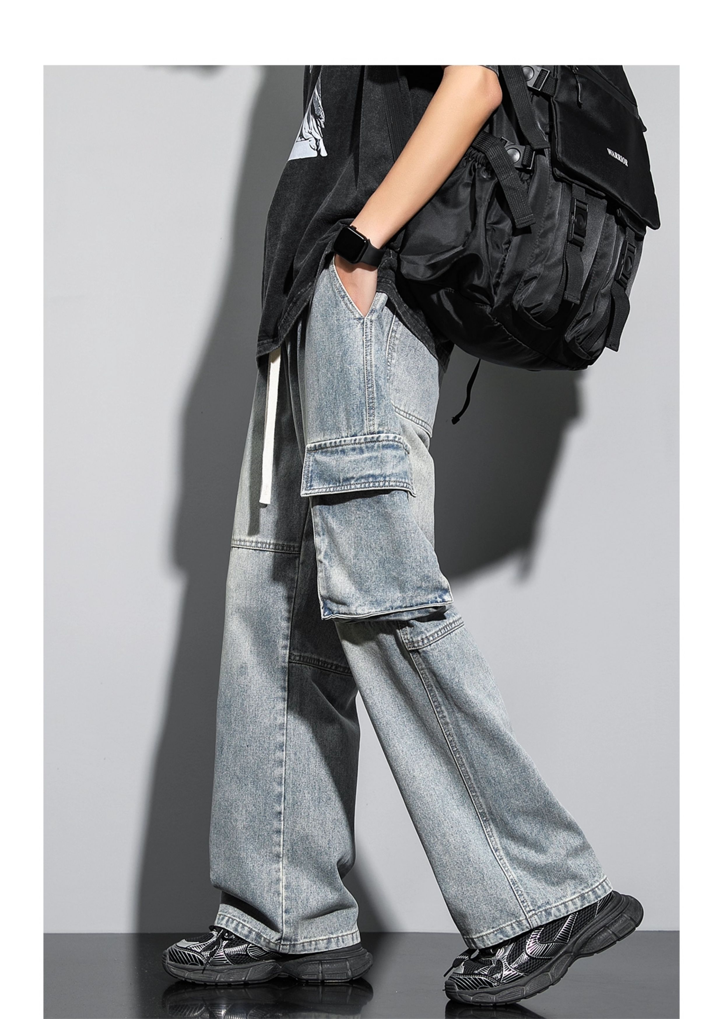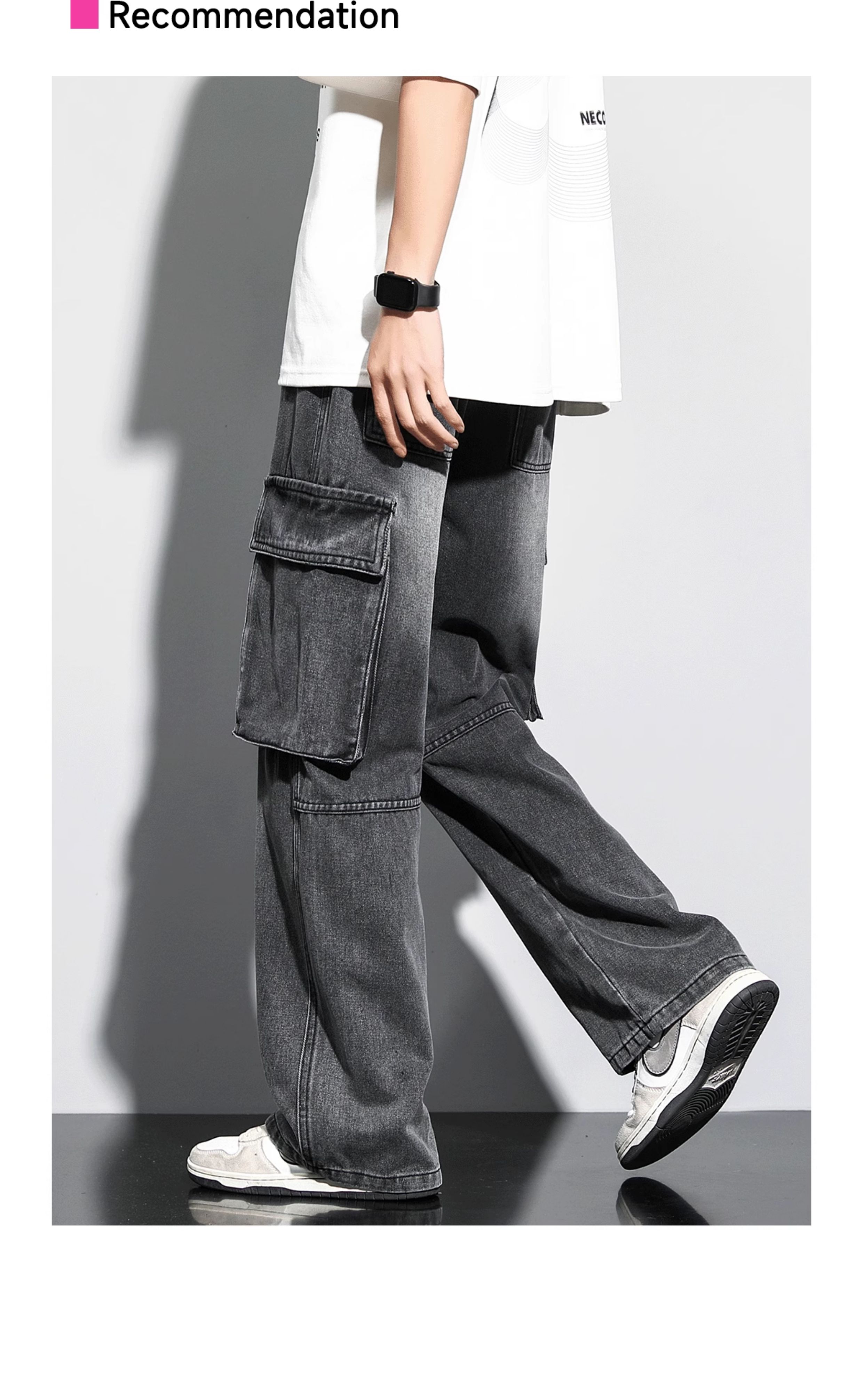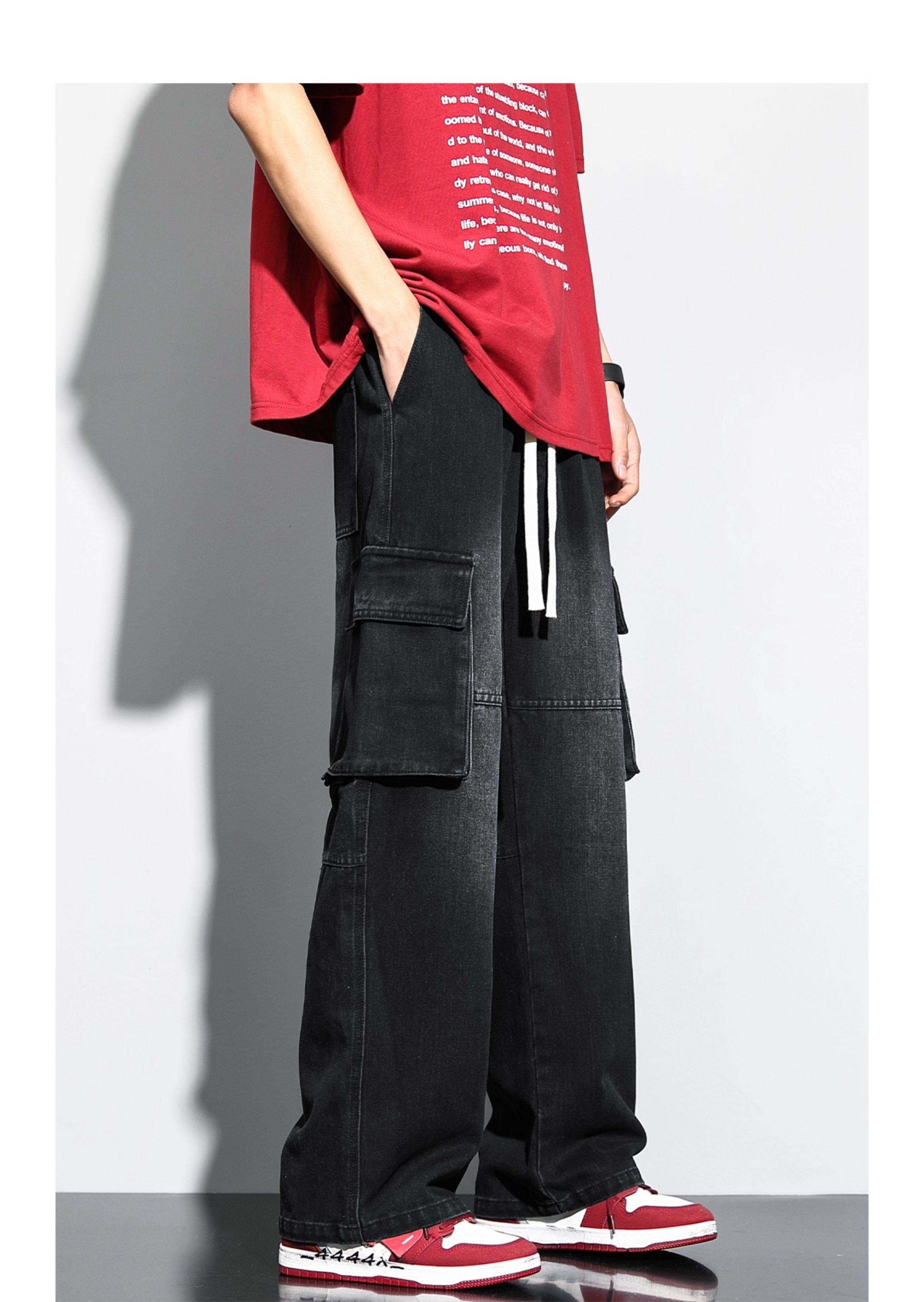 Workwear Jeans for Men, Fleece-Lined, American Style, Loose Fit, Straight-Leg Pants for Teenagers, Men's Pants, New Autumn Long Pants