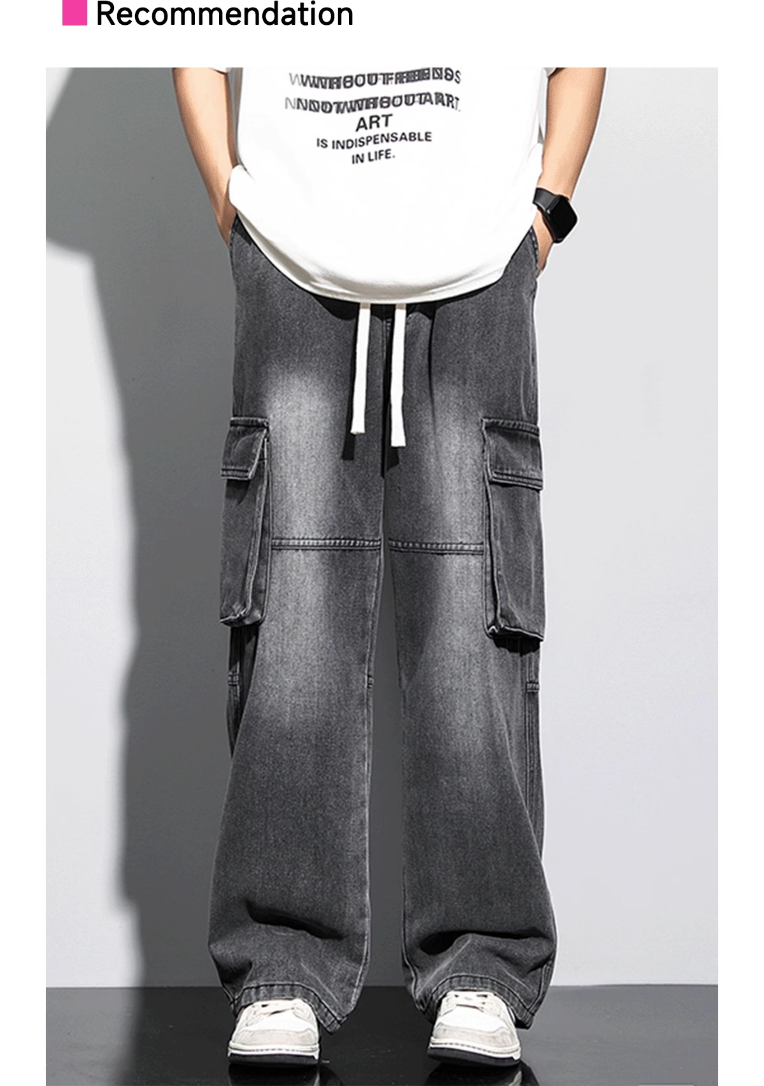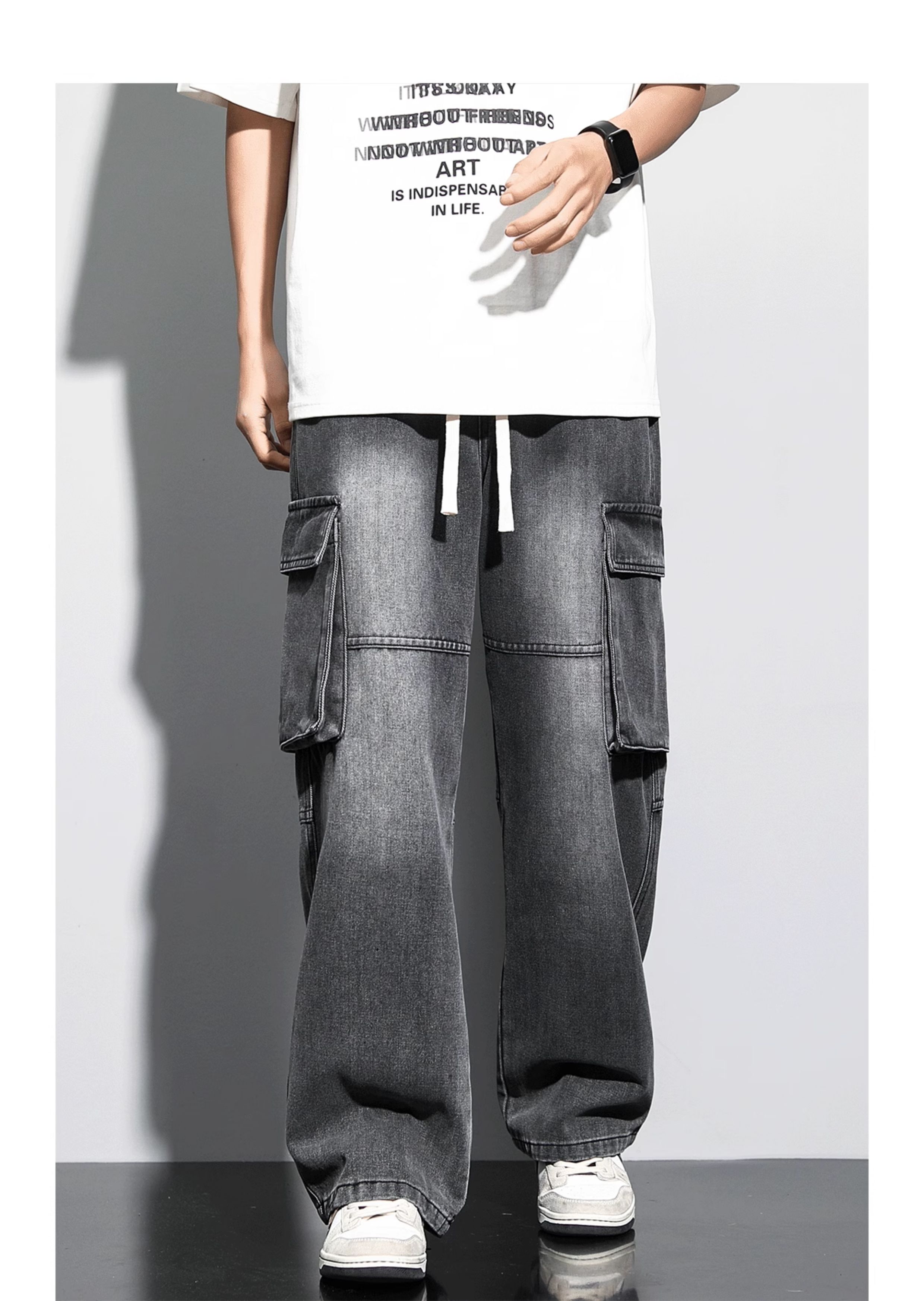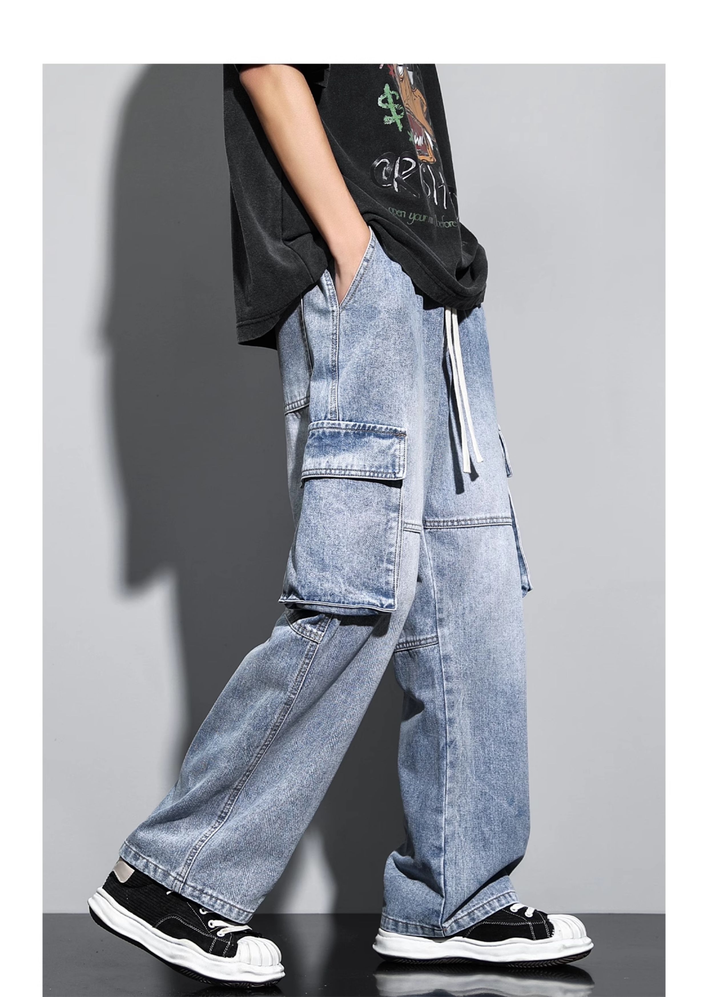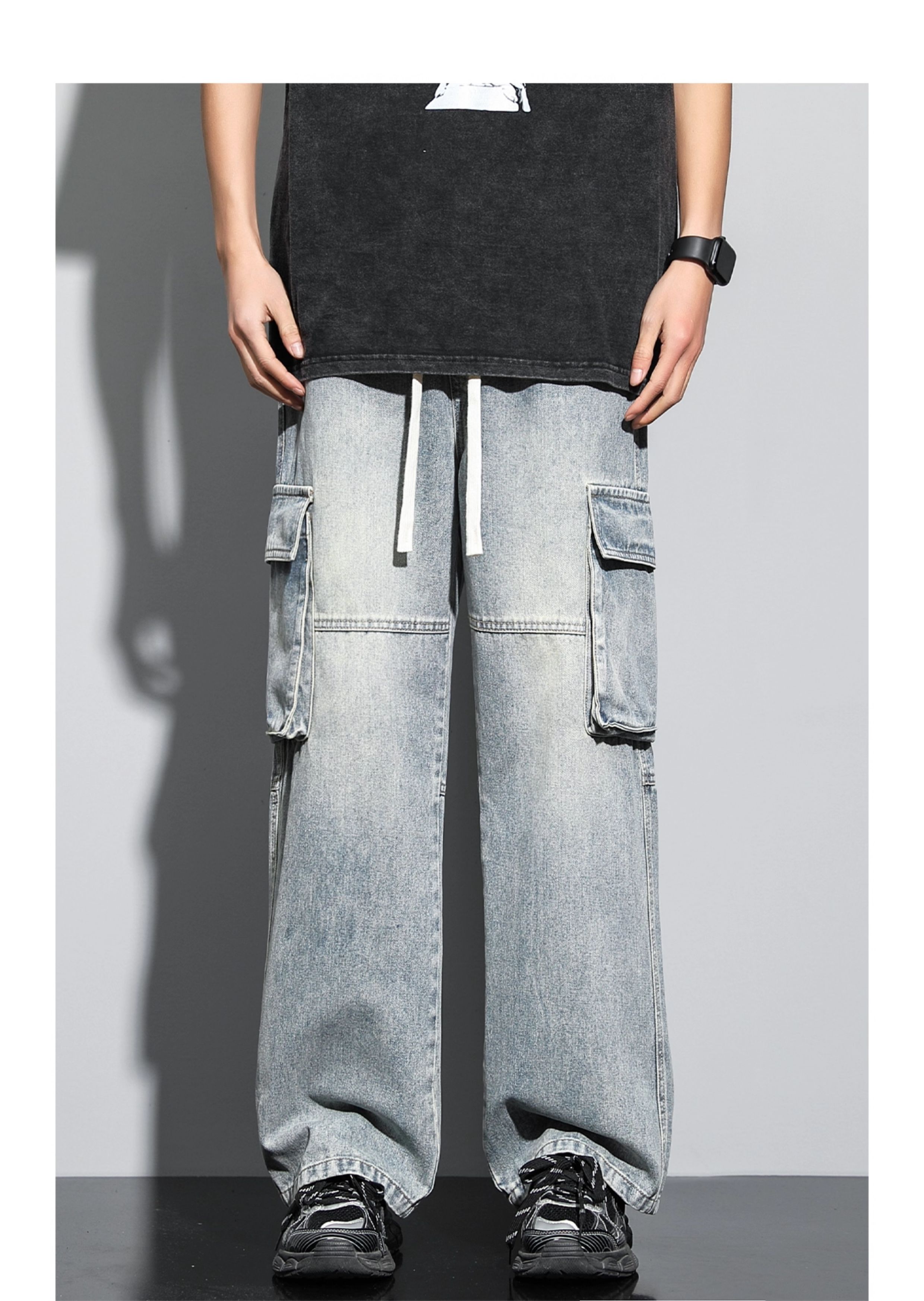 Workwear Jeans for Men, Fleece-Lined, American Style, Loose Fit, Straight-Leg Pants for Teenagers, Men's Pants, New Autumn Long Pants