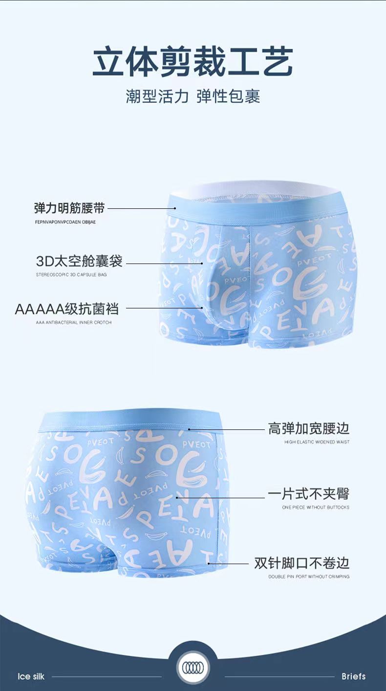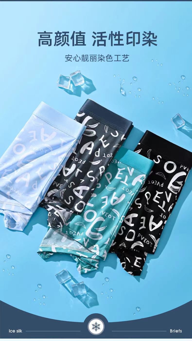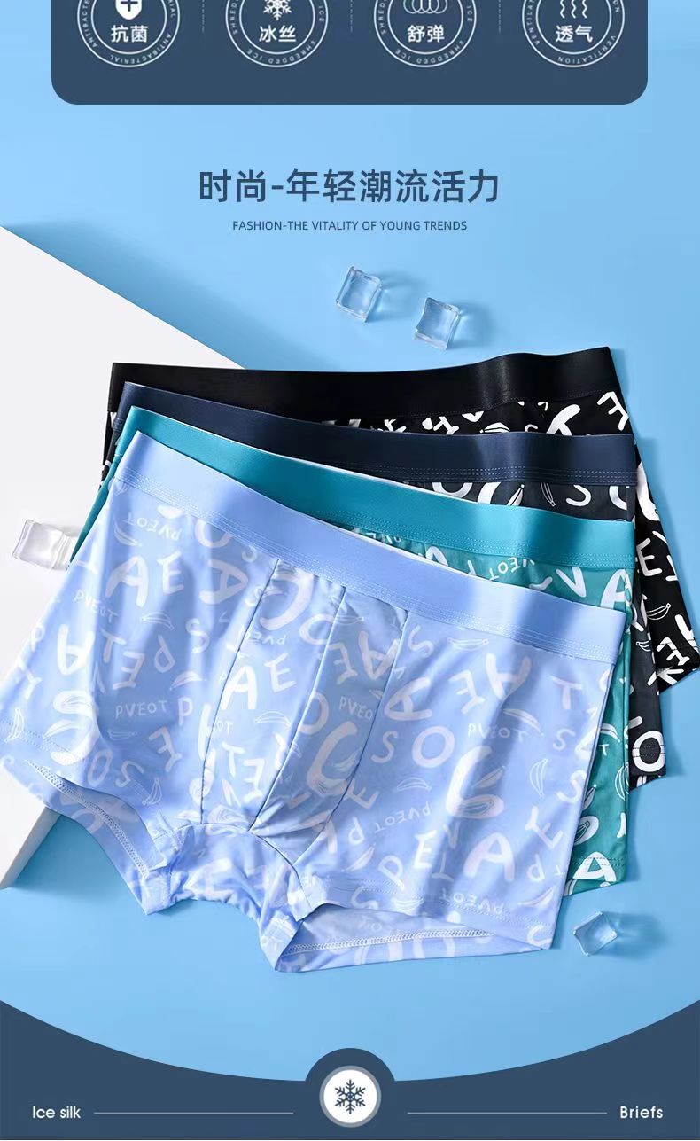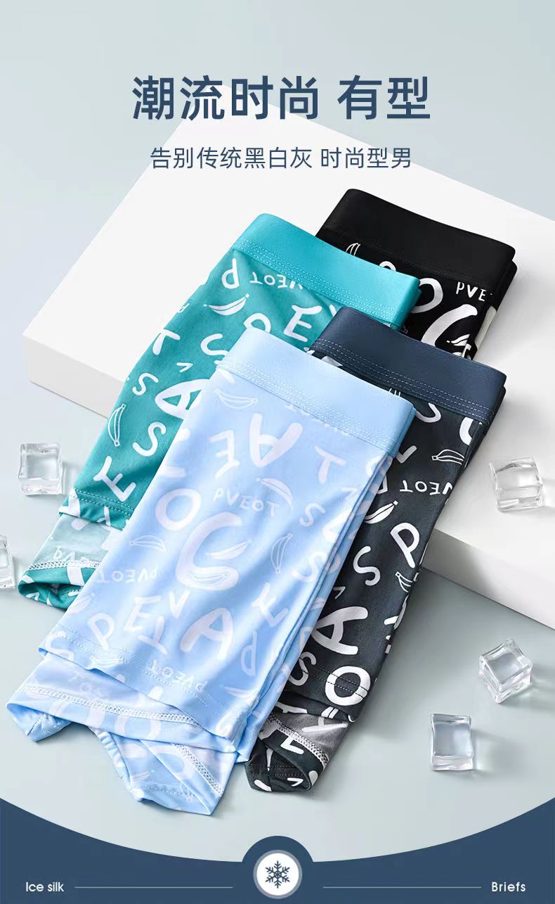 Men's Ice Silk Underwear, Graphene Breathable Antibacterial Boxer Briefs, Summer Men's Large Size Sports Boxer Shorts