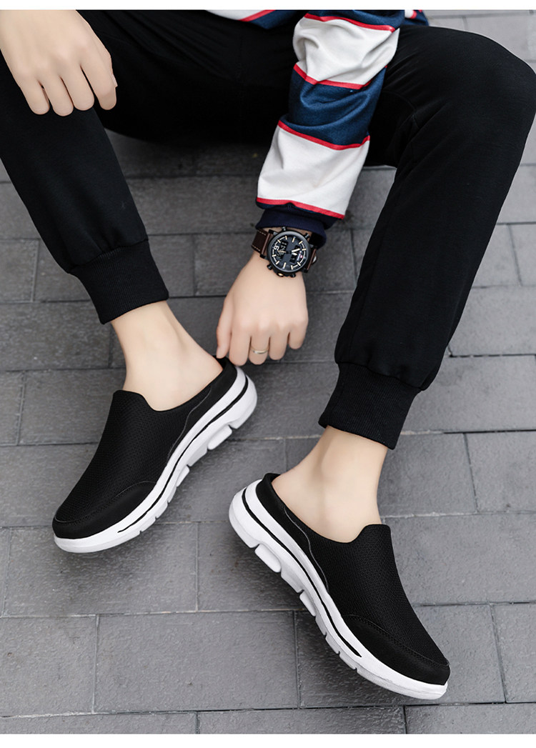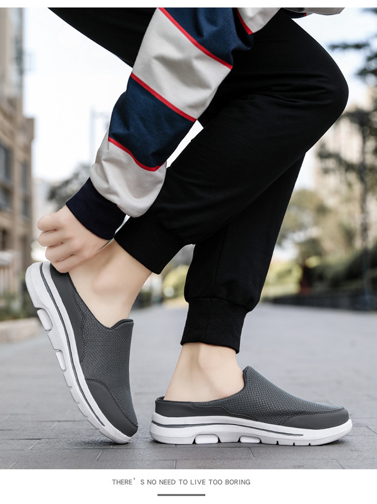 Shoes for Elderly Men with Swollen Feet, Summer Style Half-Slip Sandals, Walking Shoes for Middle-Aged and Elderly, Large Size Closed-Toe Slippers, Dad Shoes, Non-Slip