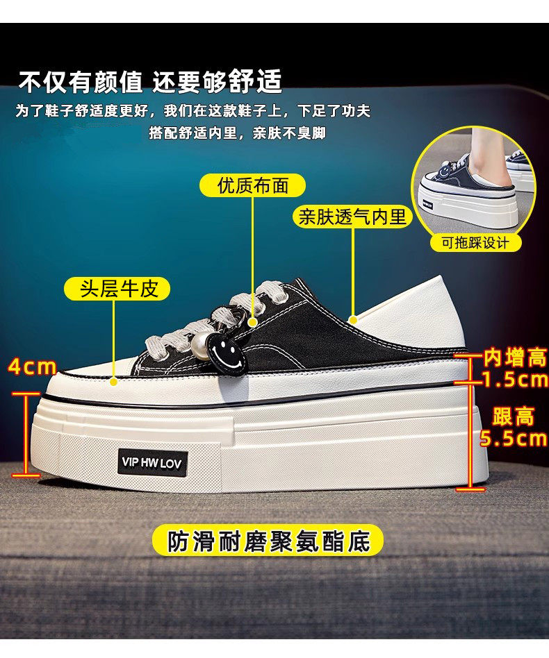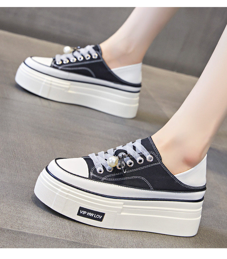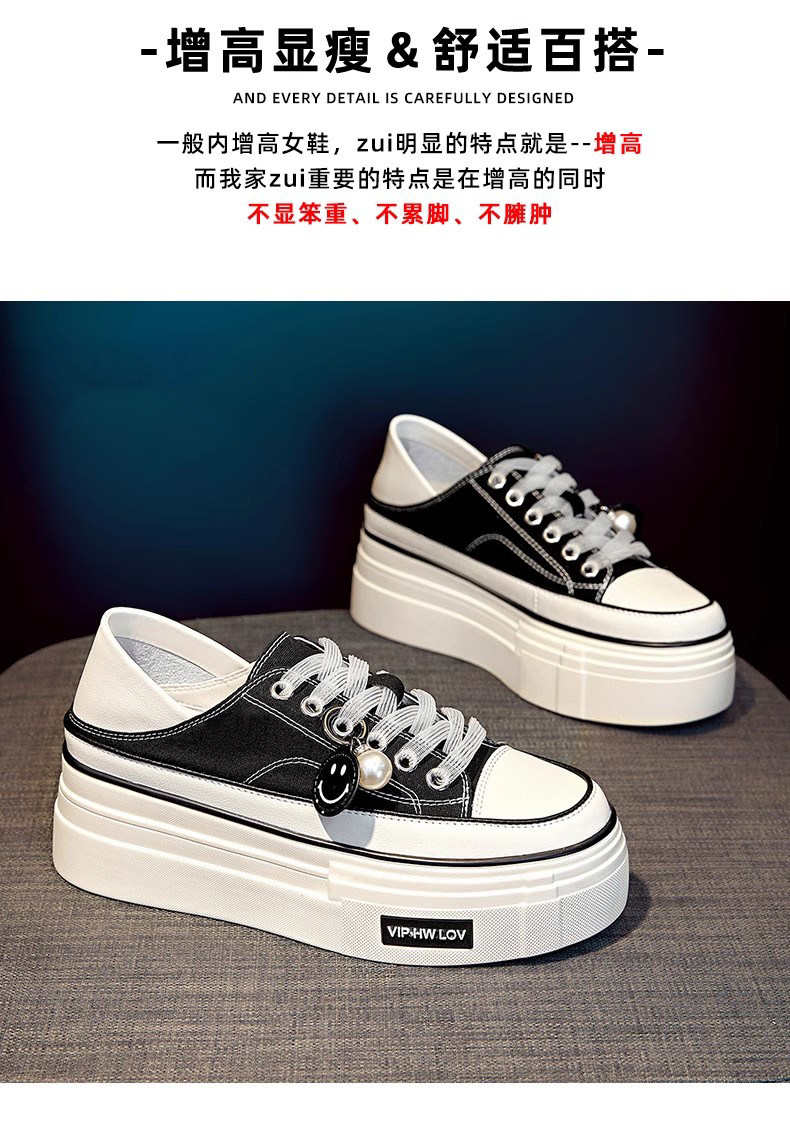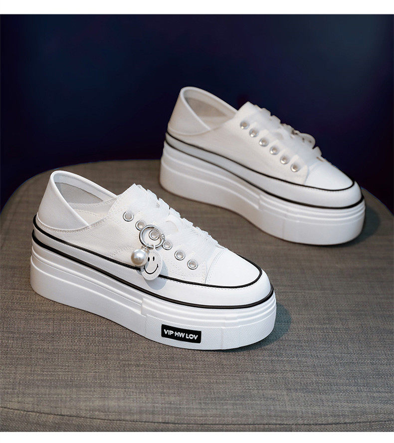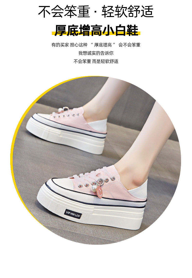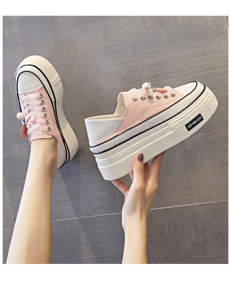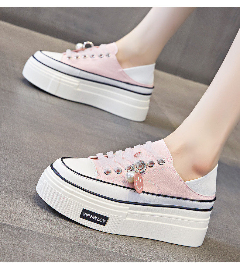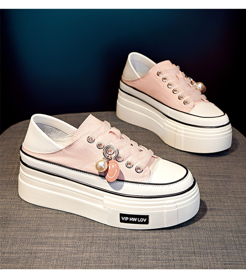 Hong Kong Pink Thick-Soled Height-Increasing Canvas Shoes for Women 2026 Spring and Autumn New Versatile Breathable Thin Casual Platform Sneakers