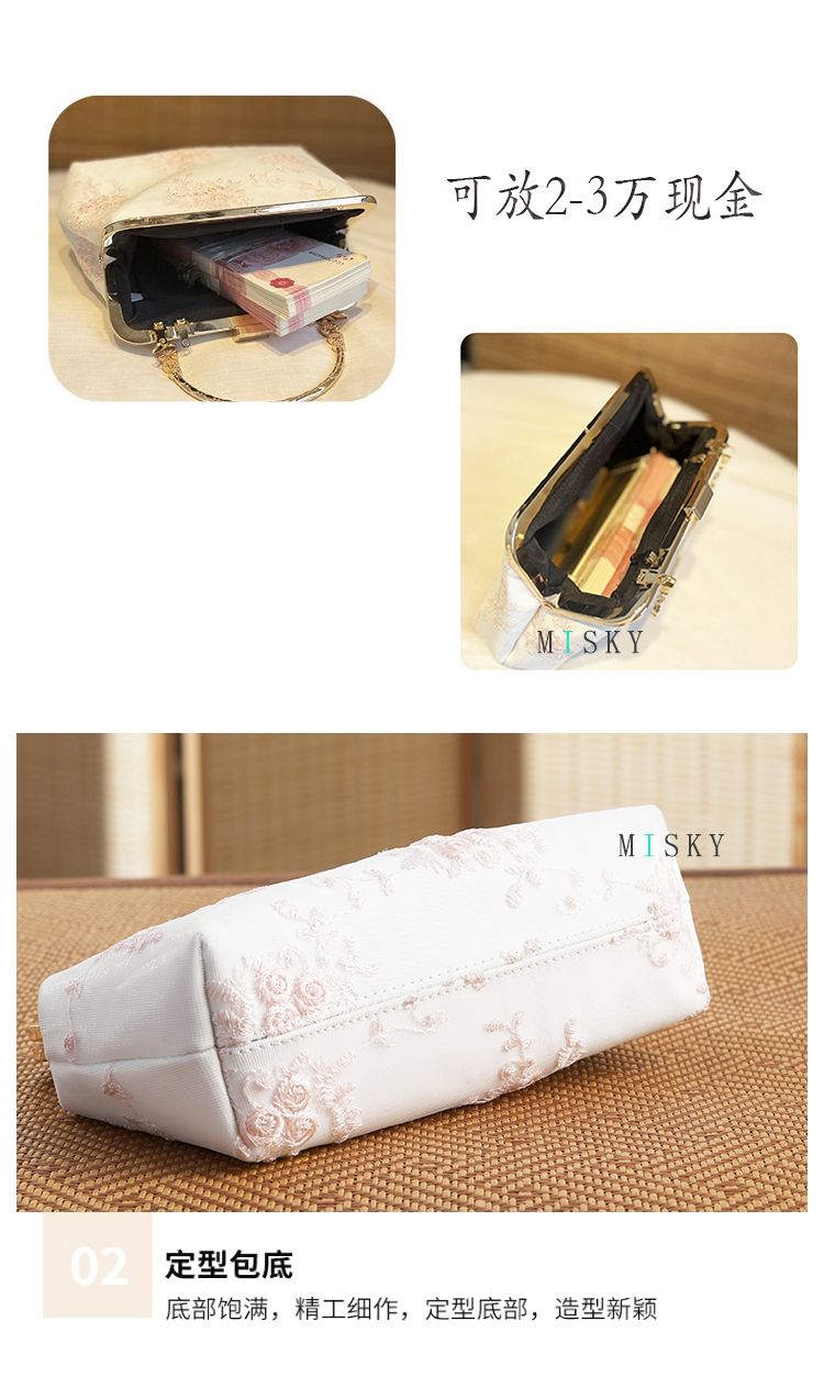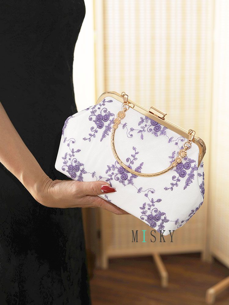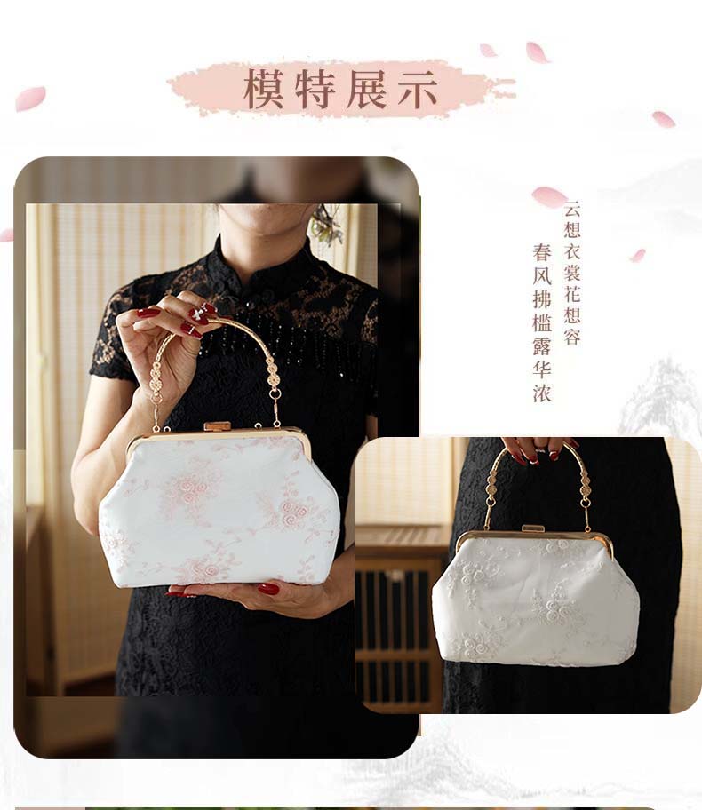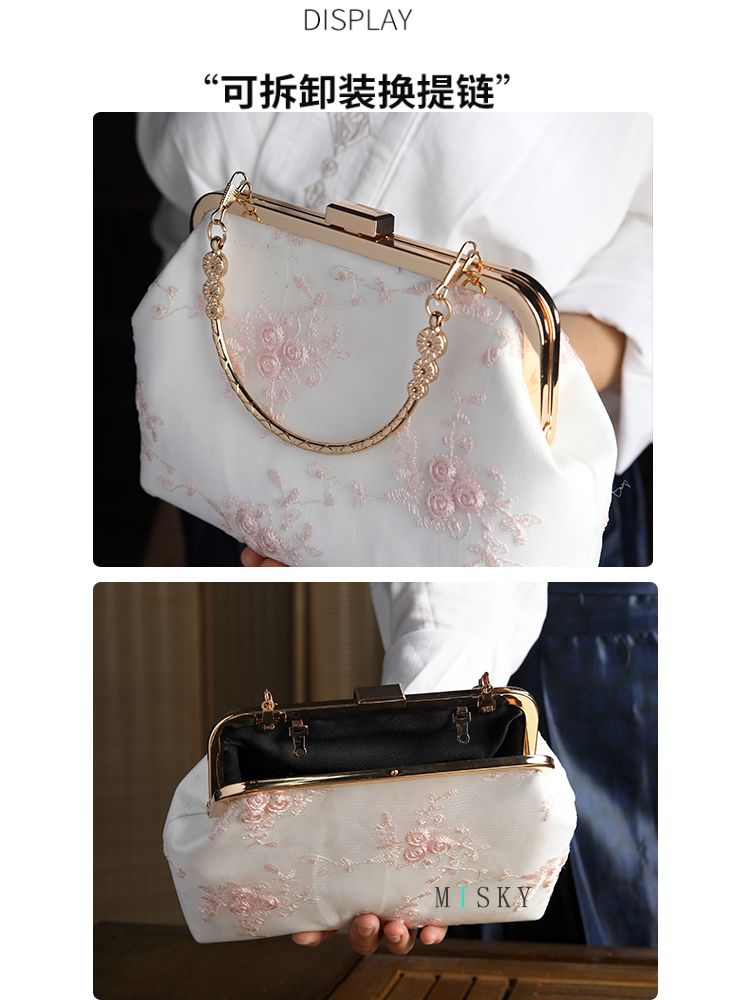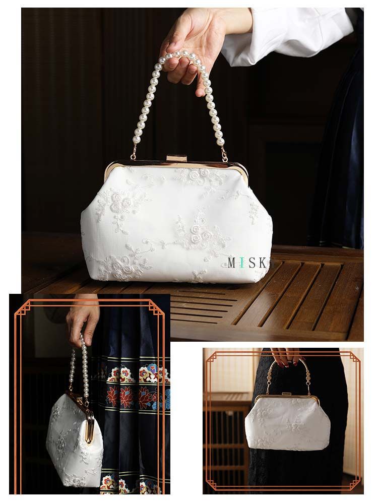 New Chinese-Style Cheongsam Handbag, Antique Floral Evening Clutch, Pearl Crossbody Bag, Lace Hanfu Bag, Mamian Skirt Bag