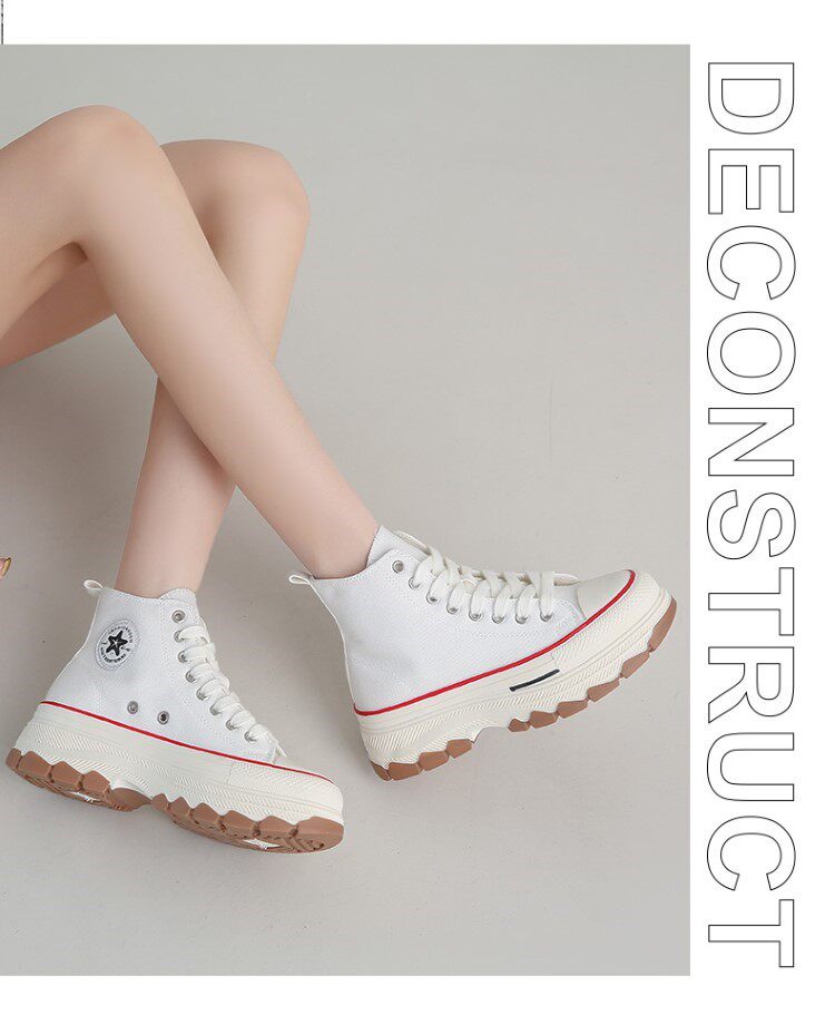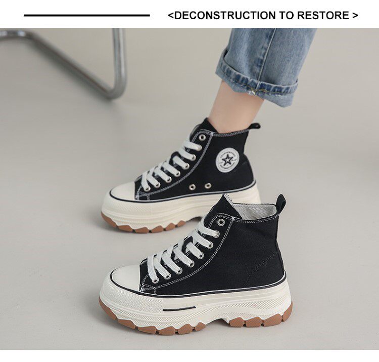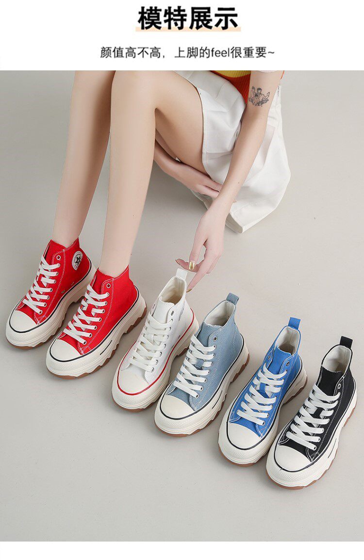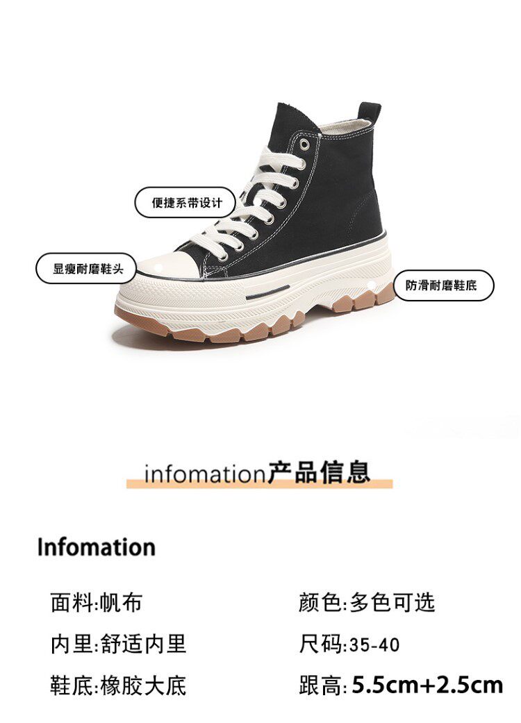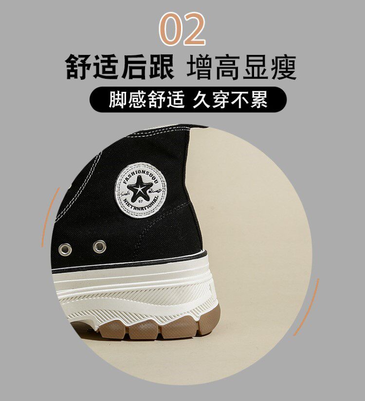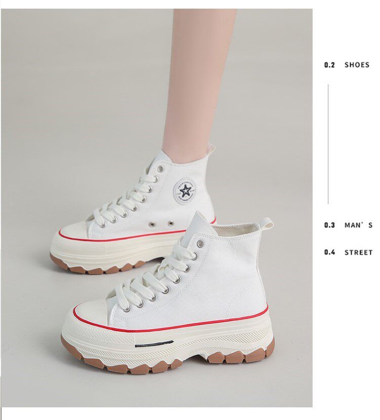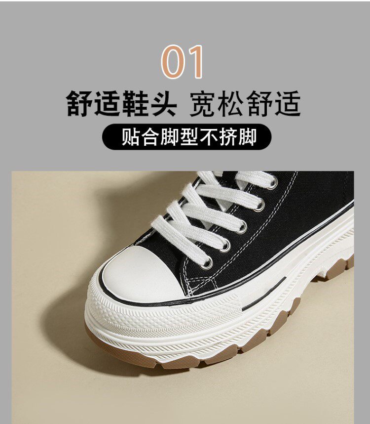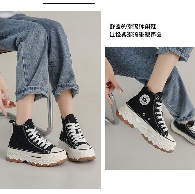 Trendy High-Top Canvas Shoes 2026 Spring/Summer Hot-Selling Thick-Soled Height-Increasing Casual Black Sneakers White Shoes