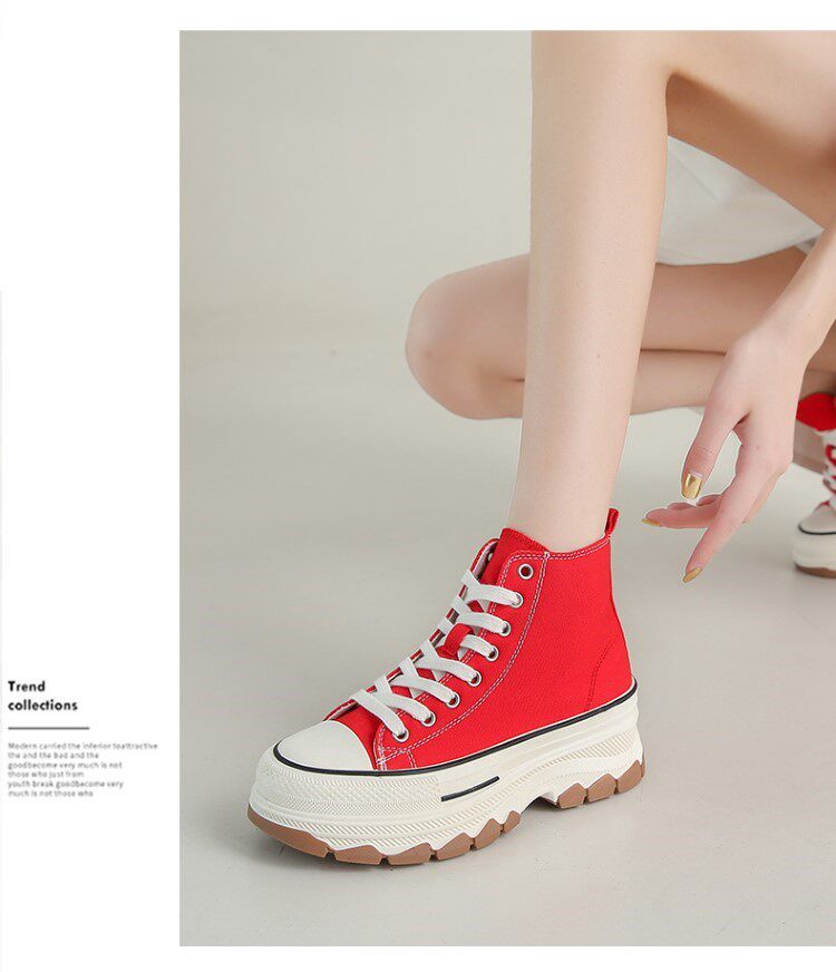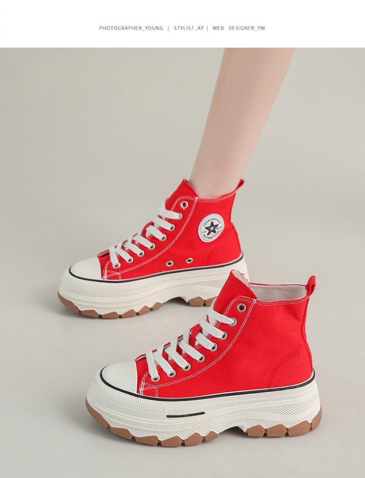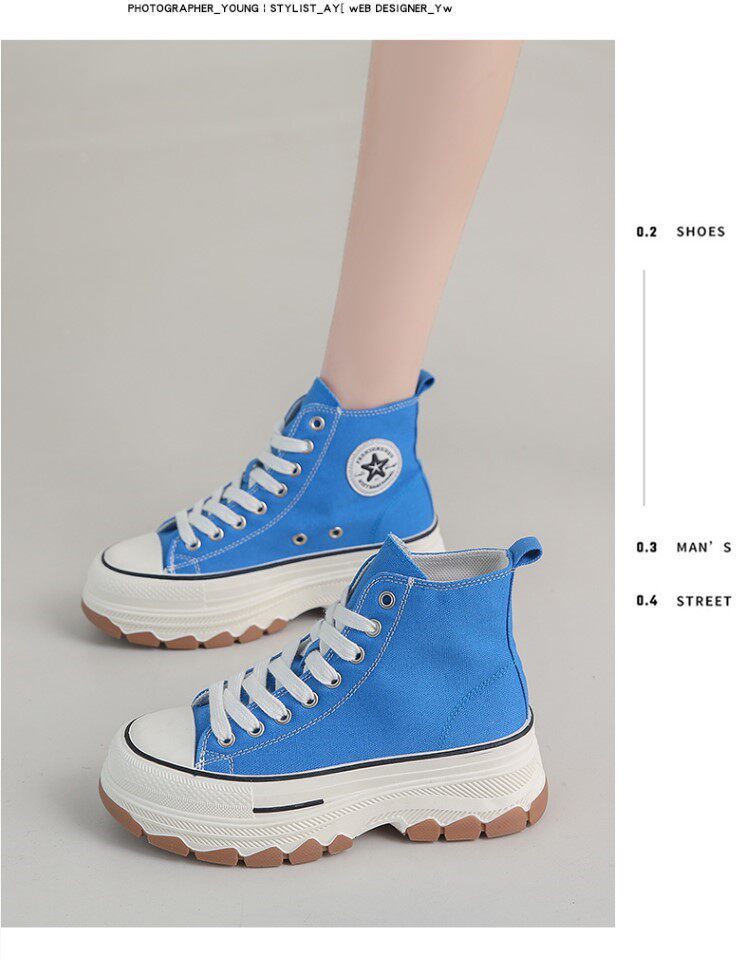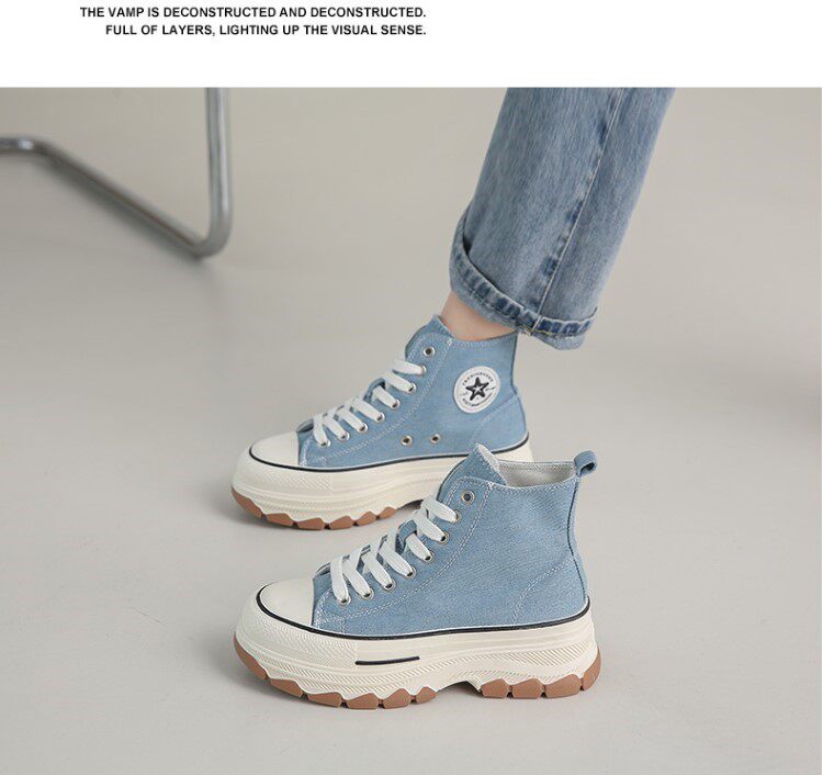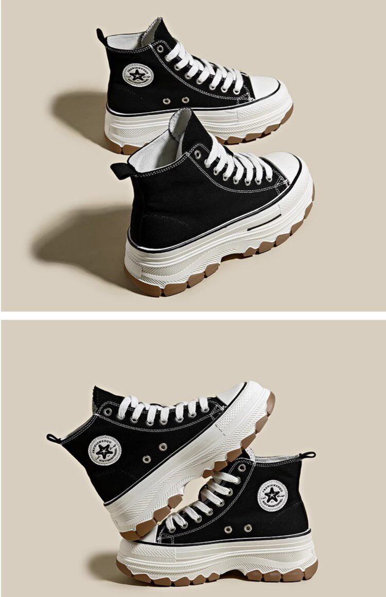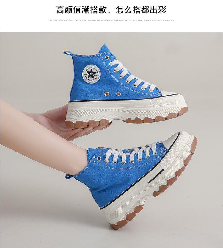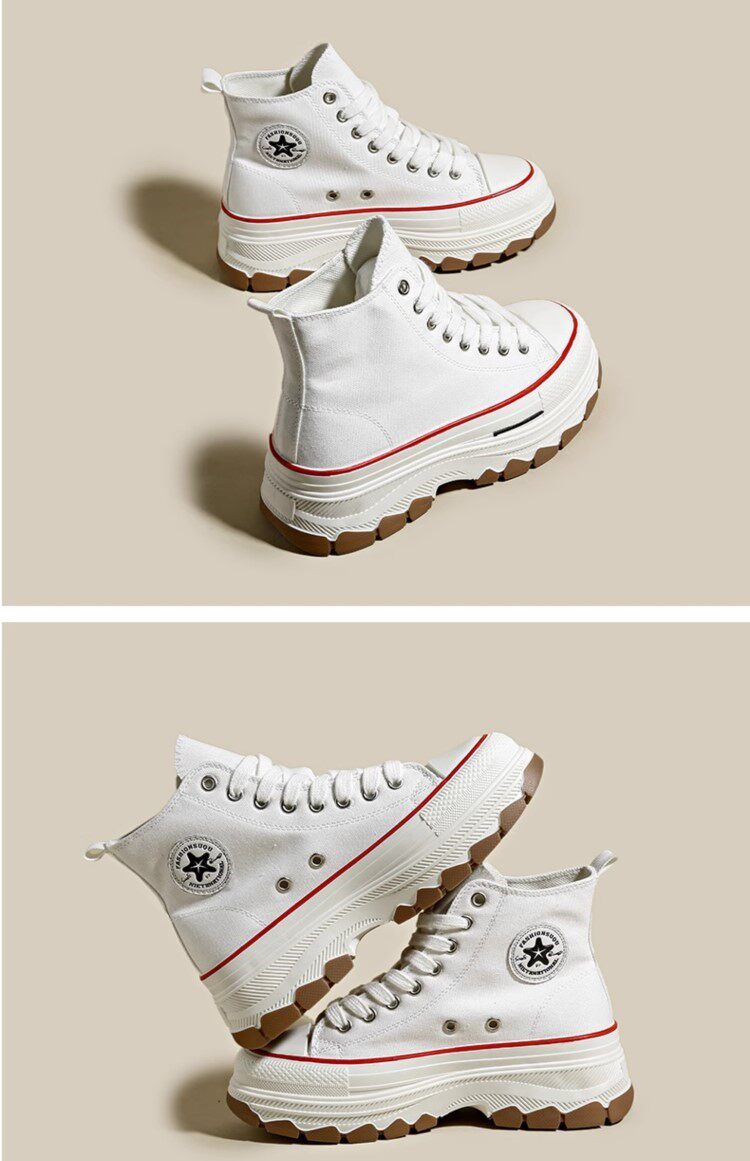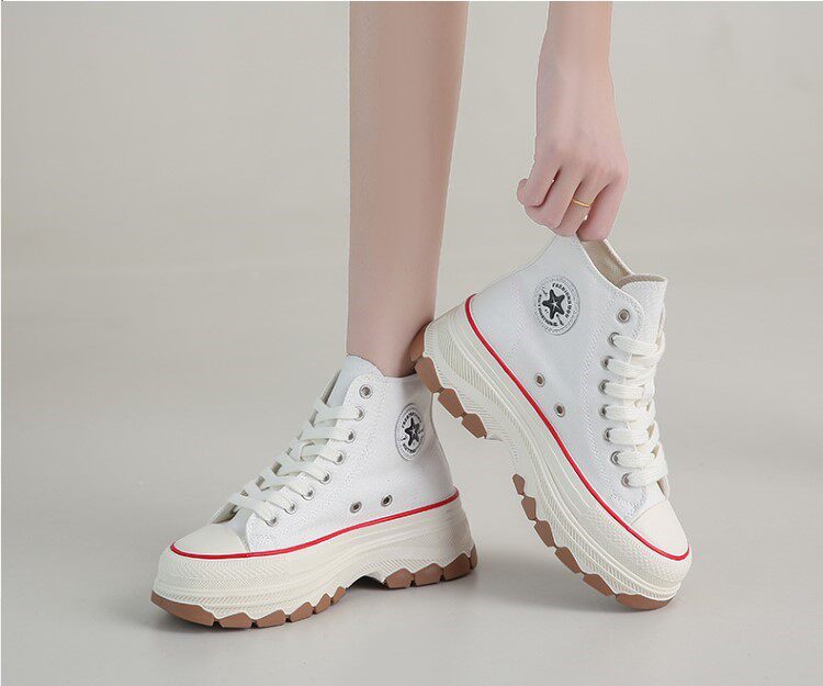 Trendy High-Top Canvas Shoes 2026 Spring/Summer Hot-Selling Thick-Soled Height-Increasing Casual Black Sneakers White Shoes