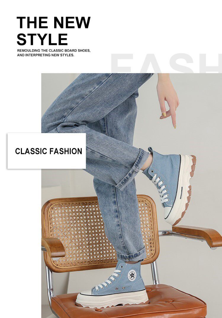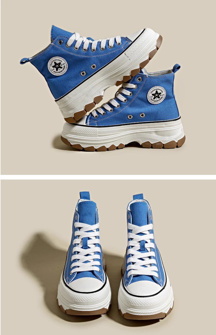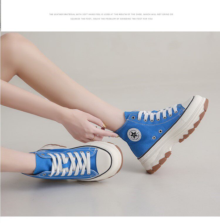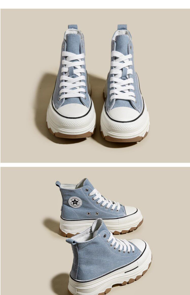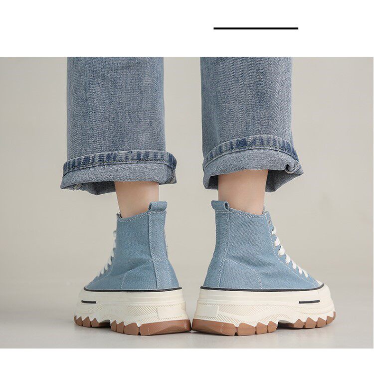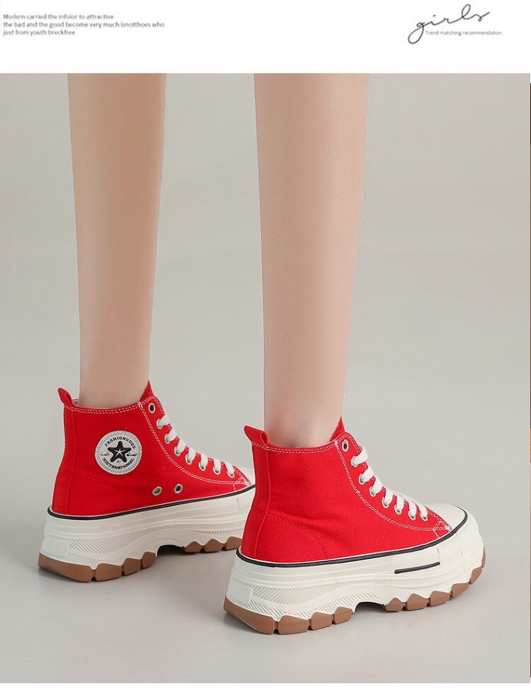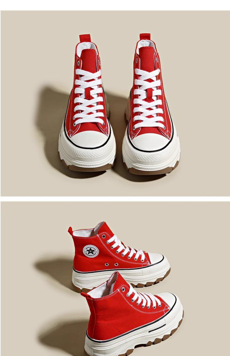 Trendy High-Top Canvas Shoes 2026 Spring/Summer Hot-Selling Thick-Soled Height-Increasing Casual Black Sneakers White Shoes