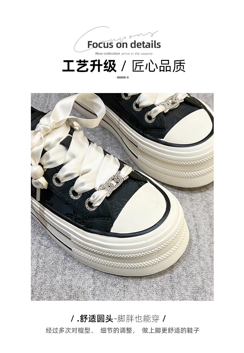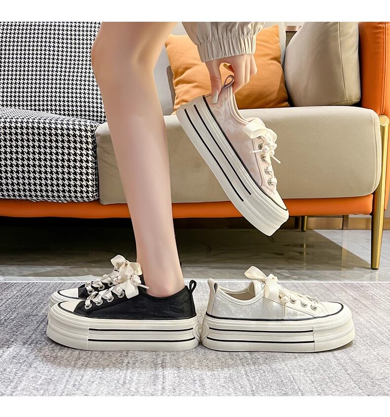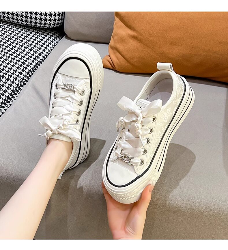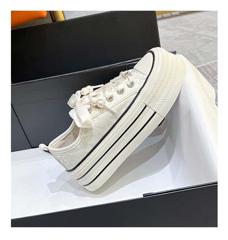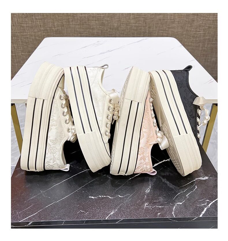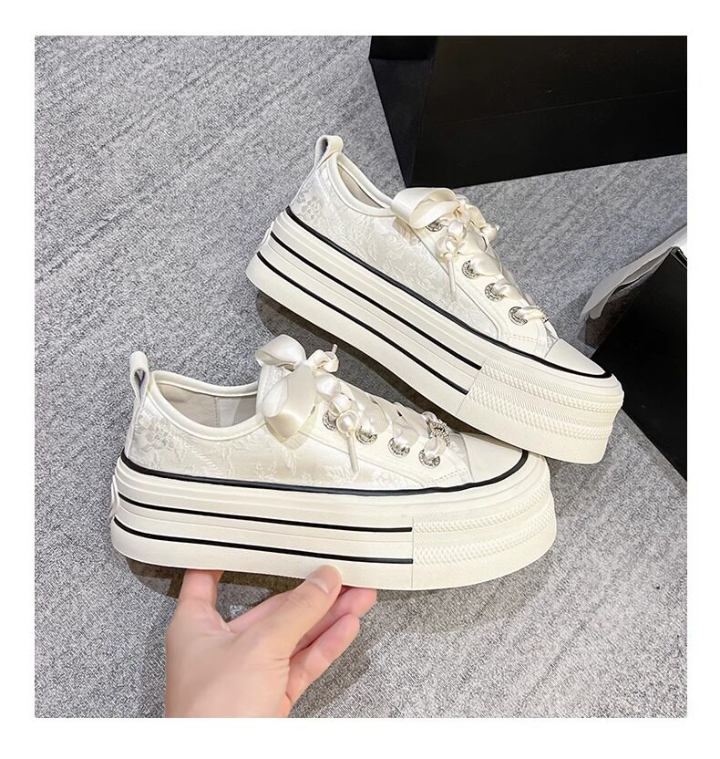 Hong Kong Thick-Soled National Style Jacquard Canvas Shoes for Women 2026 New Satin Sports Casual Shoes Height-Increasing Sneakers White Shoes