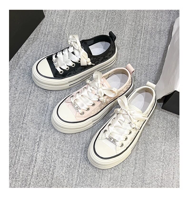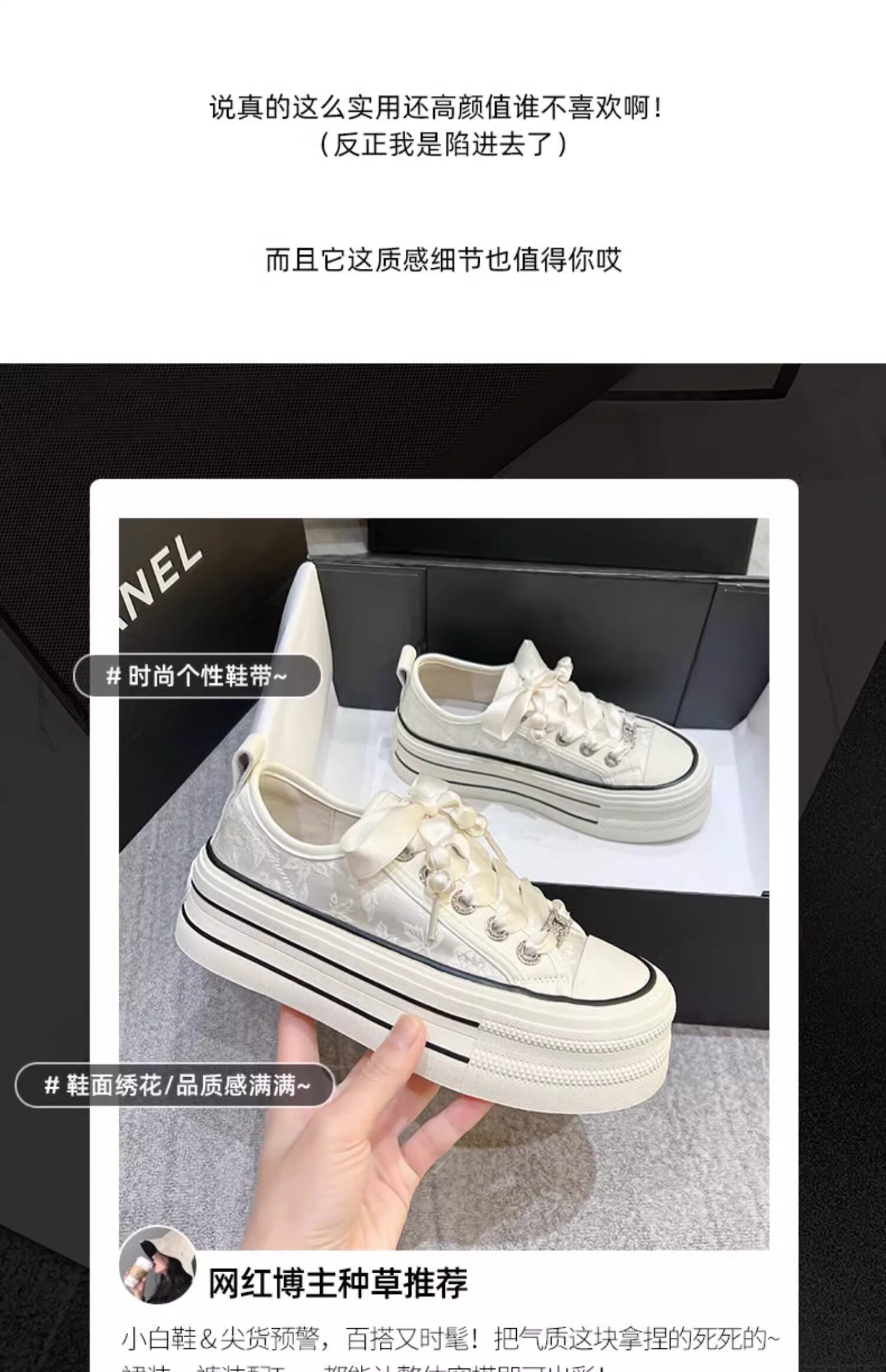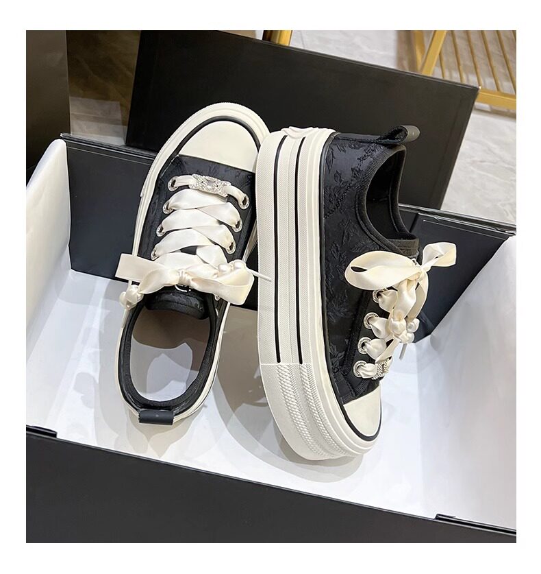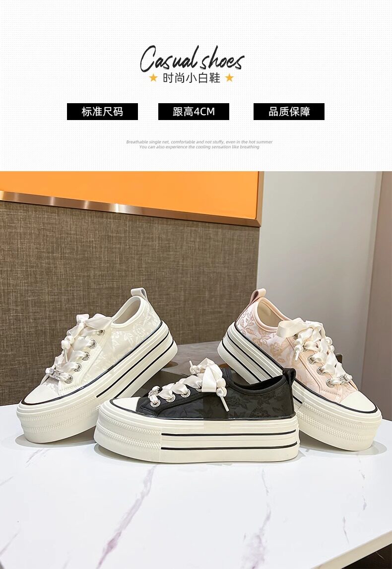 Hong Kong Thick-Soled National Style Jacquard Canvas Shoes for Women 2026 New Satin Sports Casual Shoes Height-Increasing Sneakers White Shoes